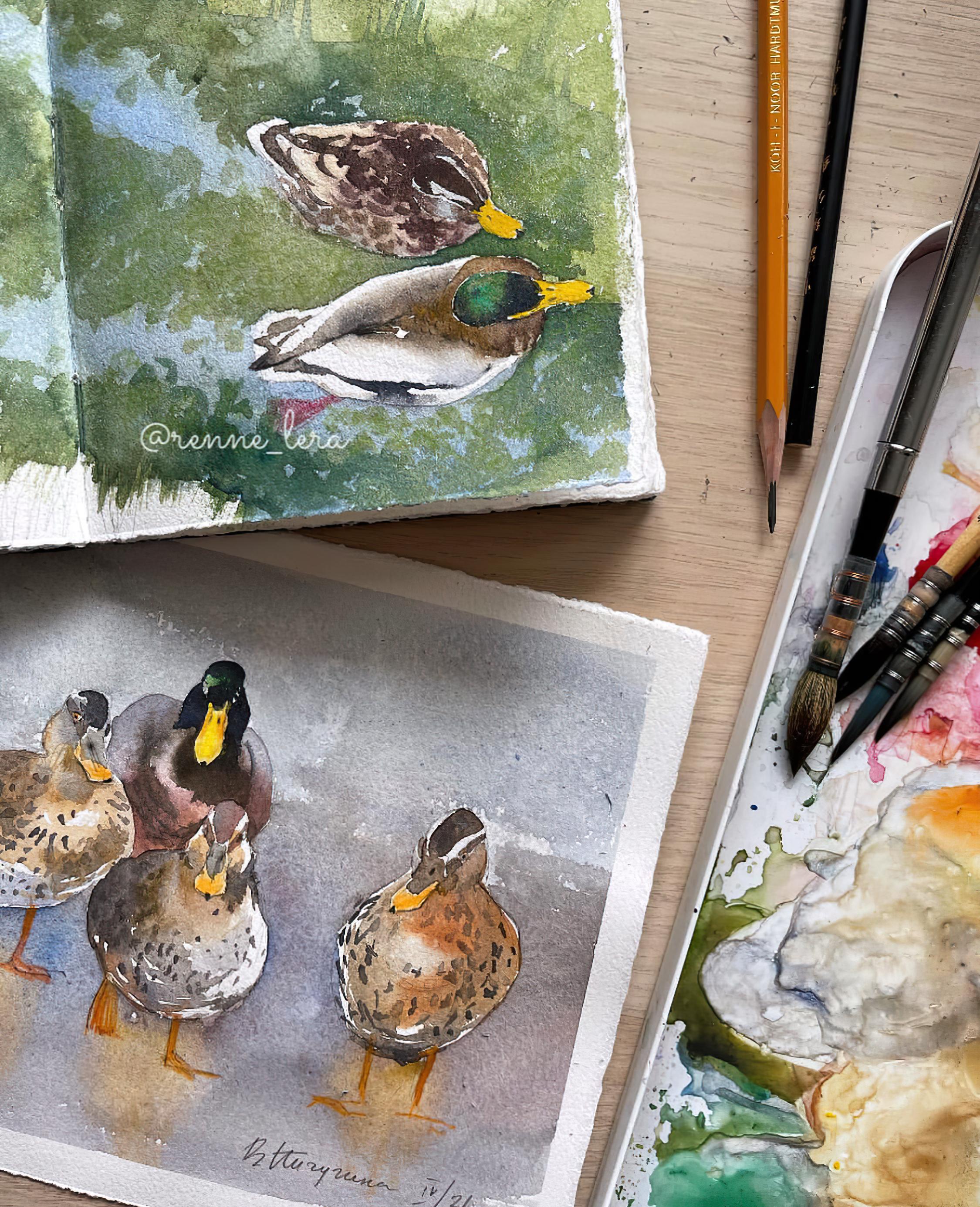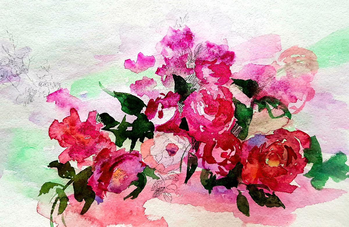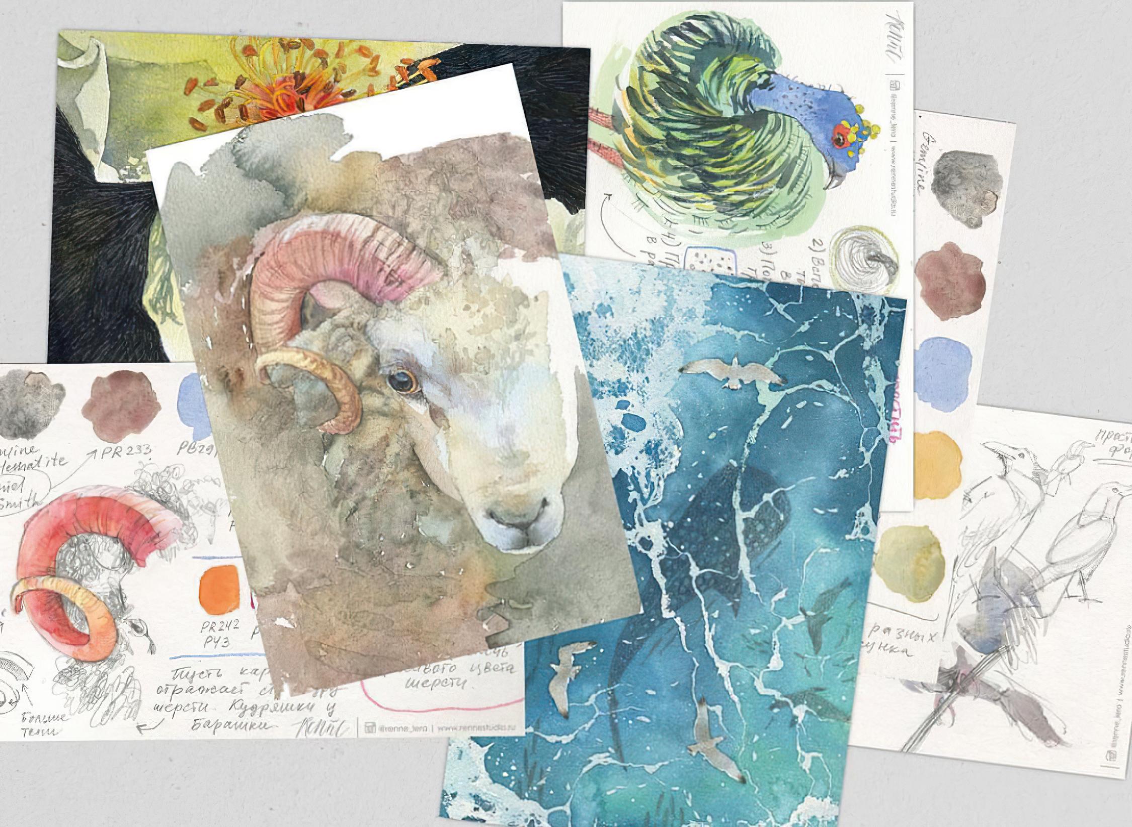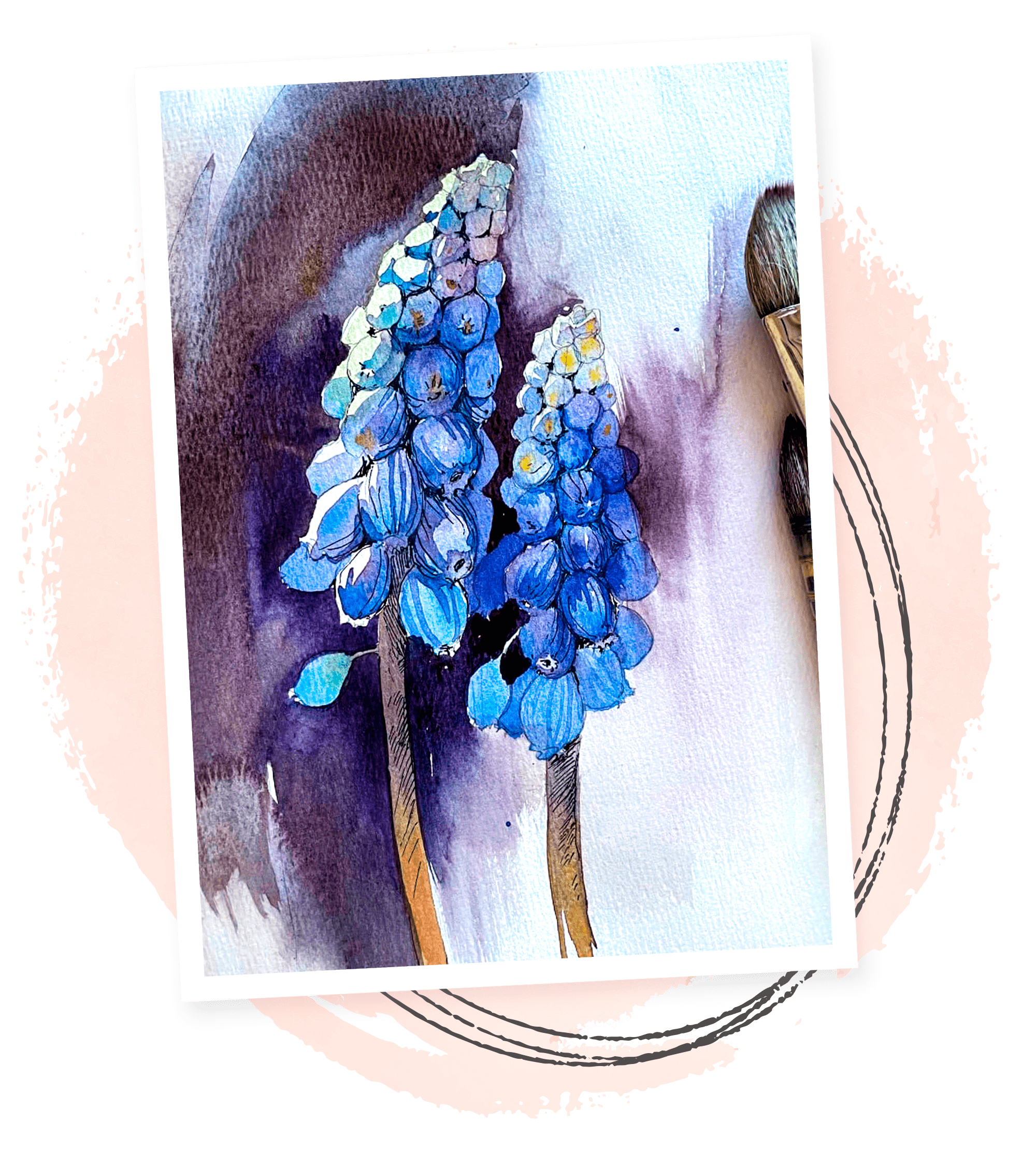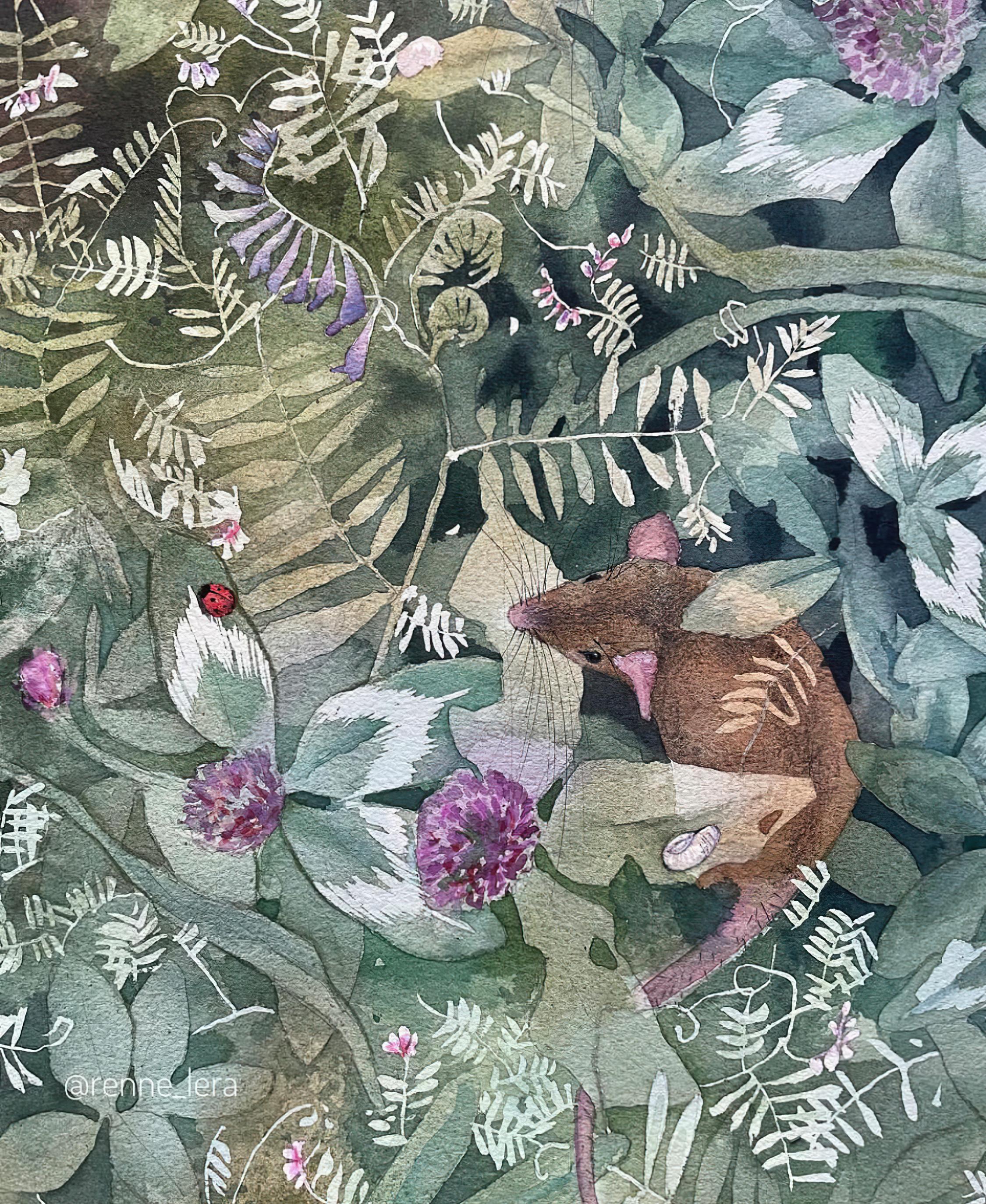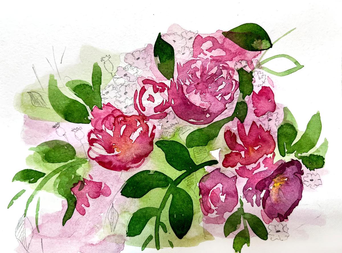 - paint in 1-2 layers, creating rich mixes of watercolors;