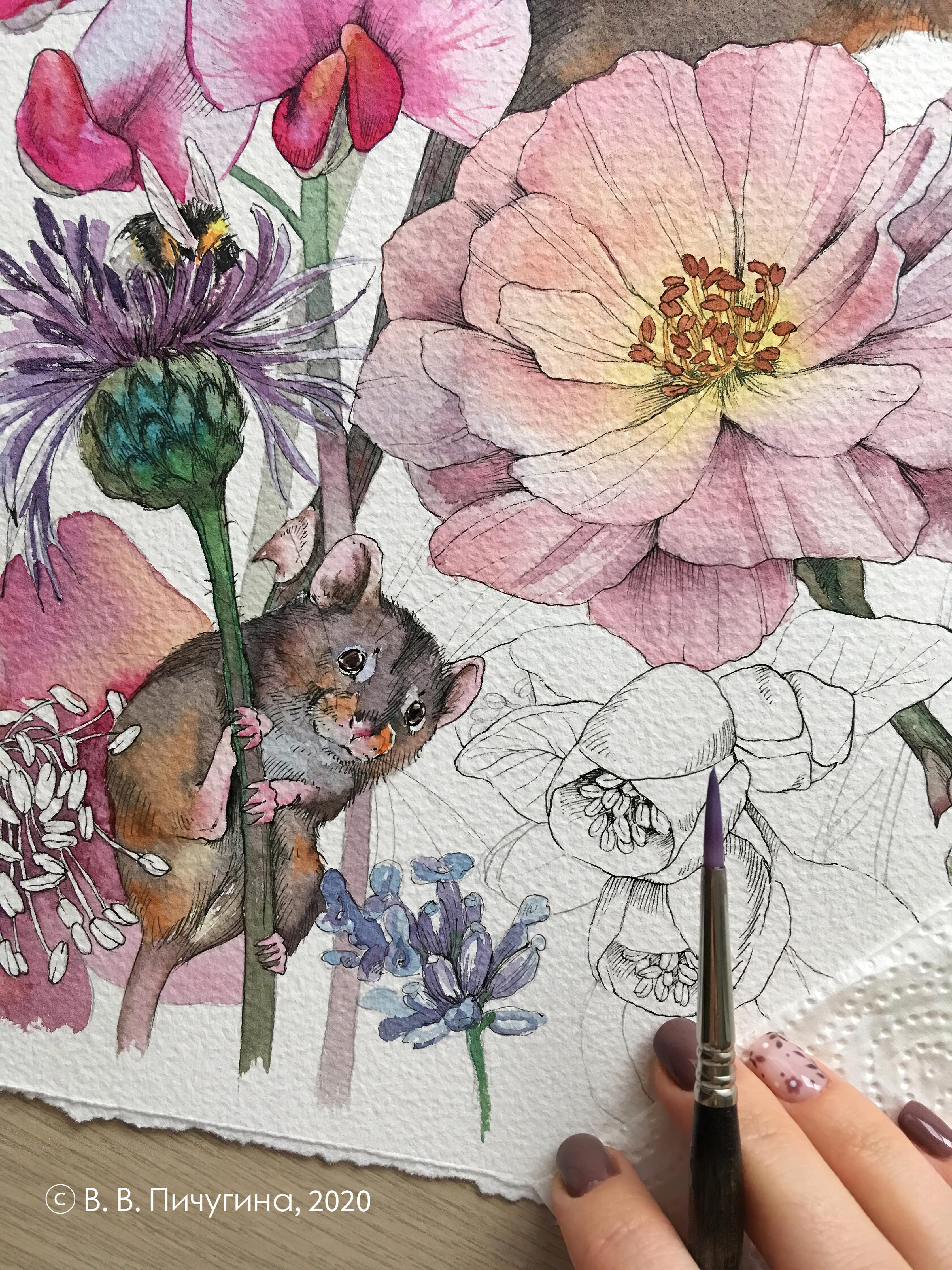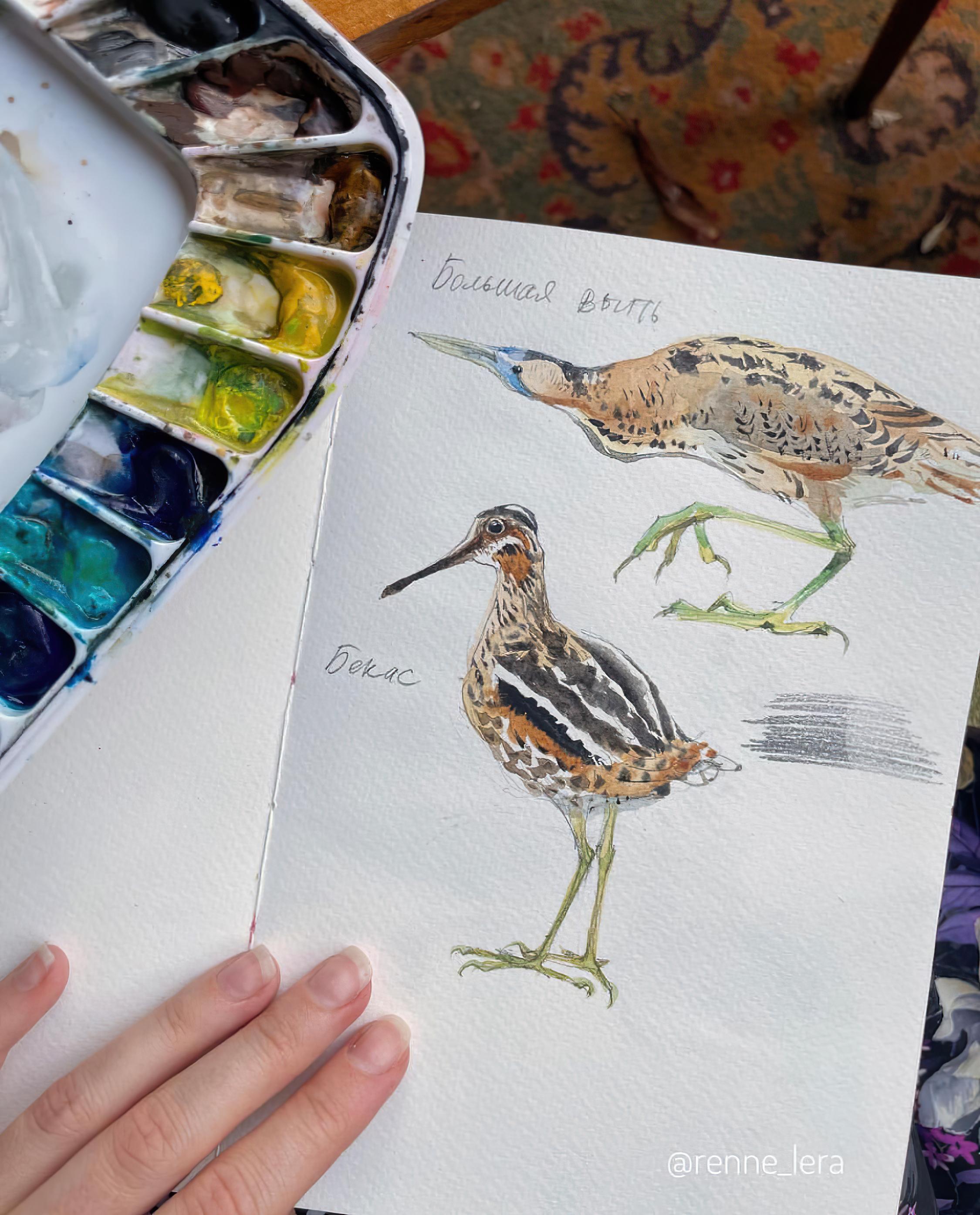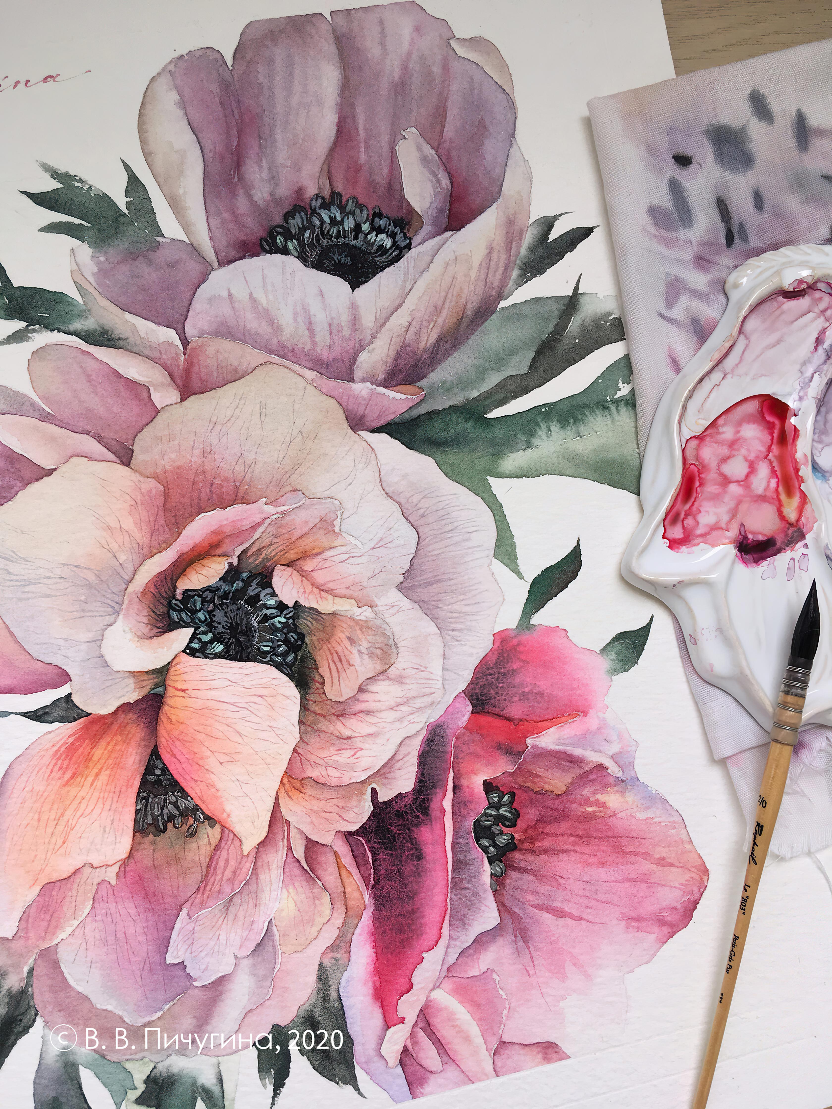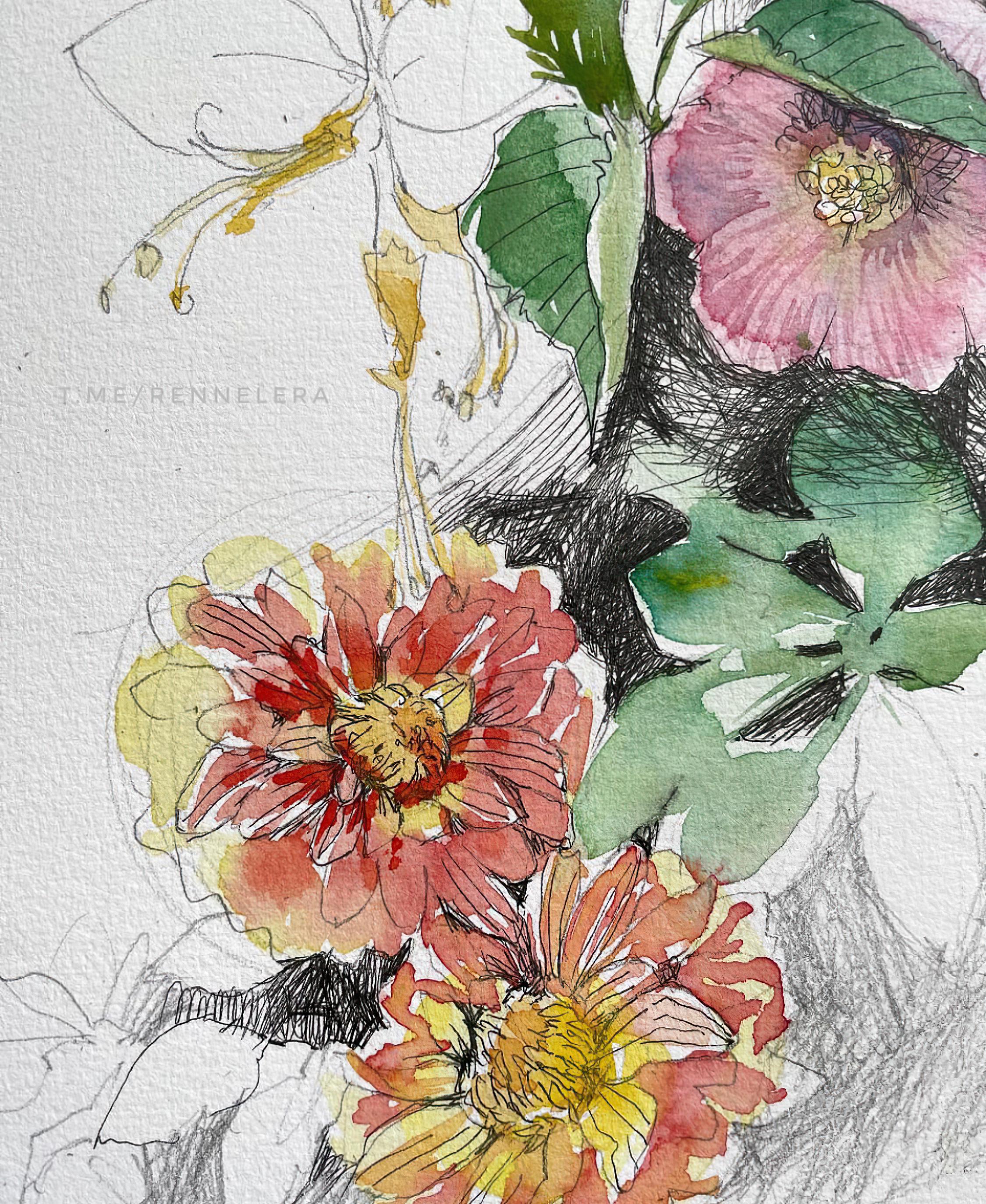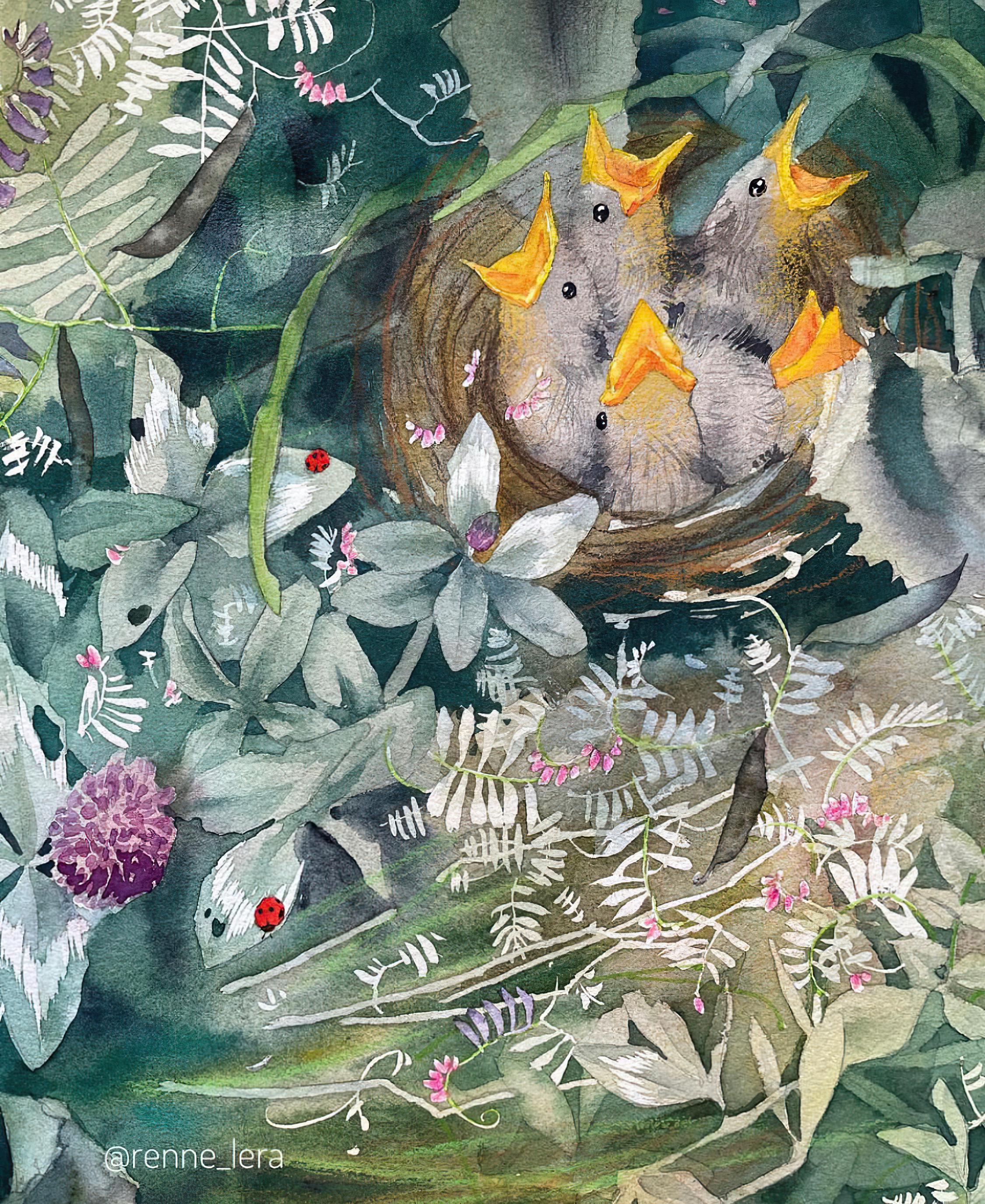- paint in 1-2 layers, creating rich mixes of watercolors;