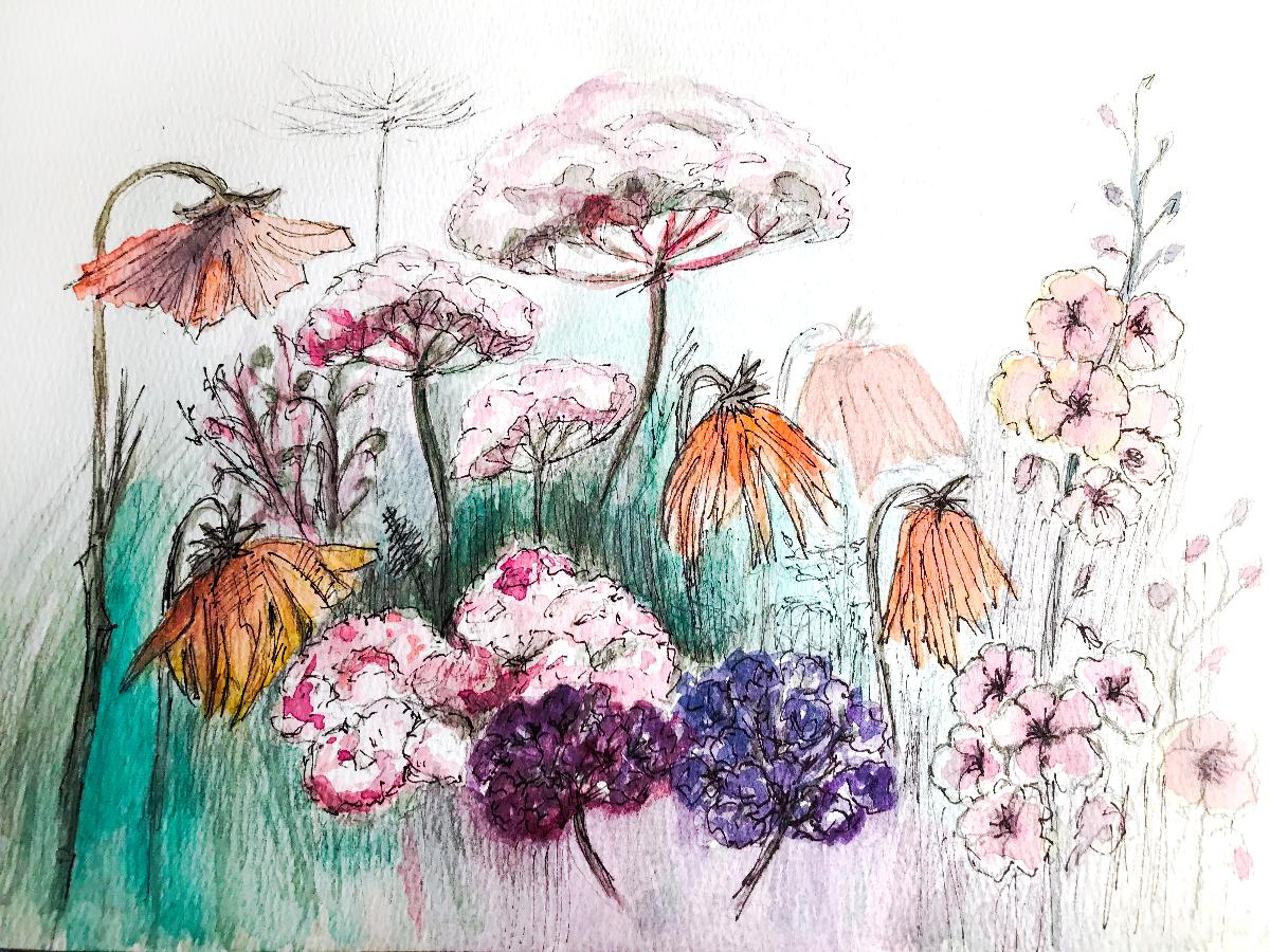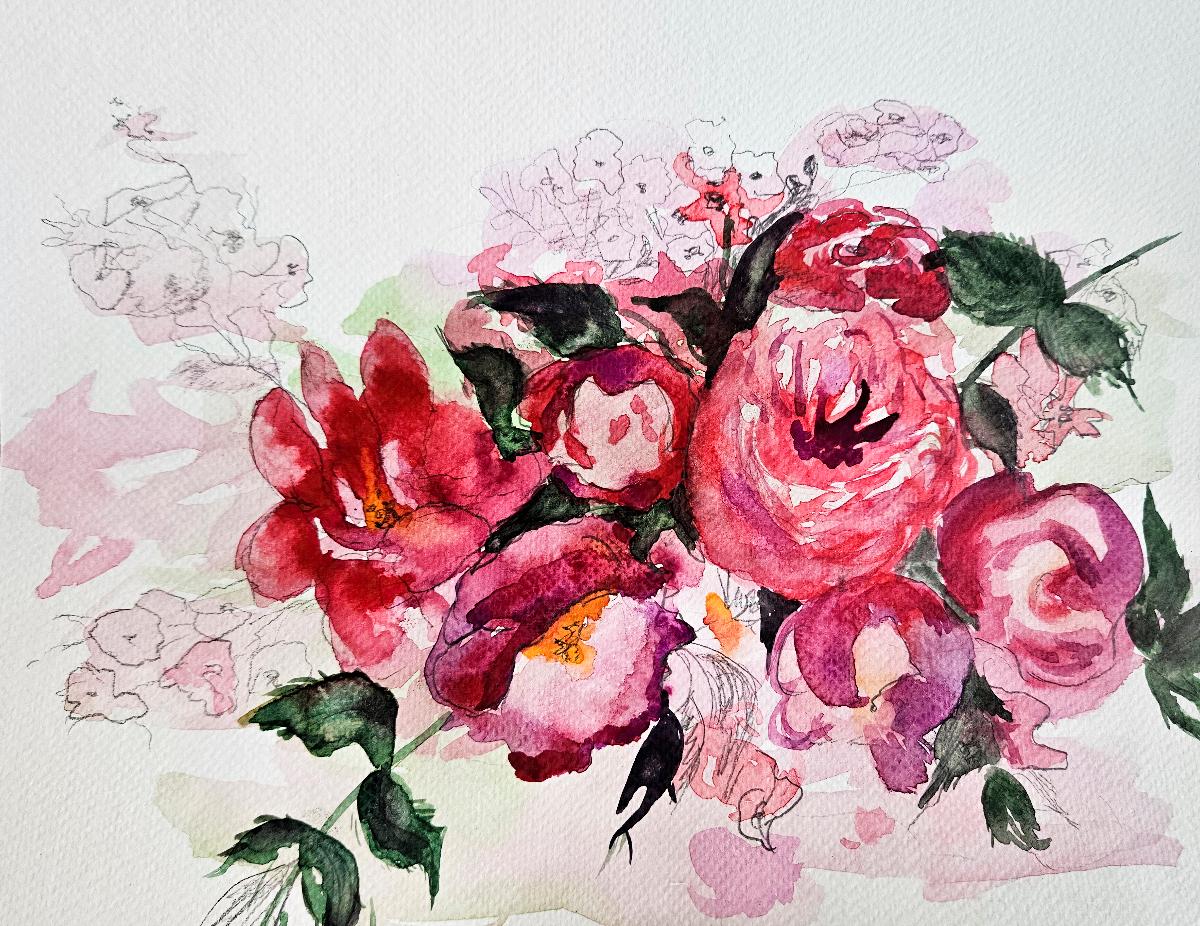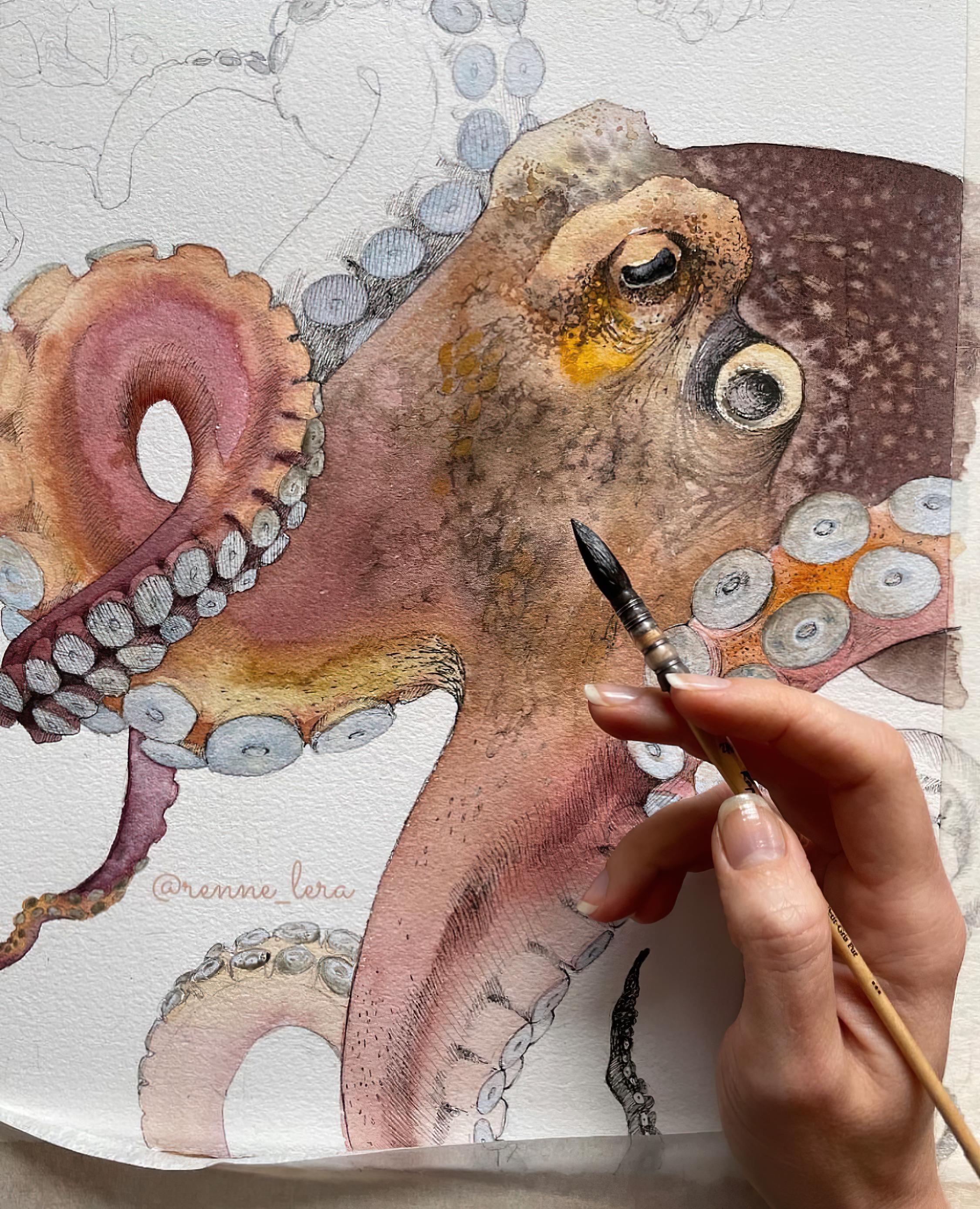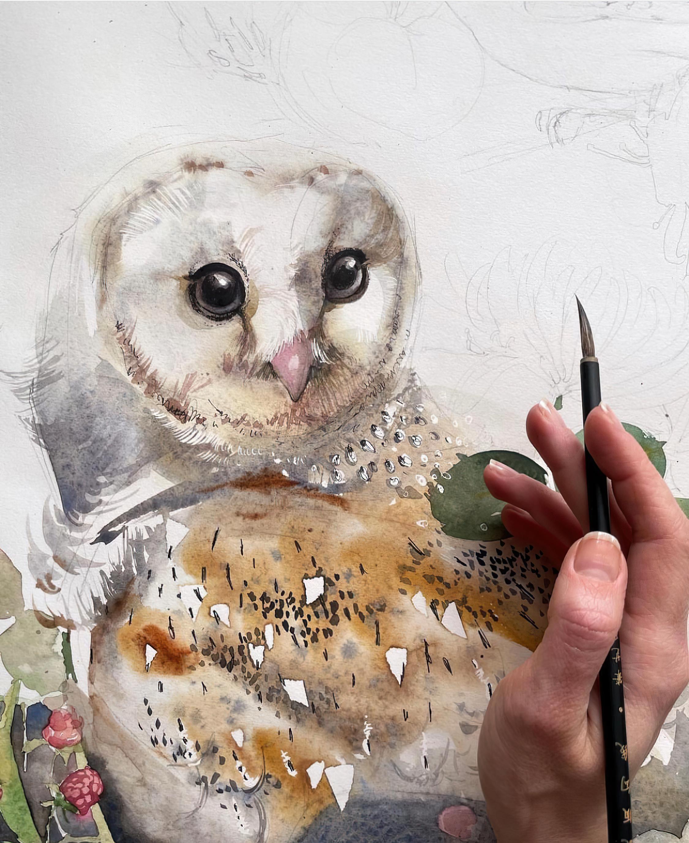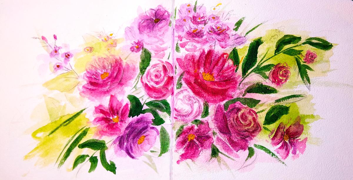 - paint in 1-2 layers, creating rich mixes of watercolors;