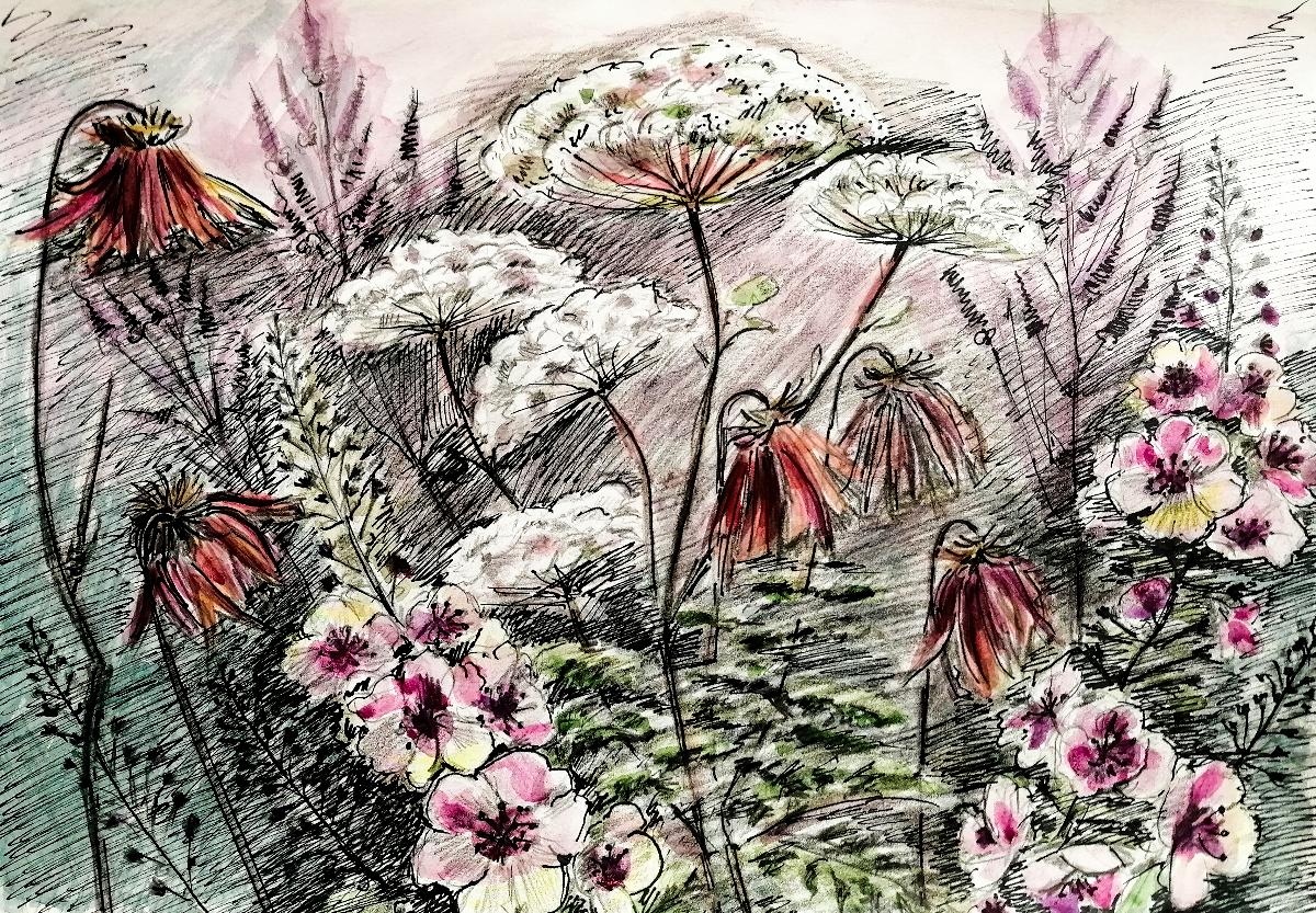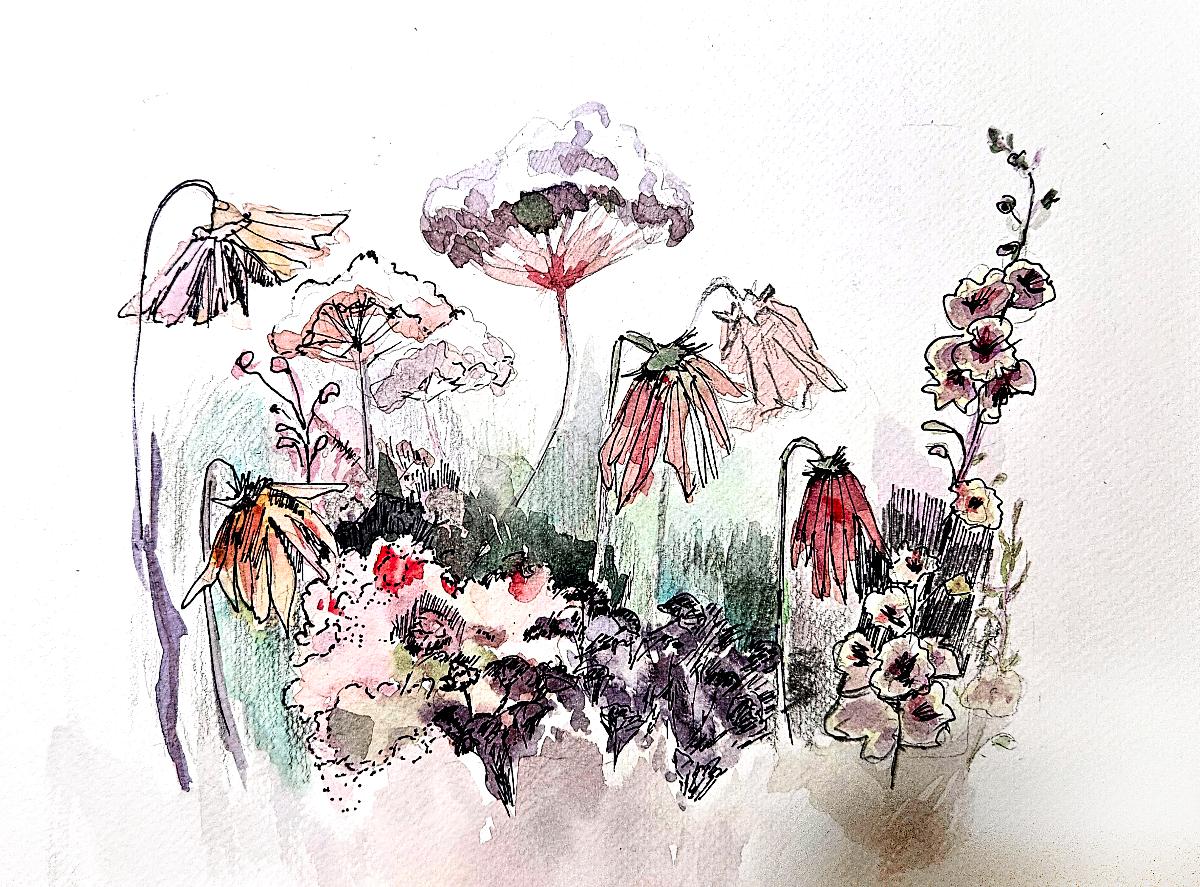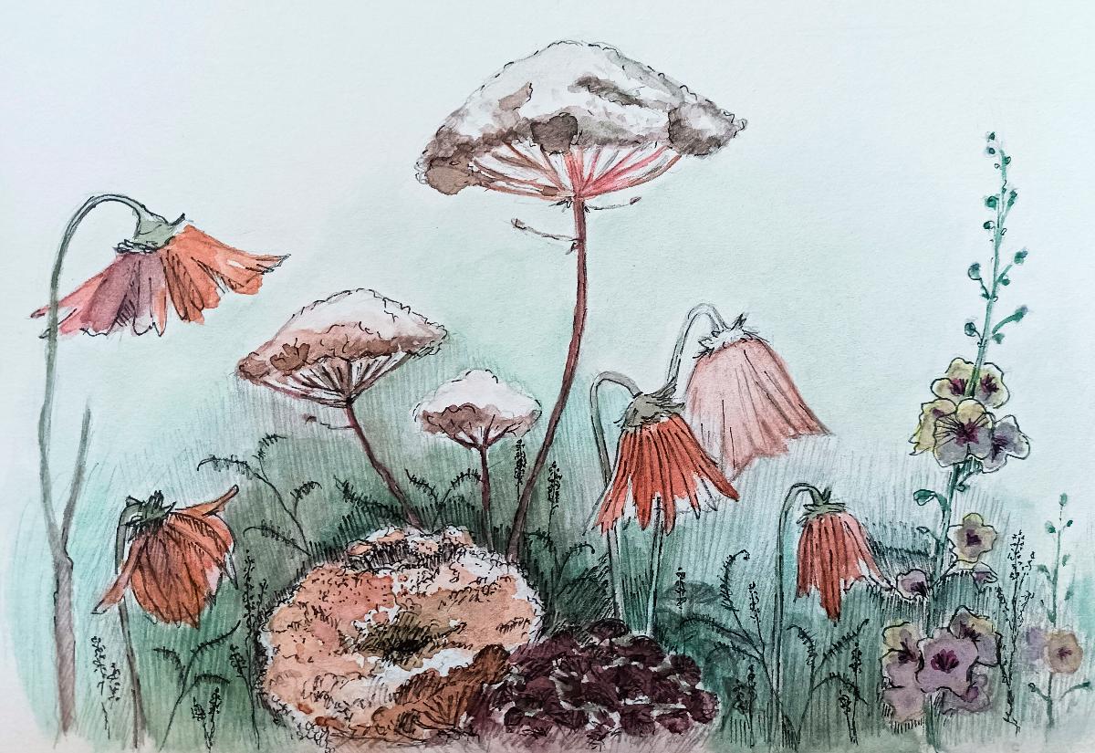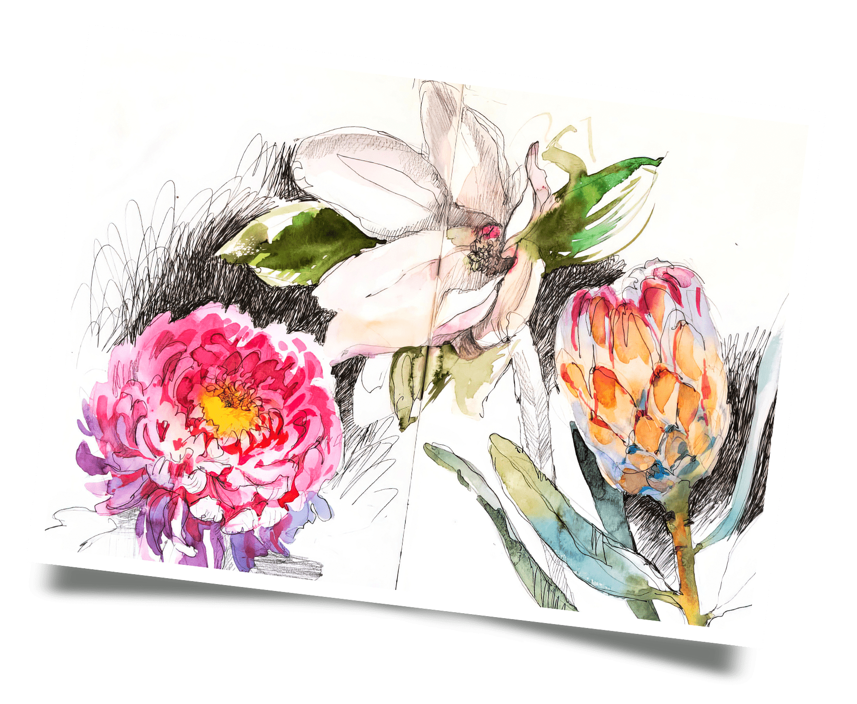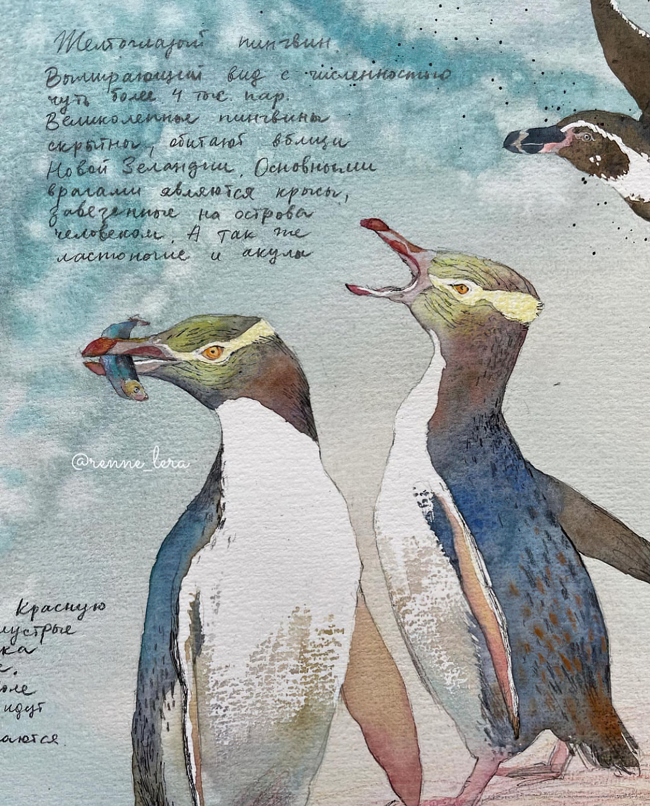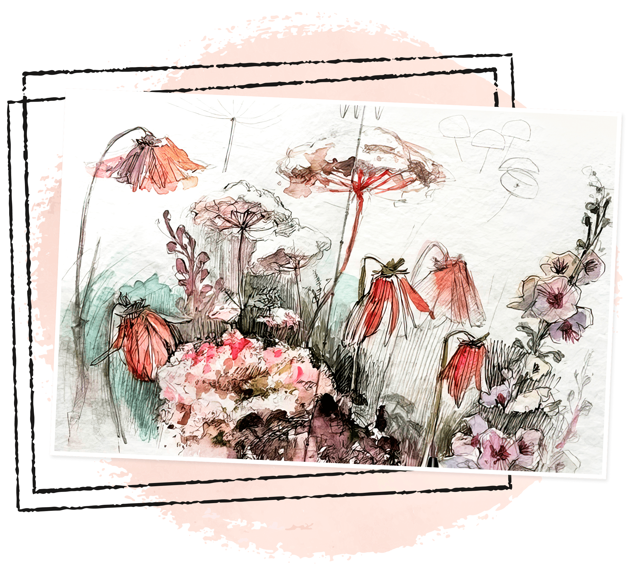 - paint in 1-2 layers, creating rich mixes of watercolors;