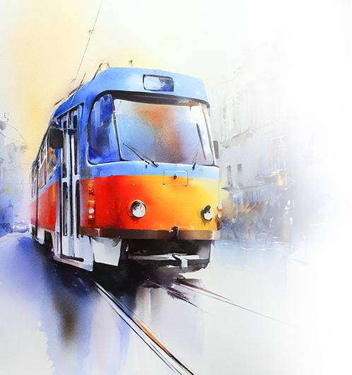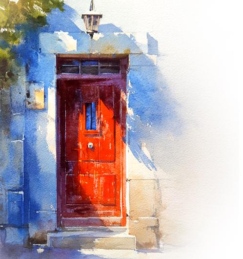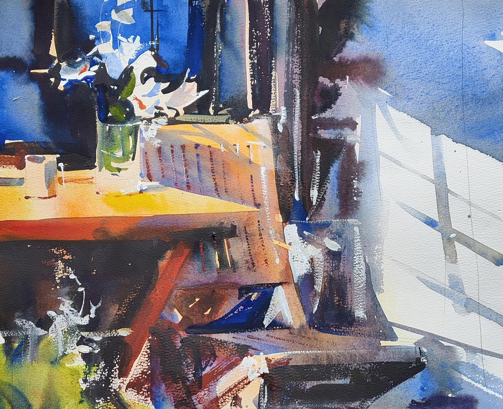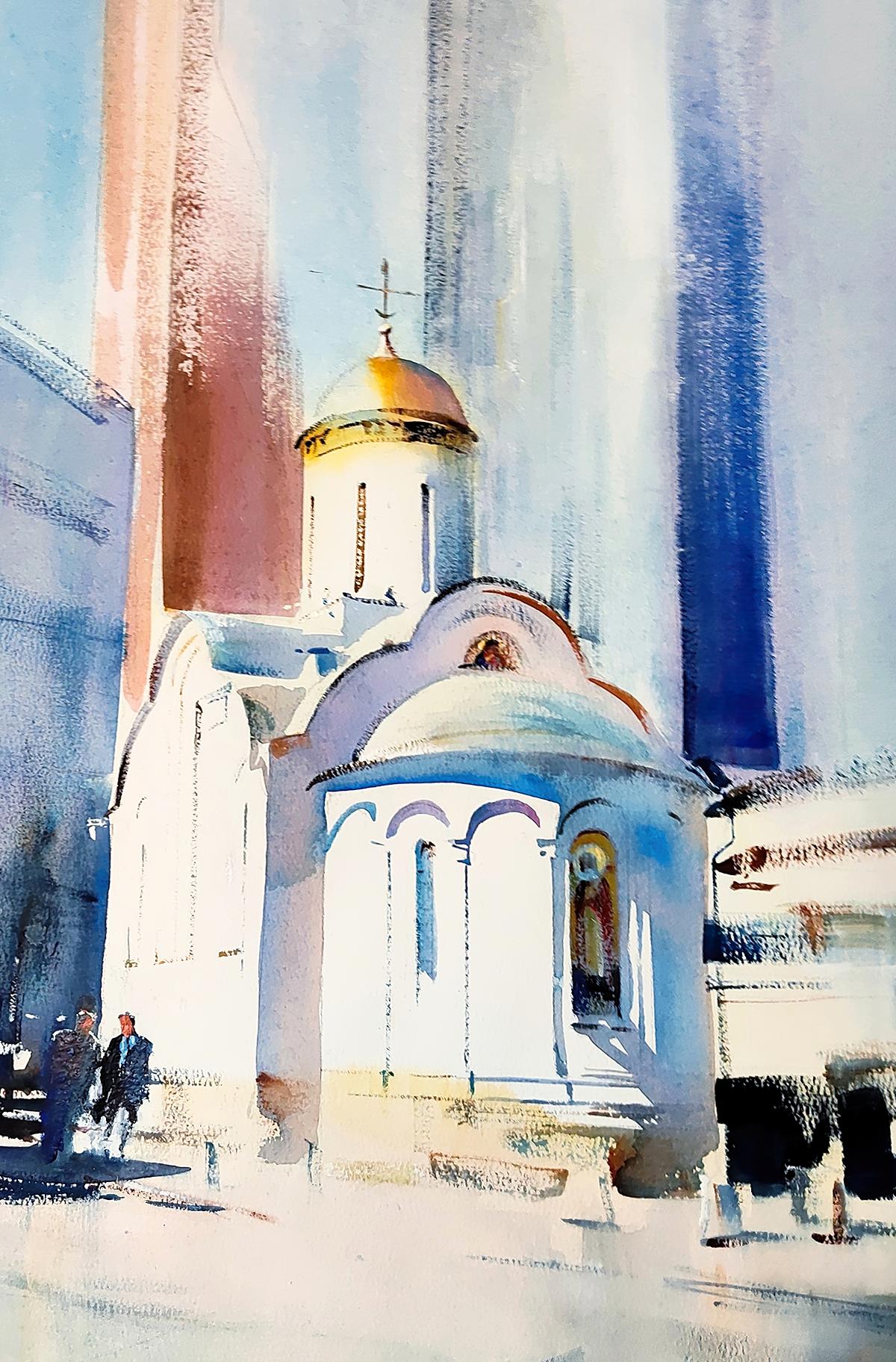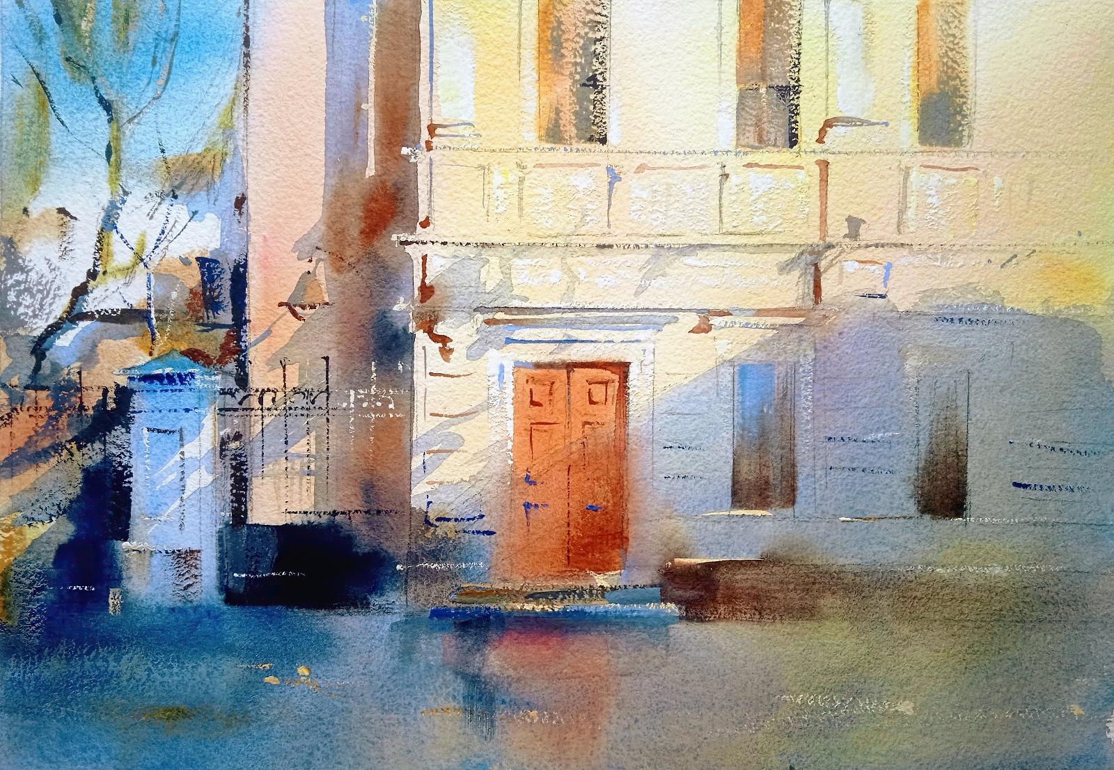 Let’s take a walk on a warm, sunny day, where light, shadows, and movement fill the city with life. In this lesson, we will practice maintaining the lightness of watercolor and avoiding overworking the painting.