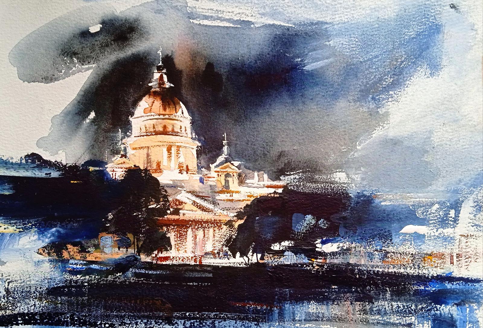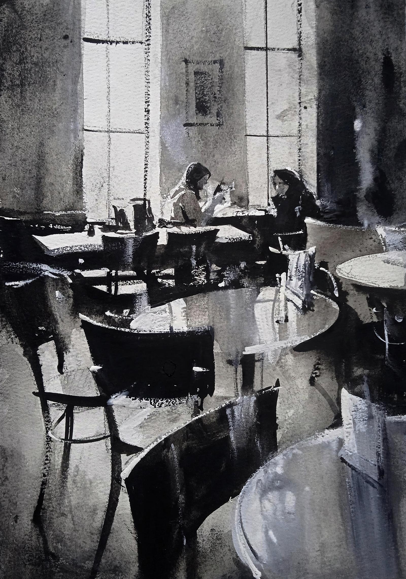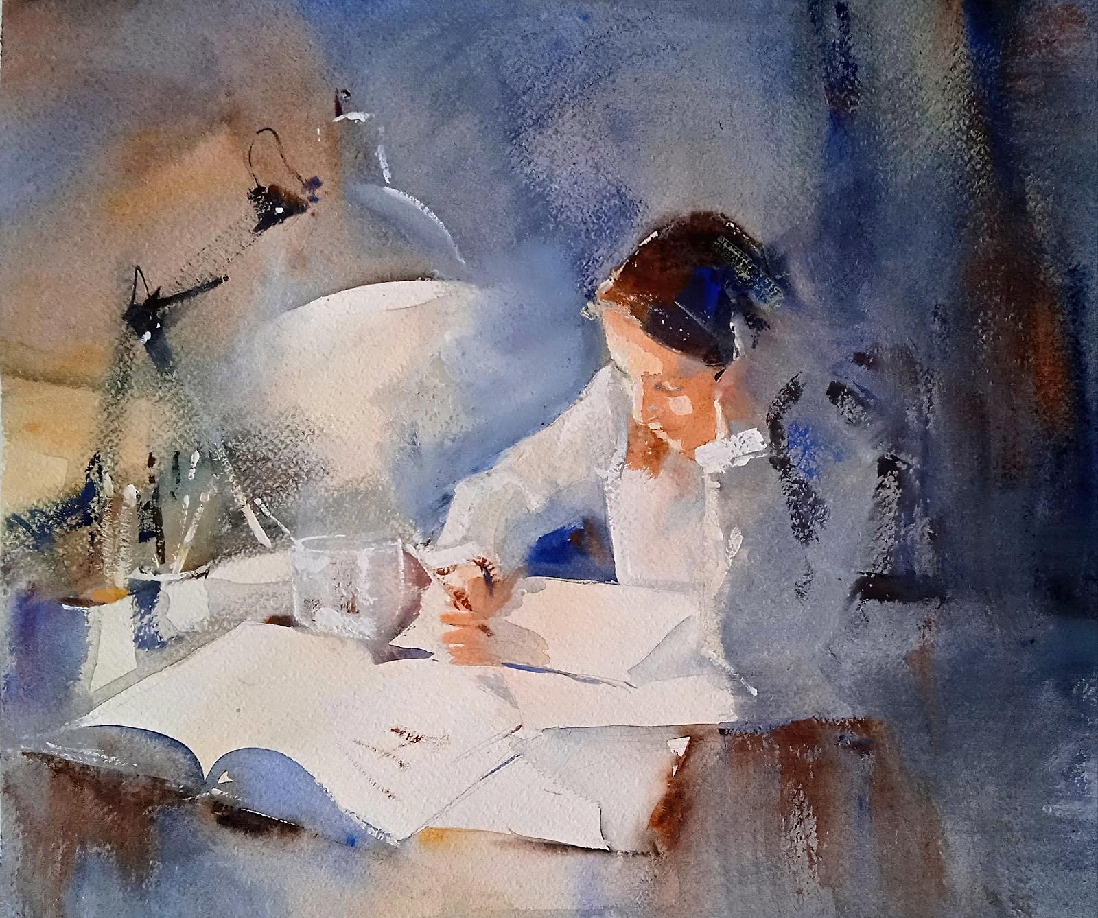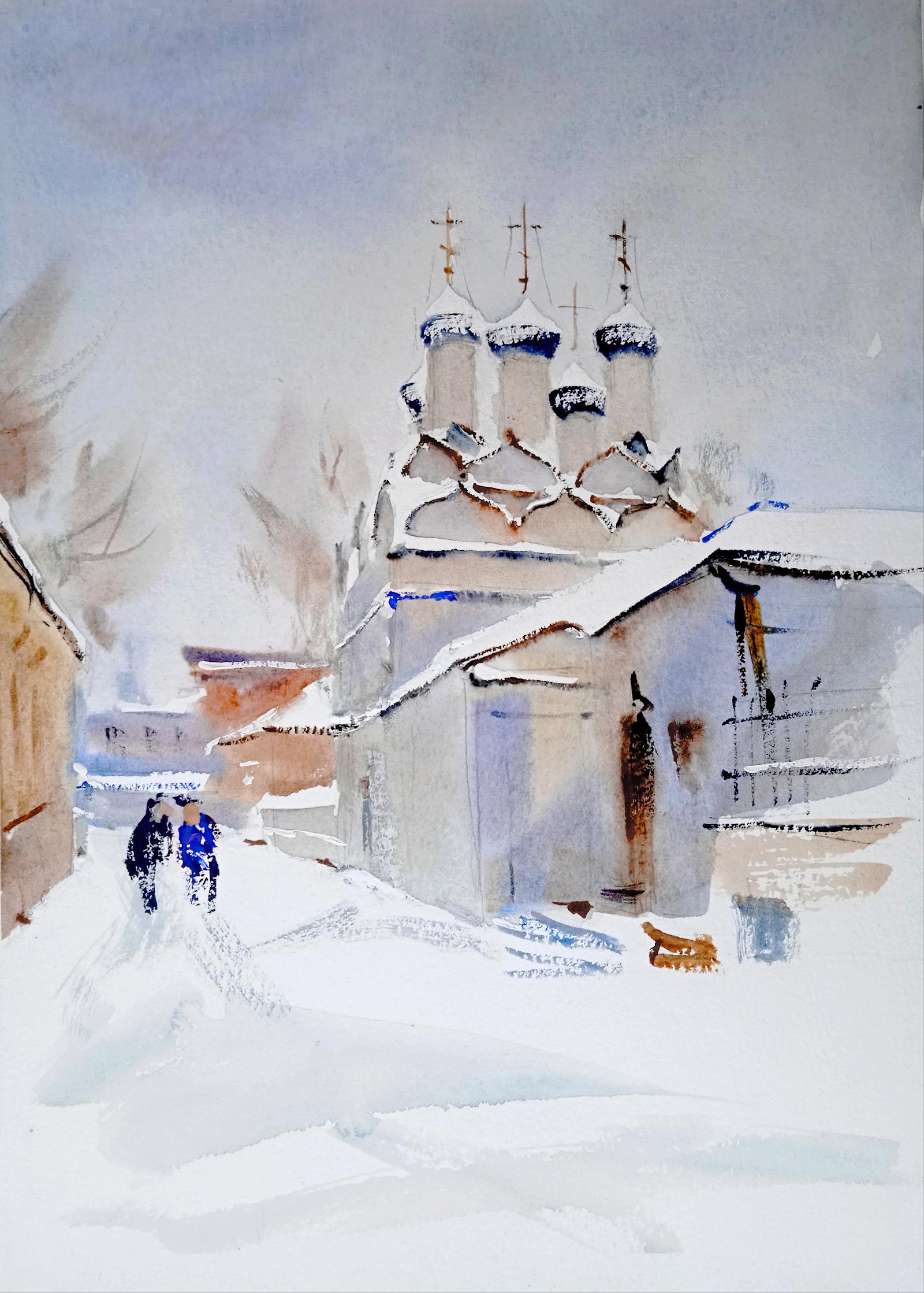 In this lesson we will immerse ourselves in the atmosphere of a quiet rain and moist air. Watching the movement of water on paper, we will create soft highlights, blurred silhouettes, and the feeling of a rainy day.