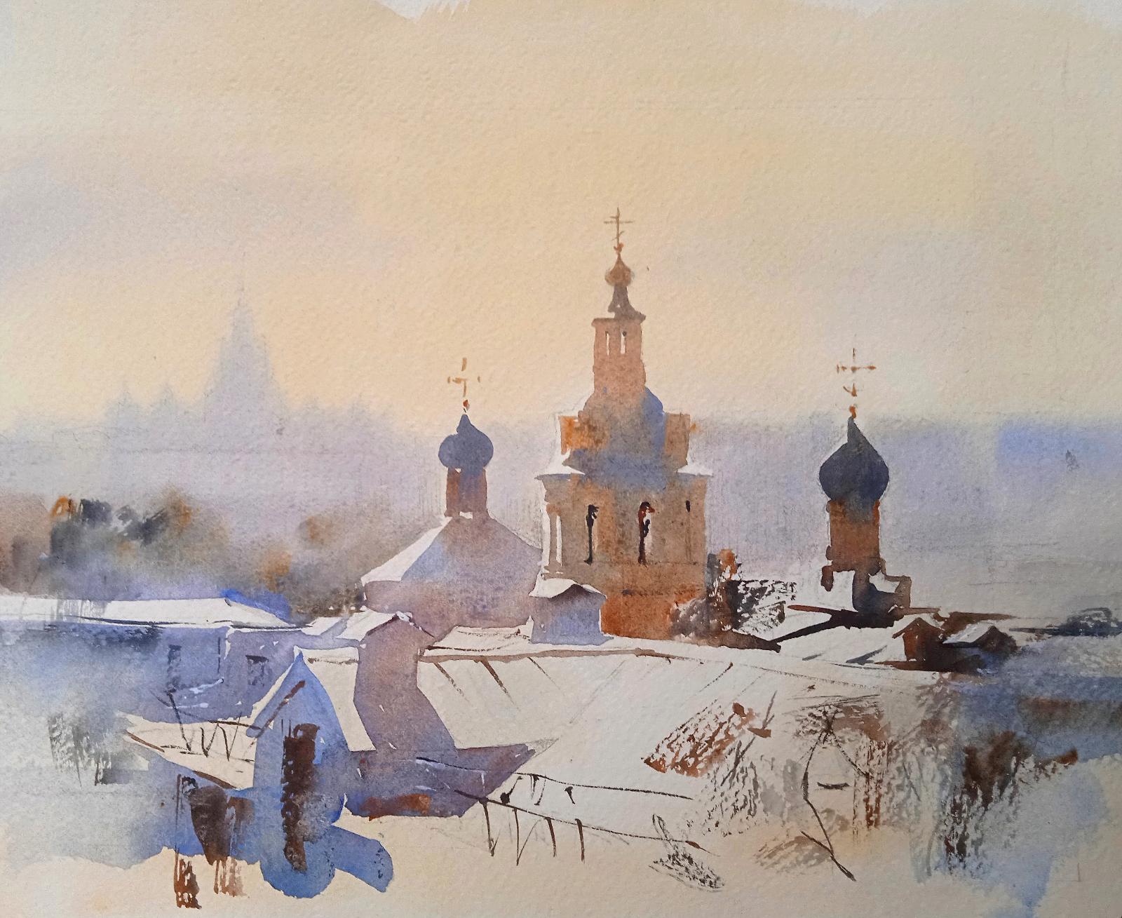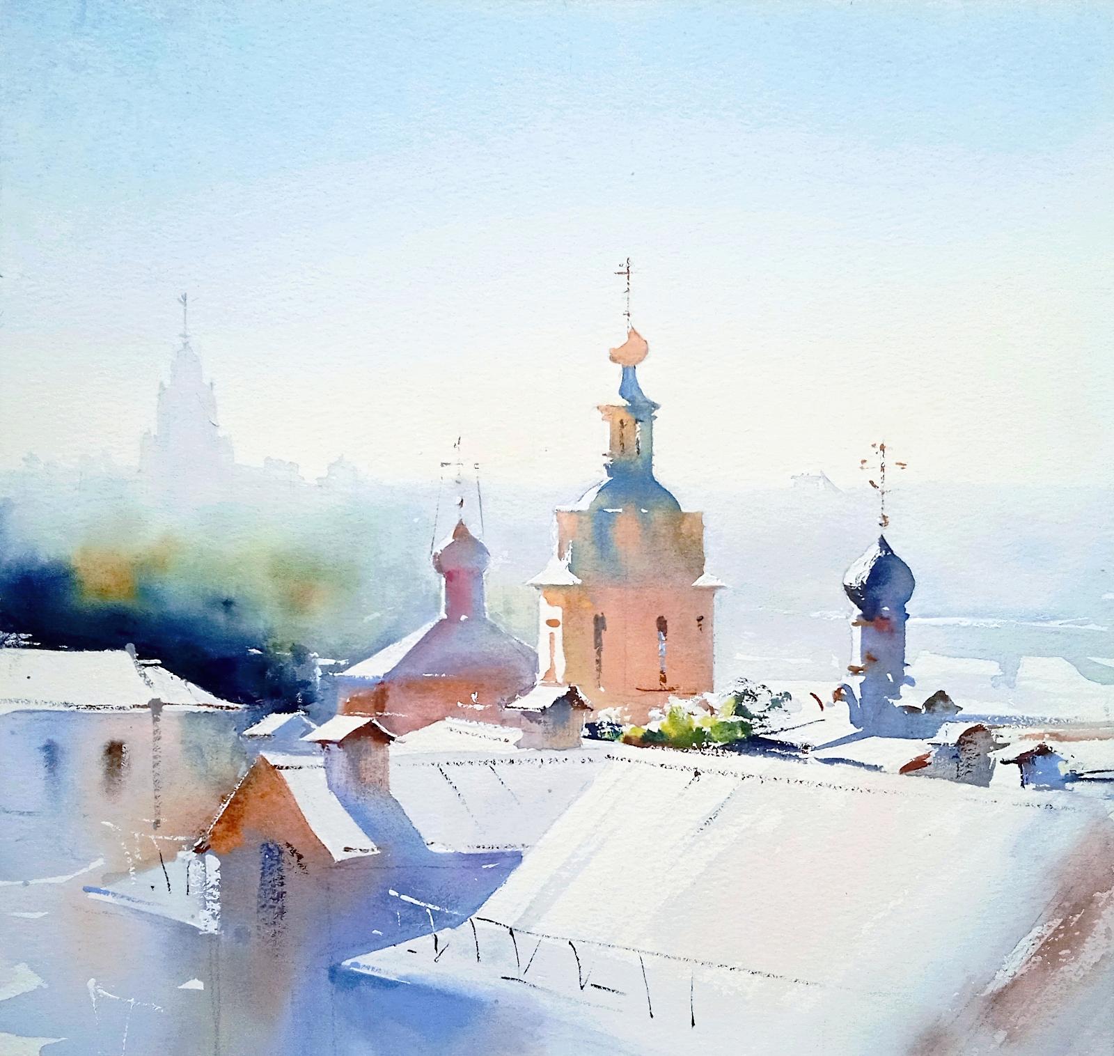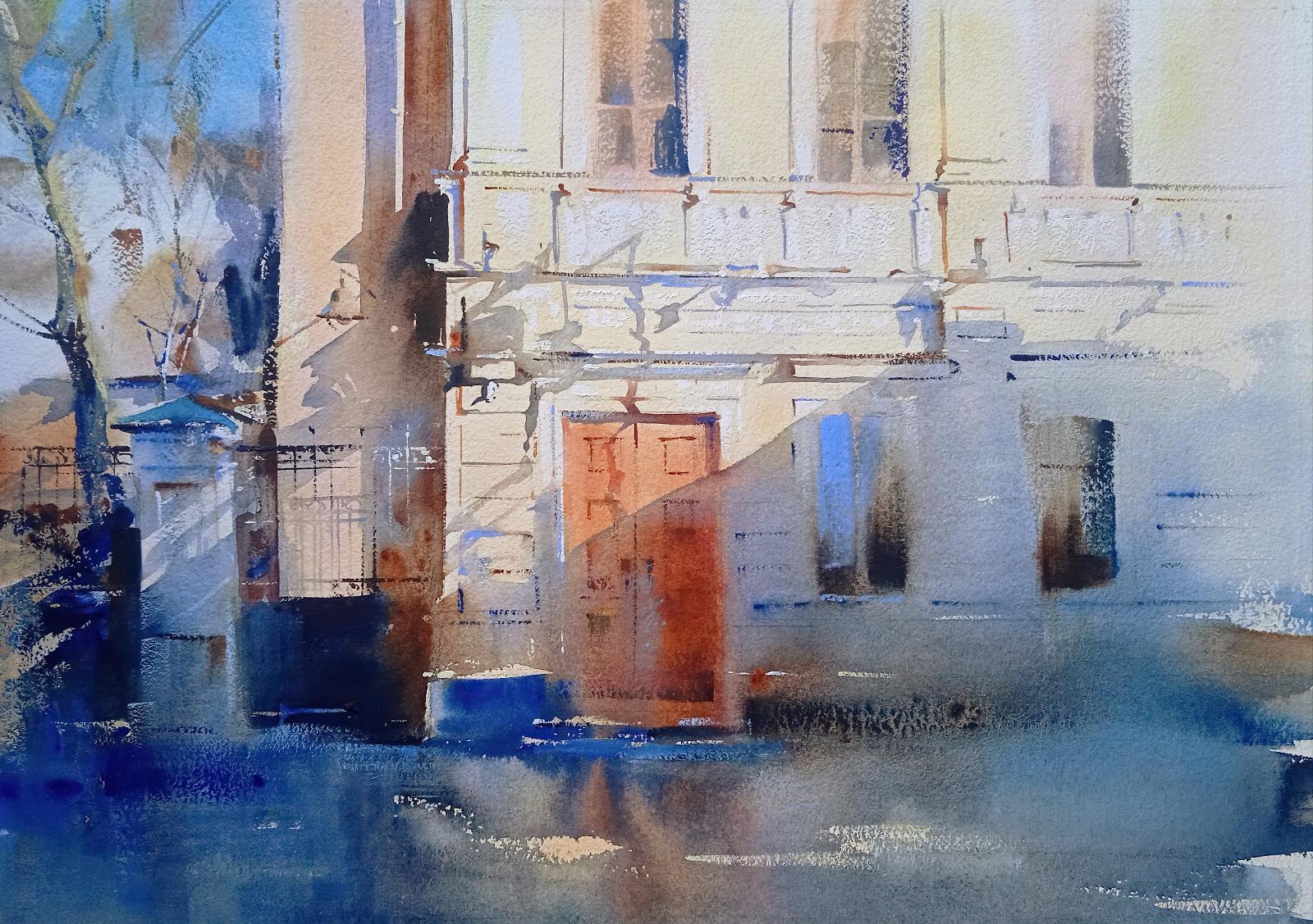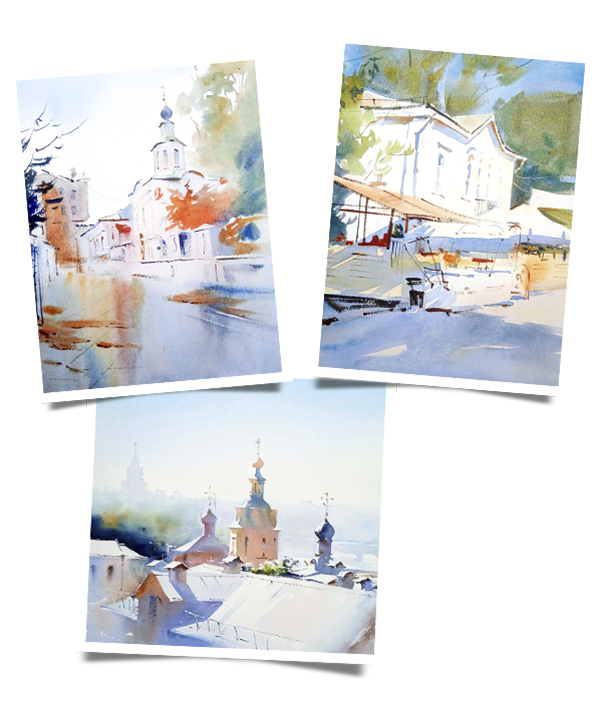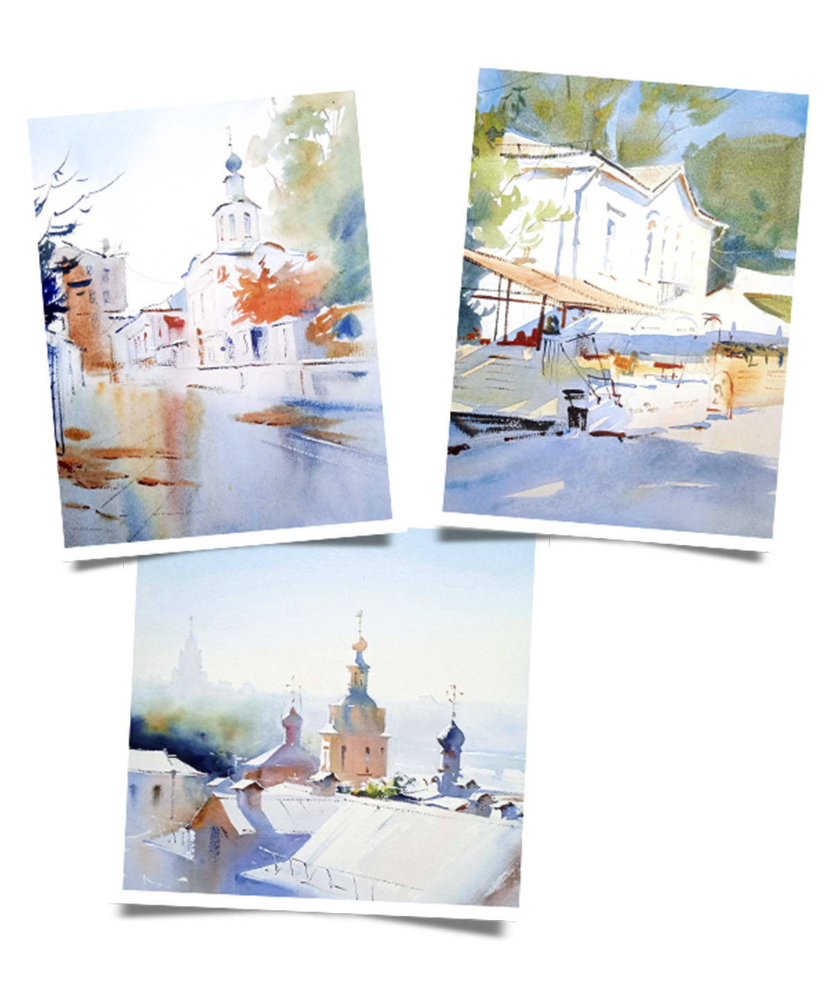 This lesson is about the silence of the morning, about light and air, and how watercolor can convey the first breath of a new day when the spring city awakens outside the window.
