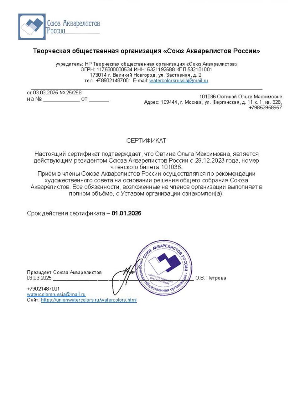 - Graduated from the S. N. Andriyaka School of Watercolor and the Gerasimov Institute of Cinematography (VGIK).