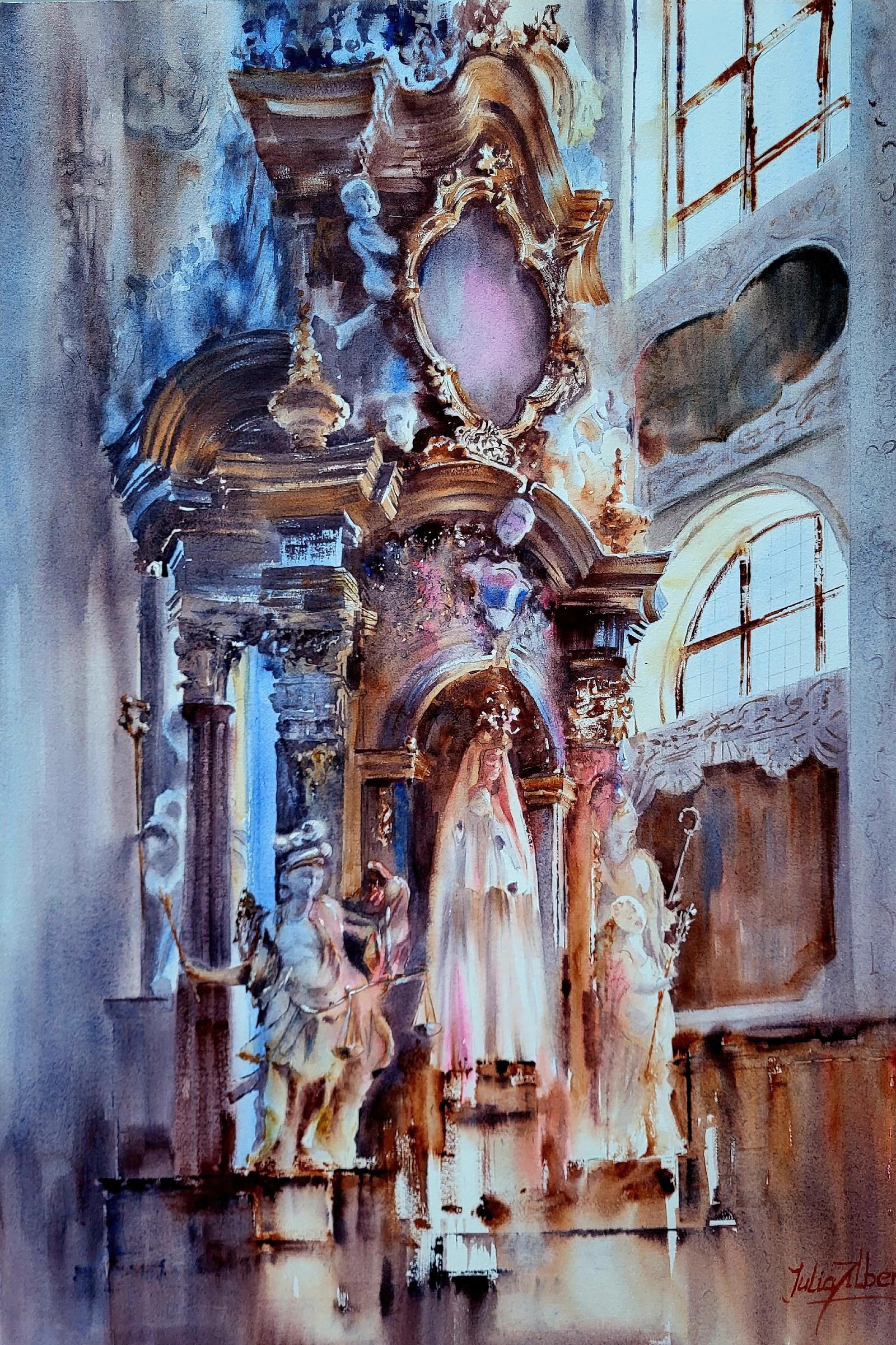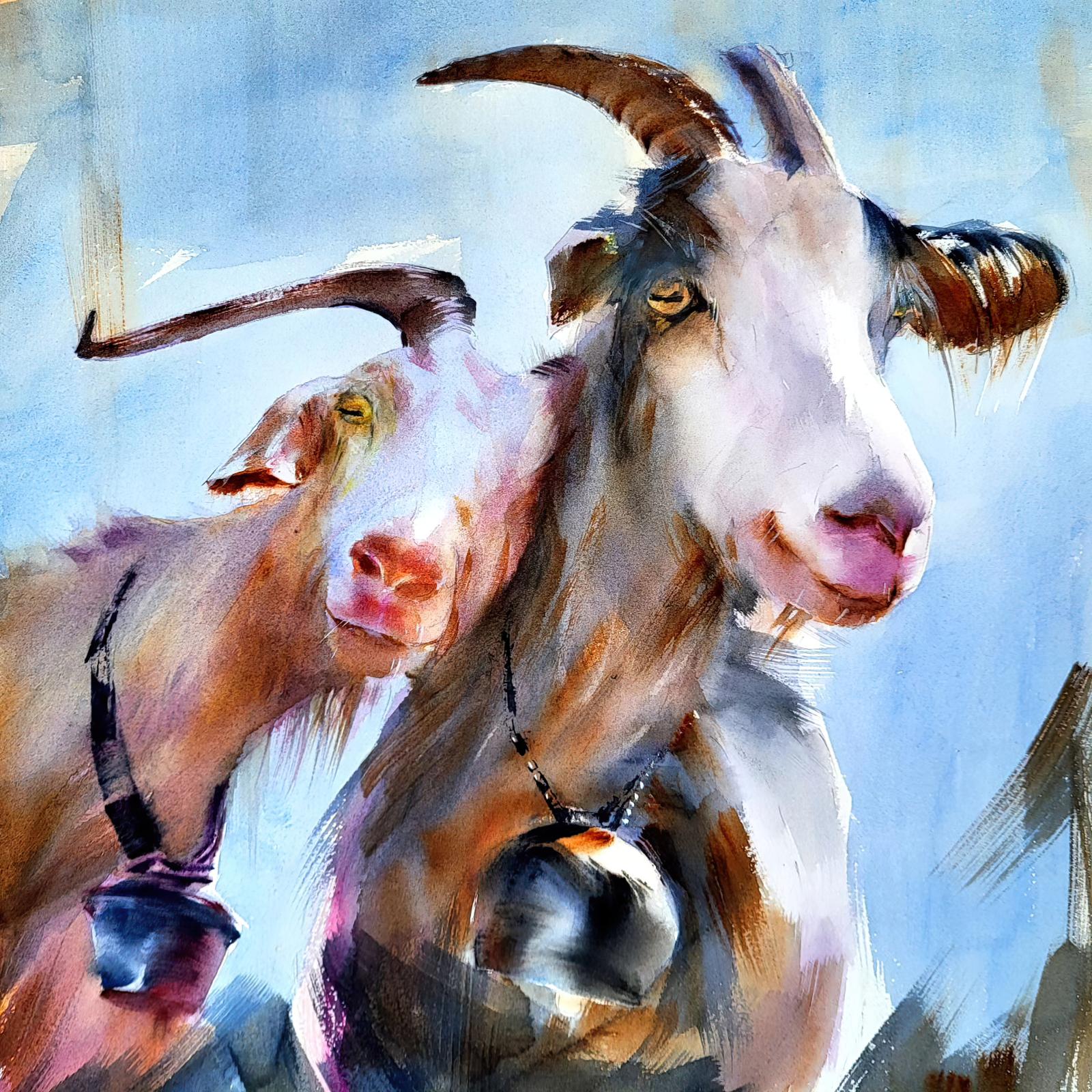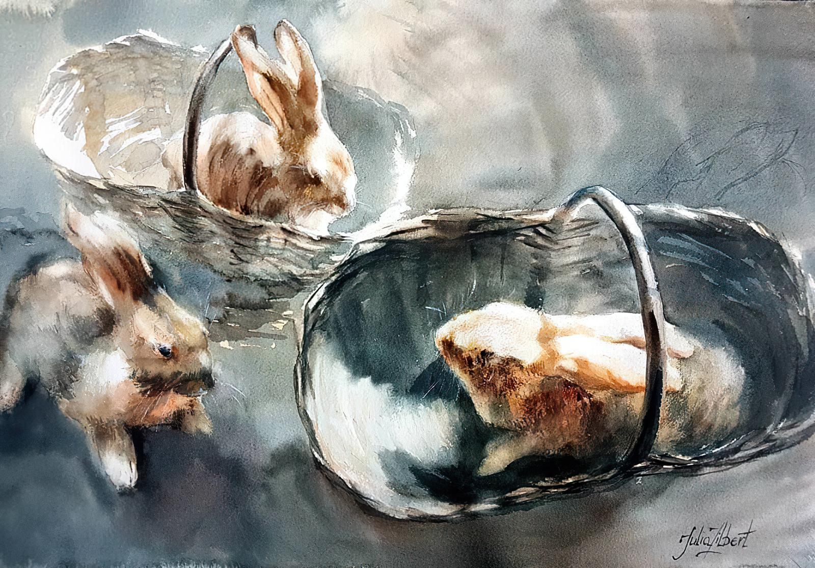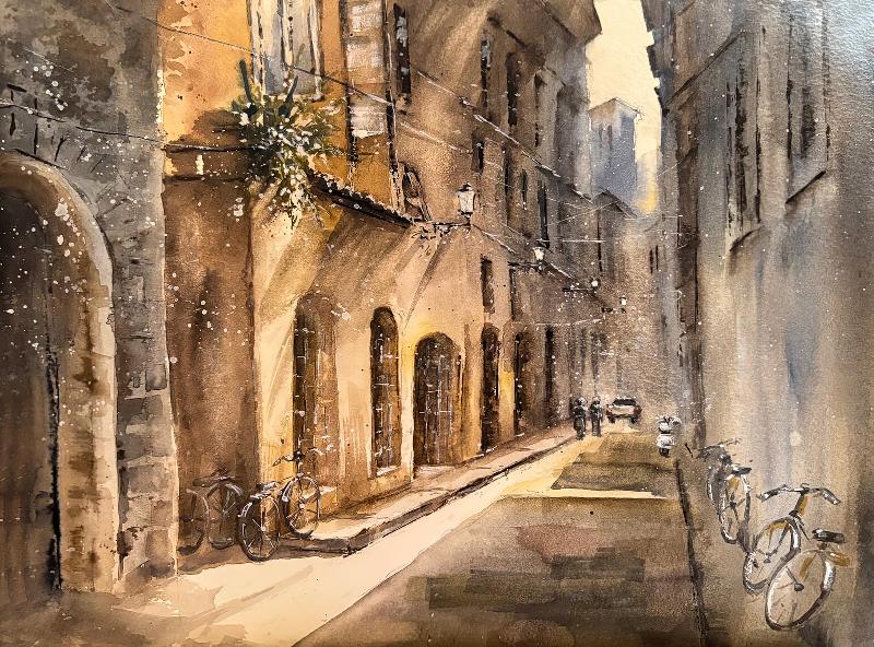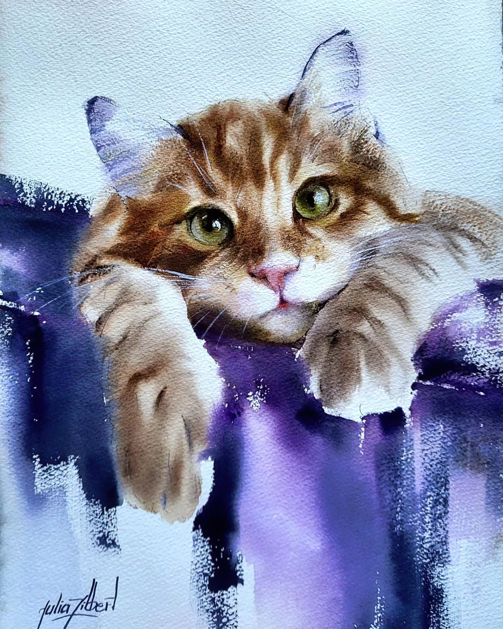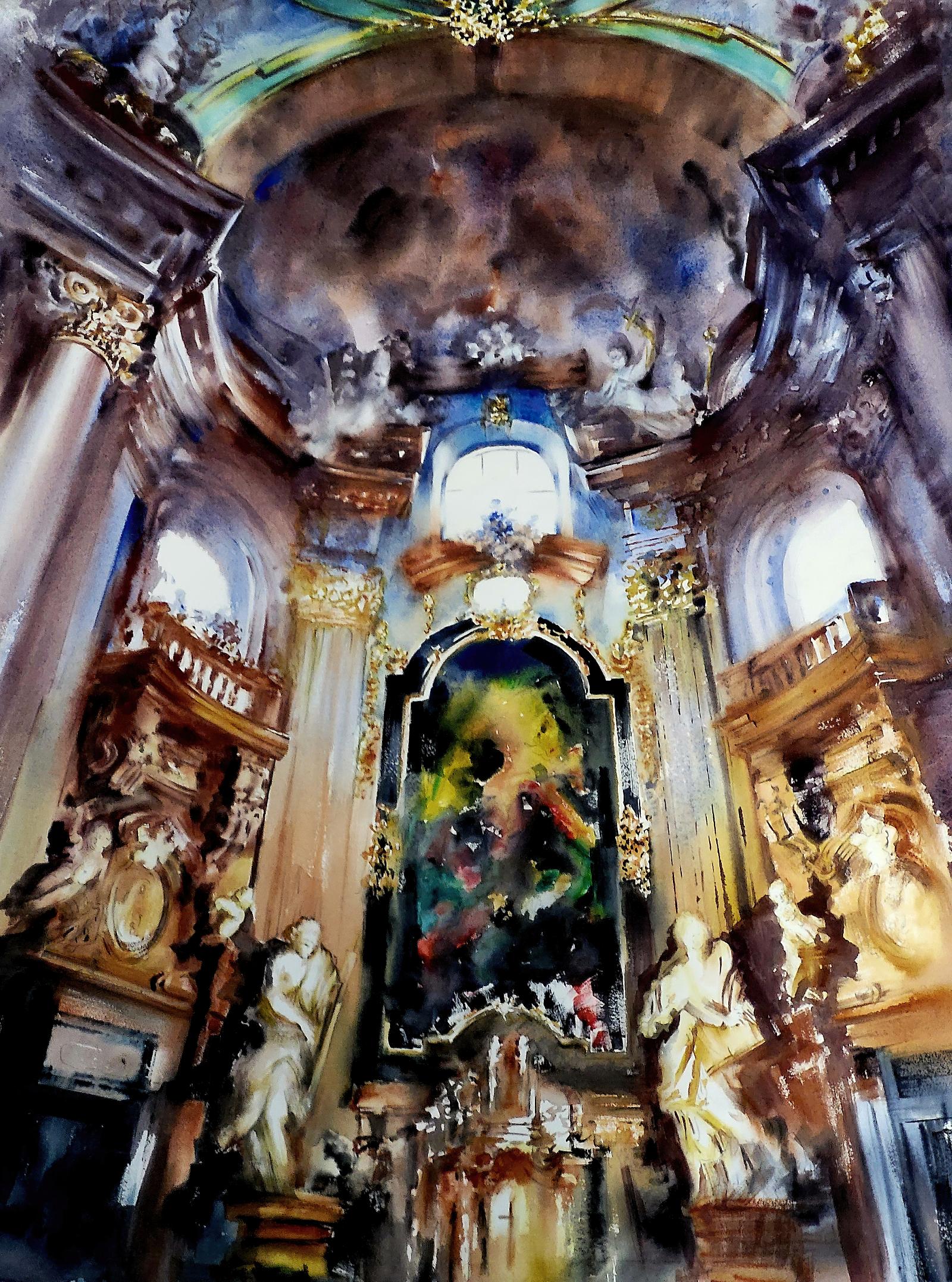 - continue painting without touching already painted areas, keeping watercolor in the «alla prima» style;