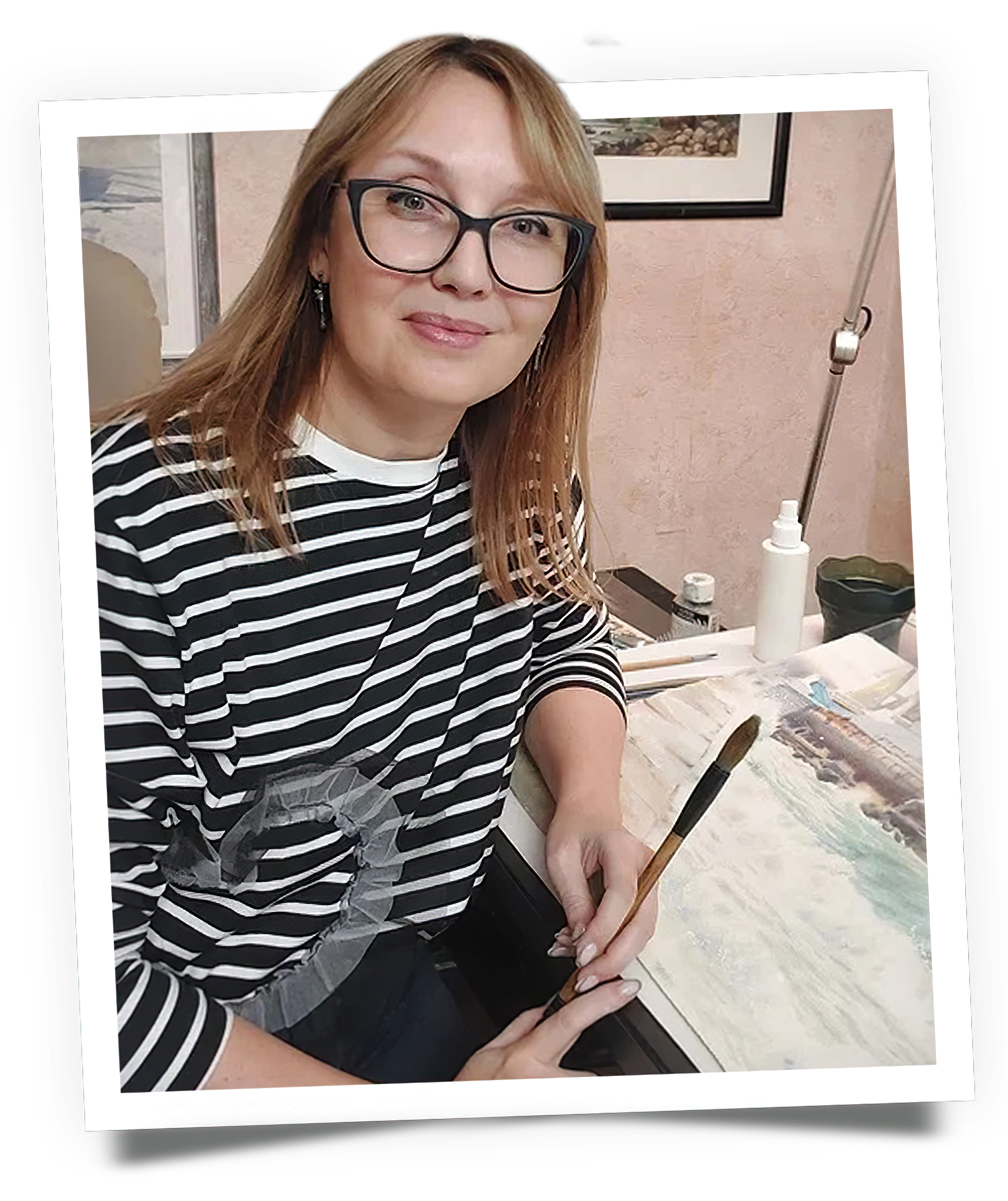 - Since 2020, she’s been actively taking part in exhibitions. She’s a participant and prize-winner at lots of regional and international exhibitions and plein airs