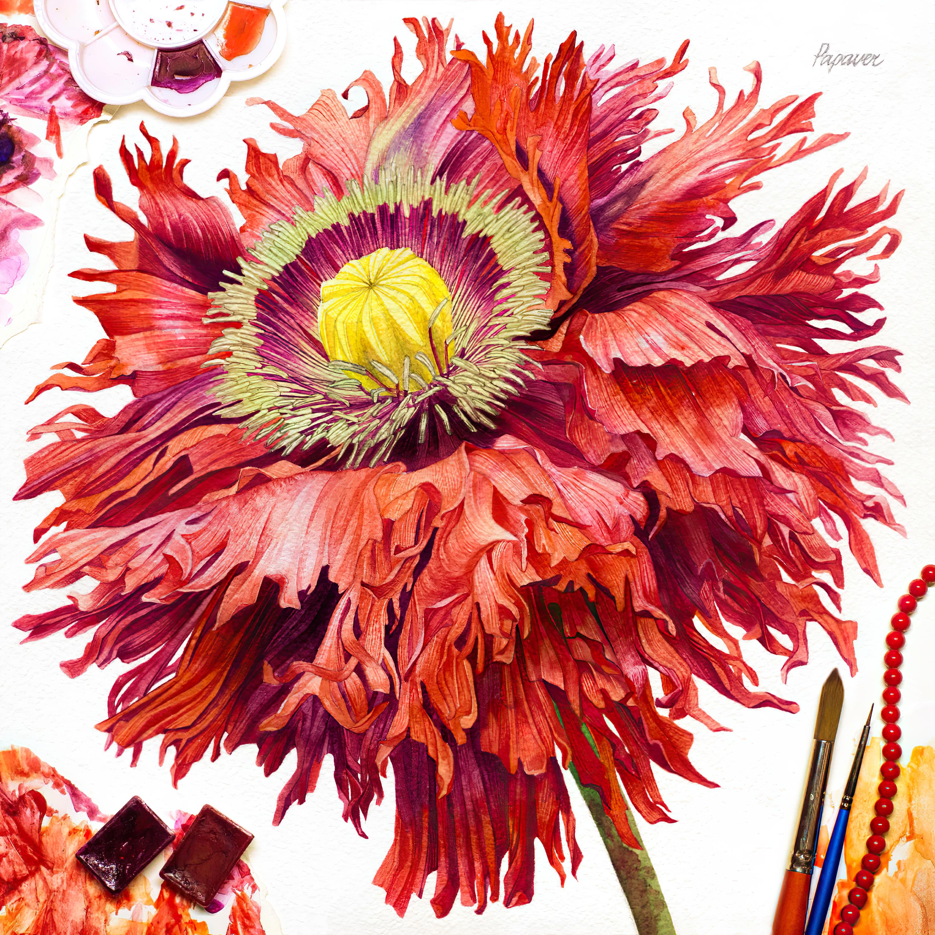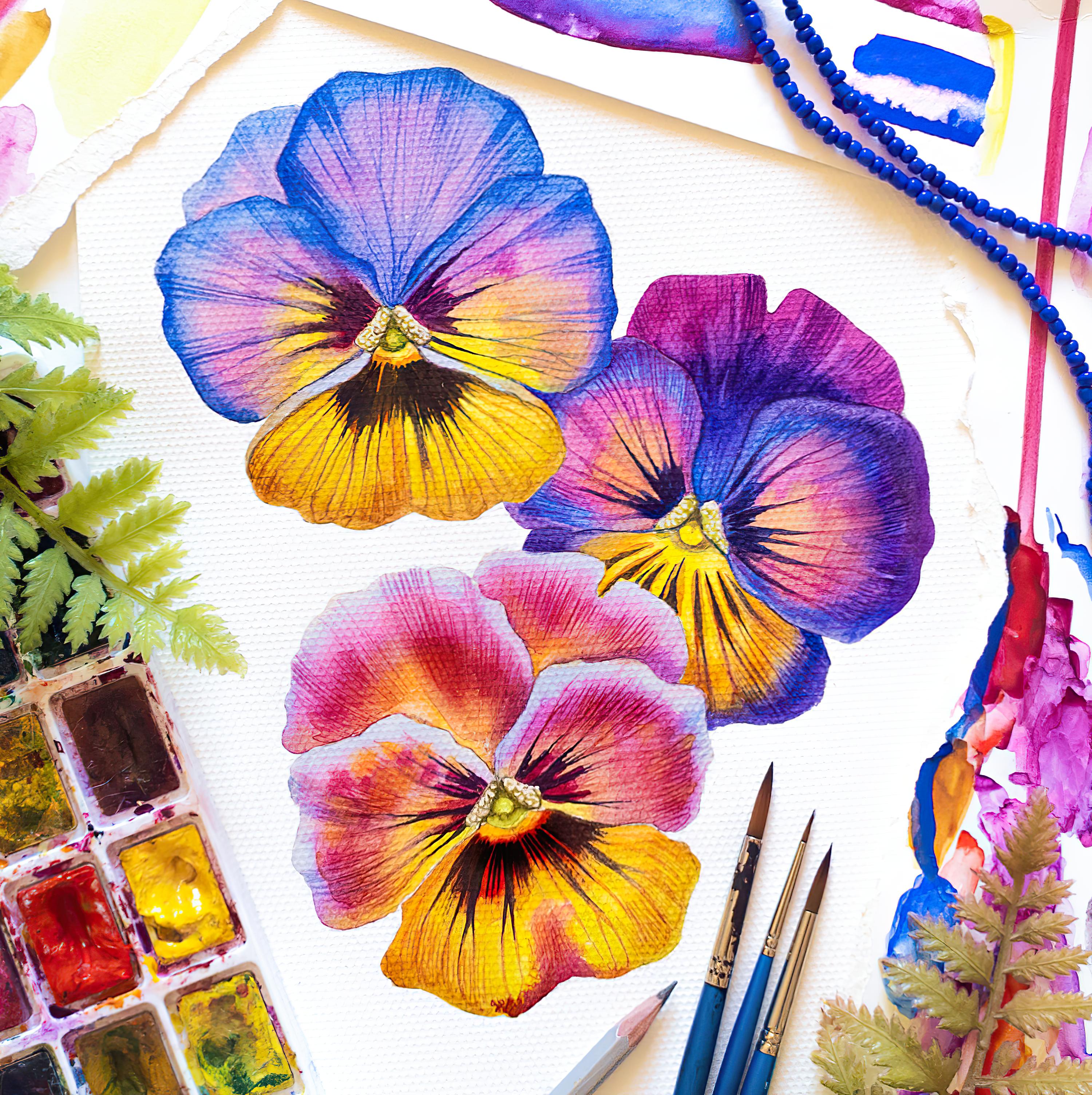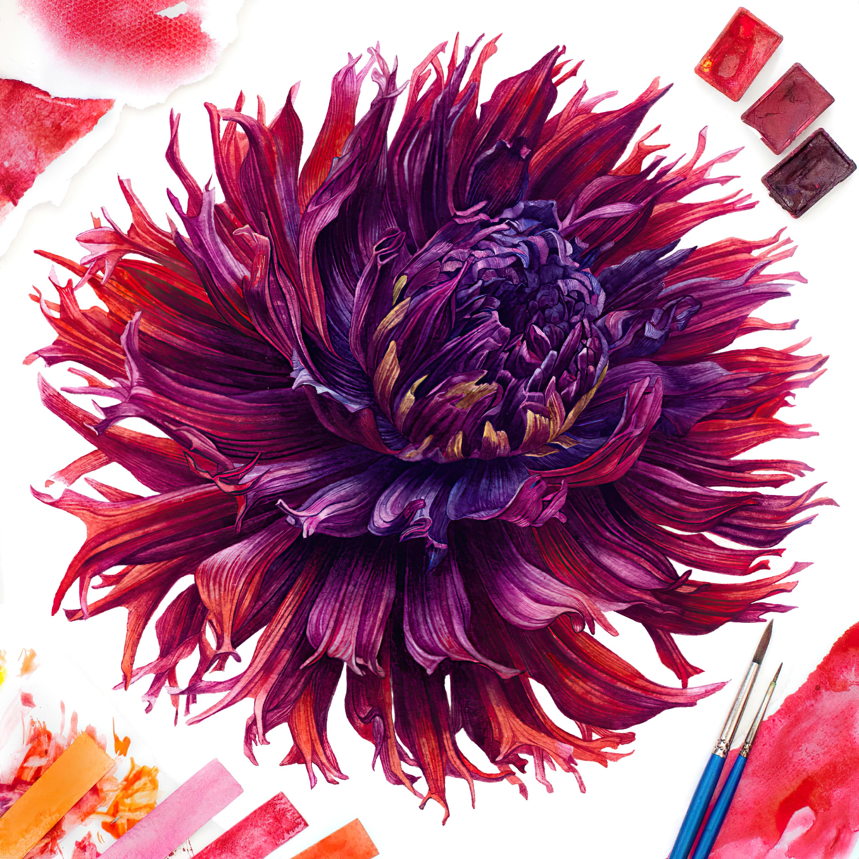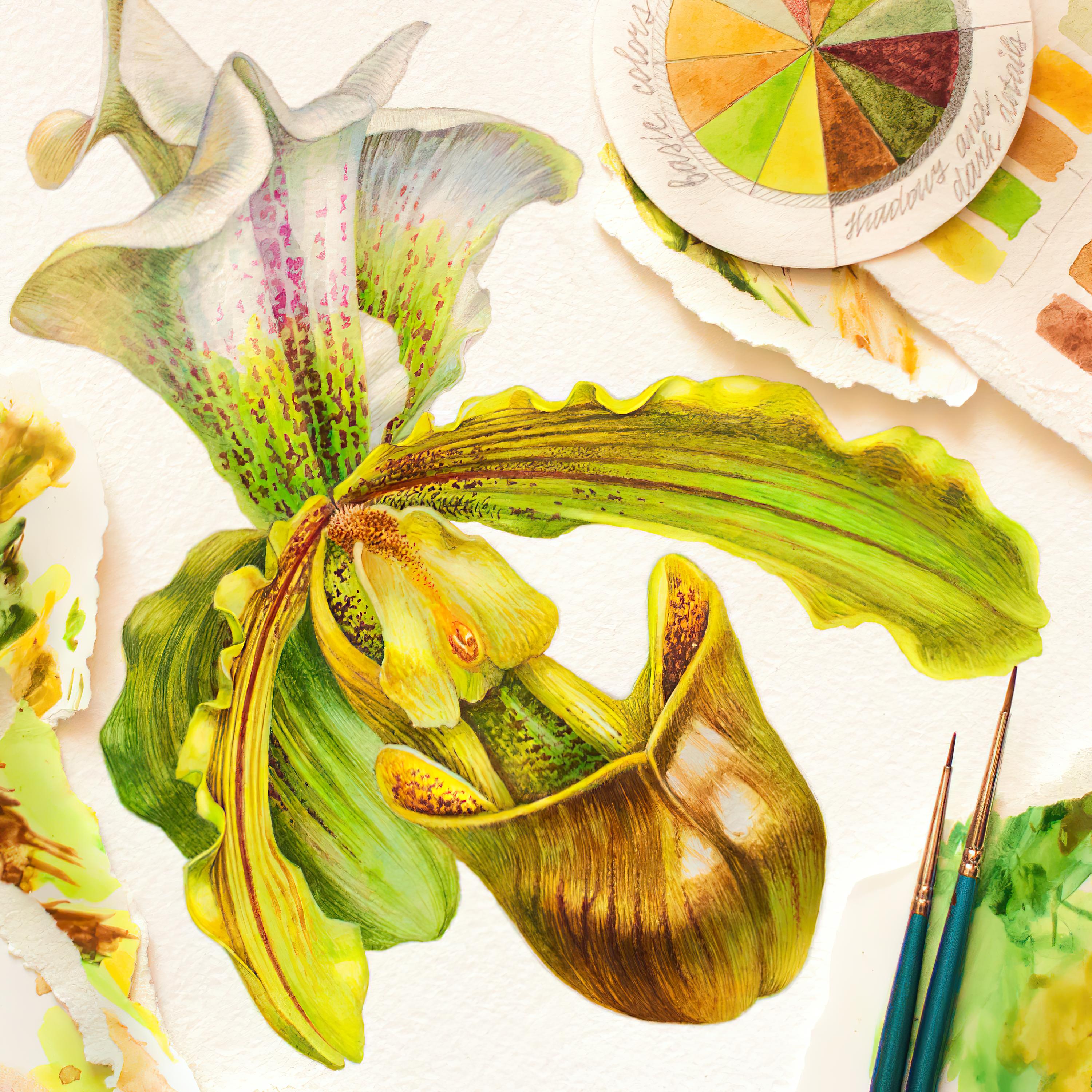 - Perform translucent washes with color interspersed with speckles in wet-on-wet technique to imitate the natural texture of petals;