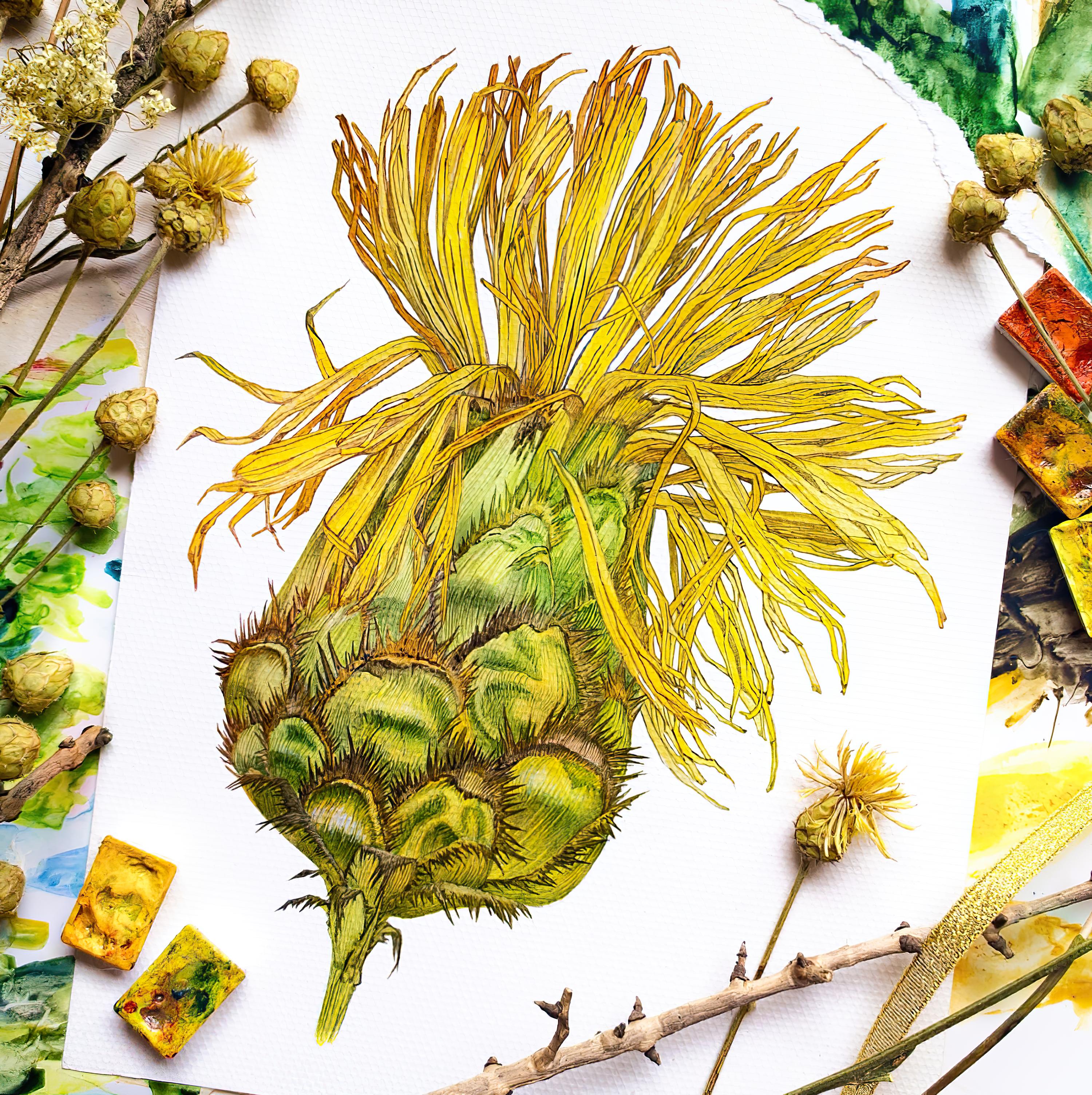 - Set the texture of the dry calyx of the fruit, taking into account fine detail.