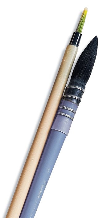 (in the course I use Sennelier and Van Gogh paints) - Brushes