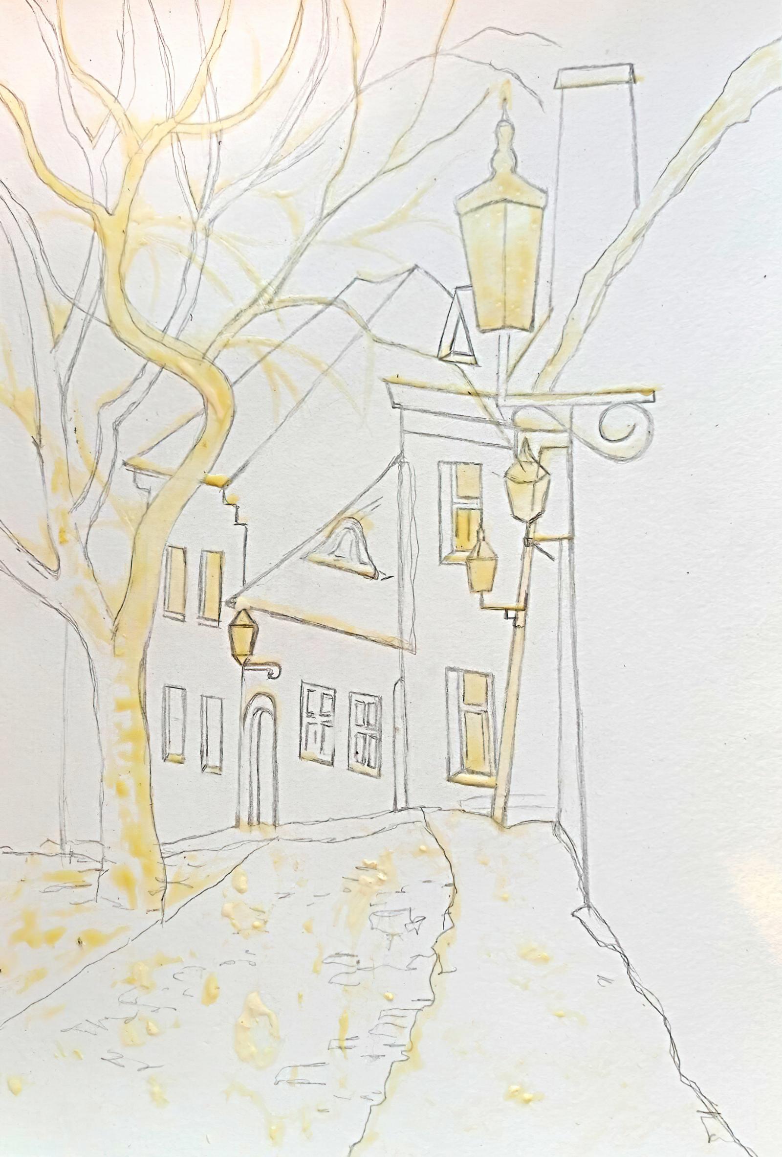 - make a detailed pencil drawing for watercolor