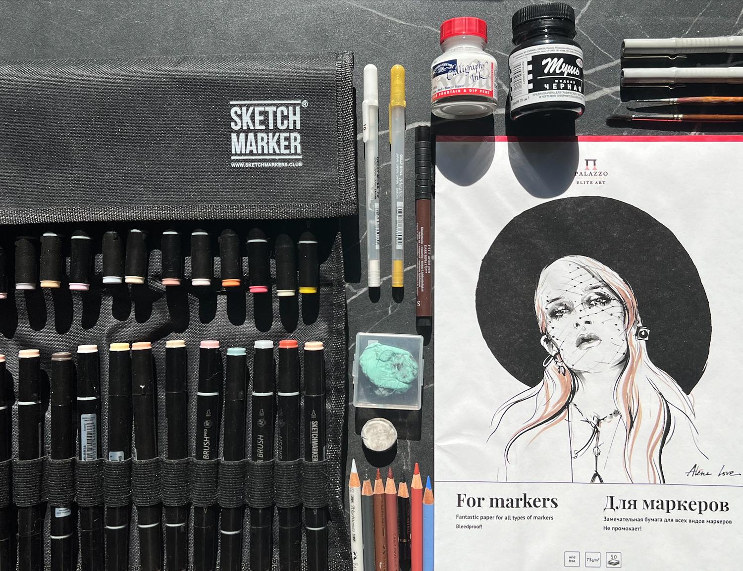 - alcohol-based markers: set of 24 colors “portrait” line by Sketchmarker;