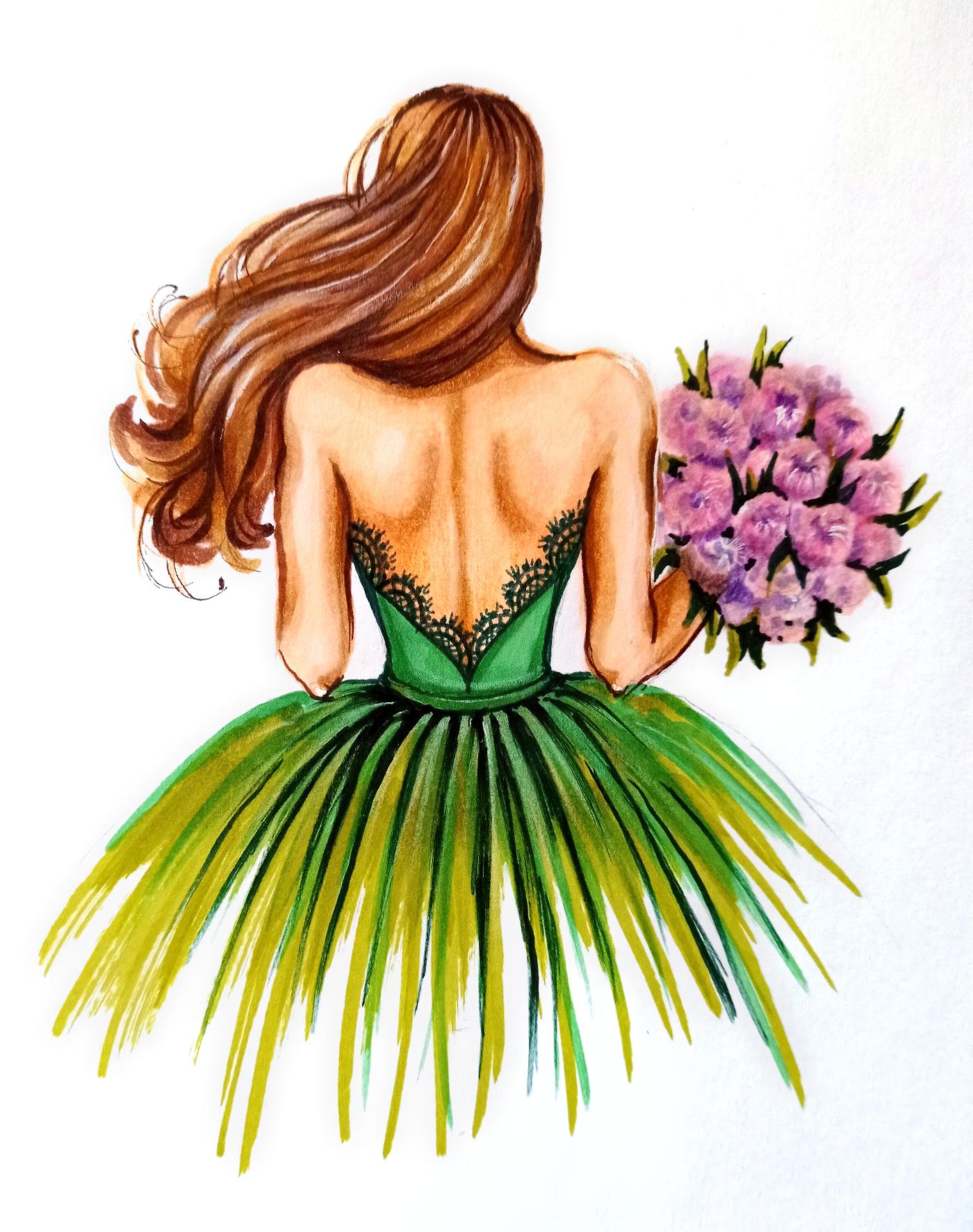 - To draw soft flowers in the style of fashion illustration
