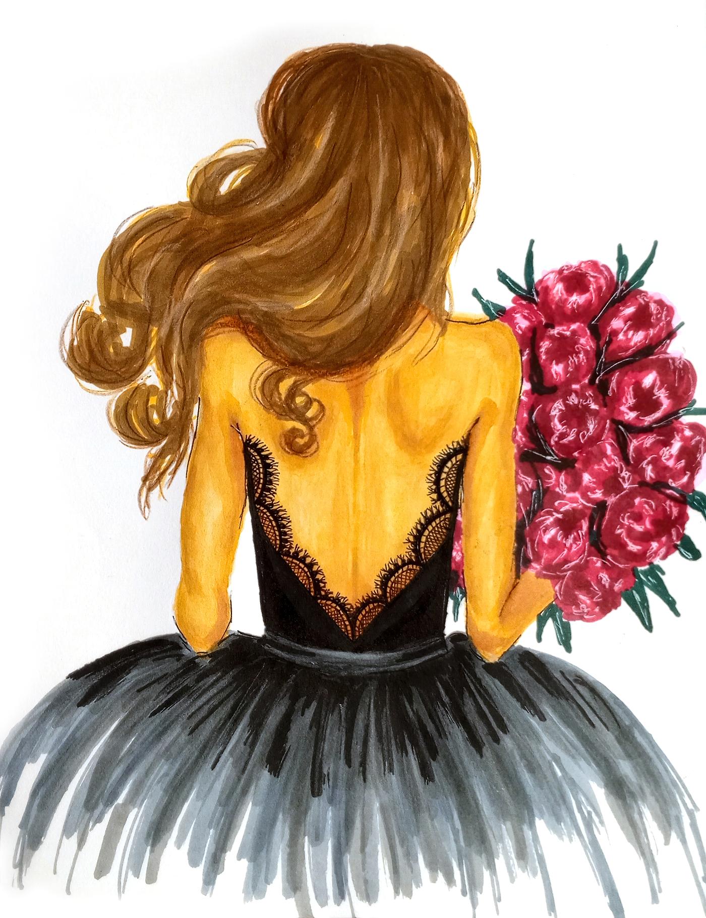 Drawing a Girl with a Bouquet