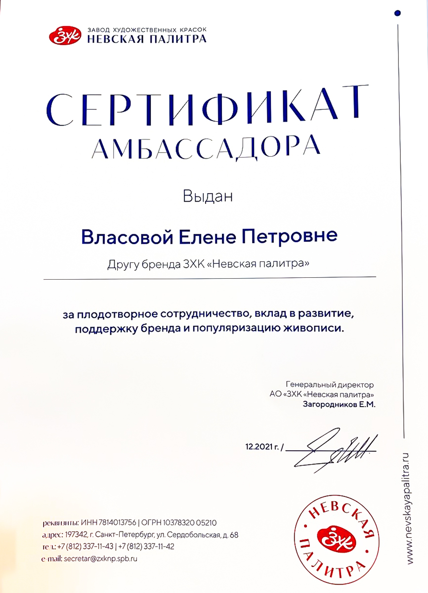 - Graduated from the Moscow State Pedagogical University named after Lenin and Academy of Watercolor and Fine Arts of Sergey Andriaka.