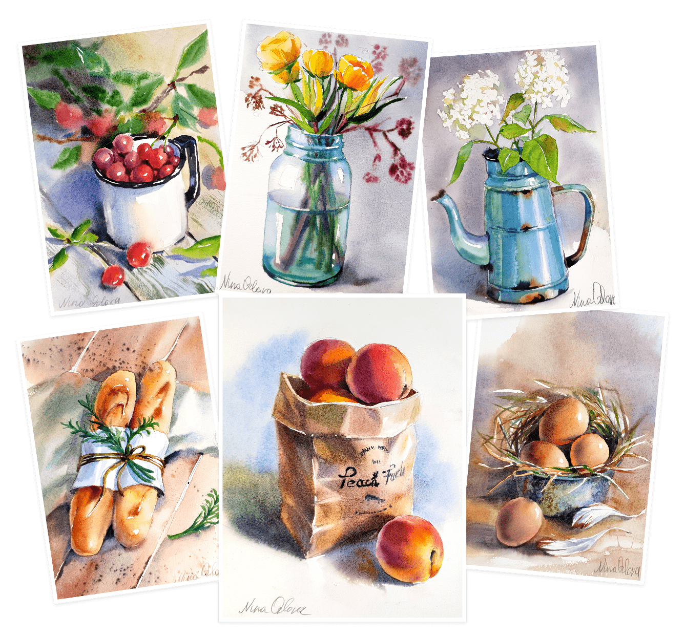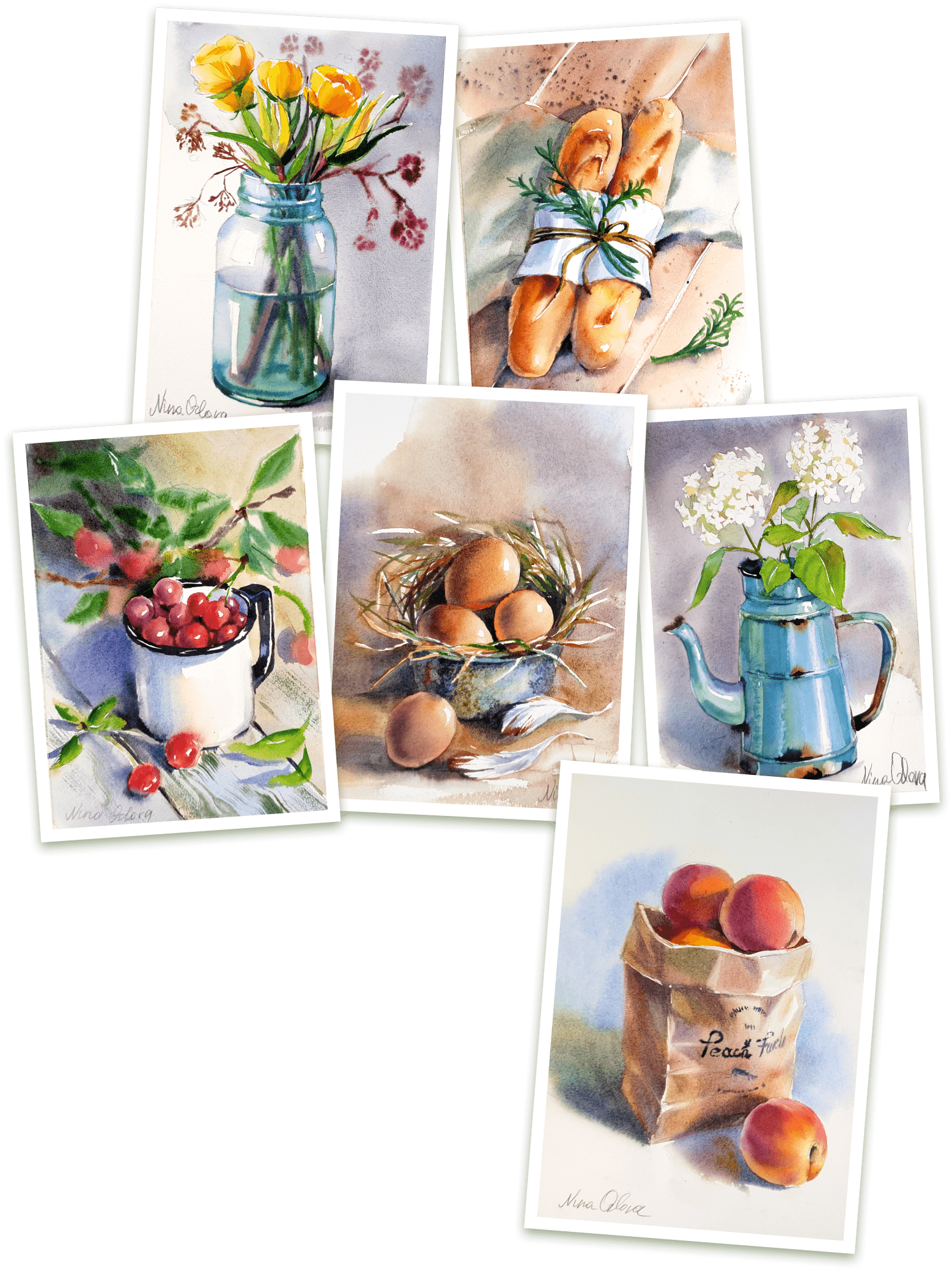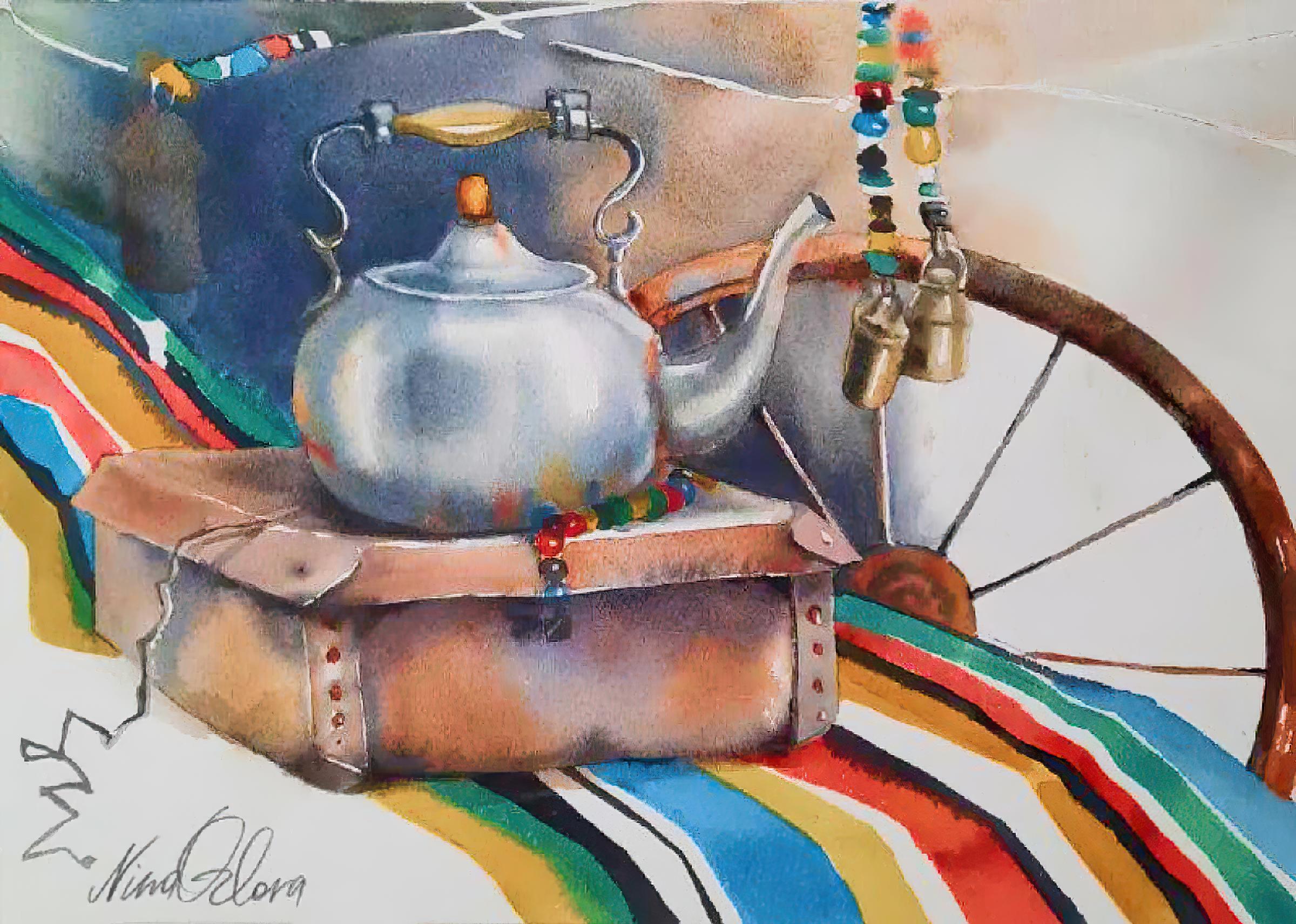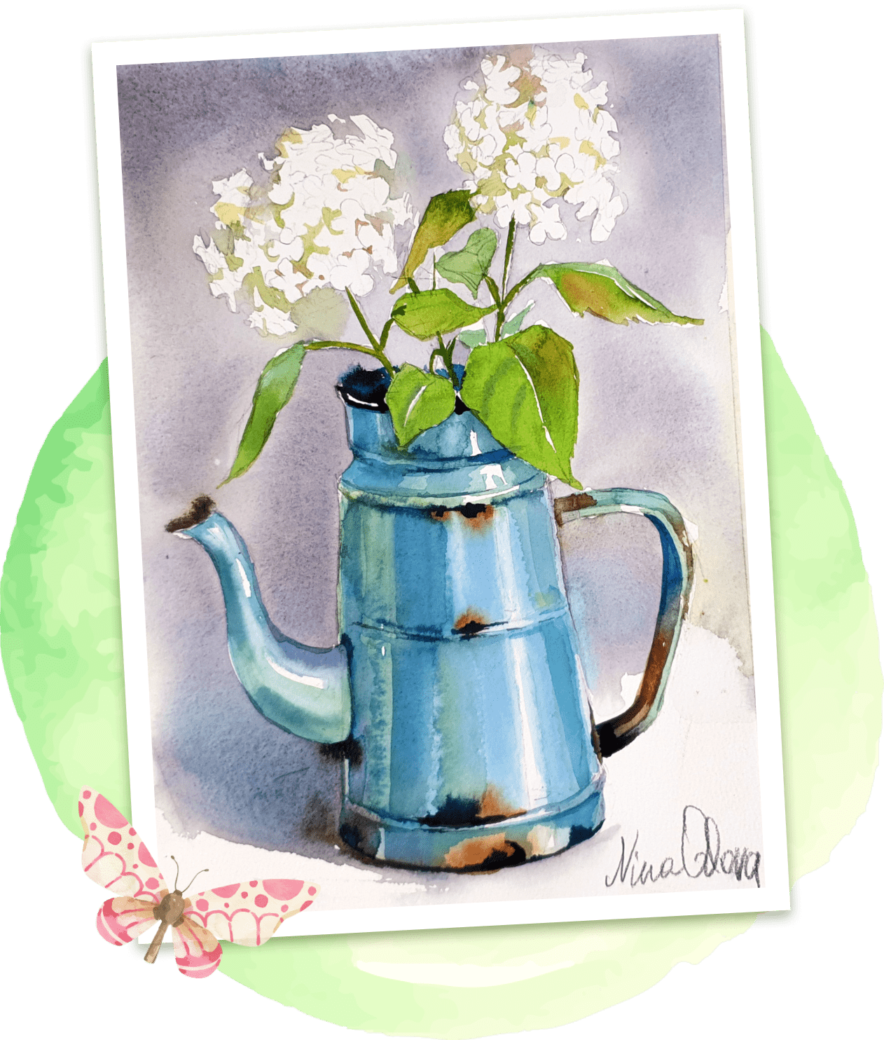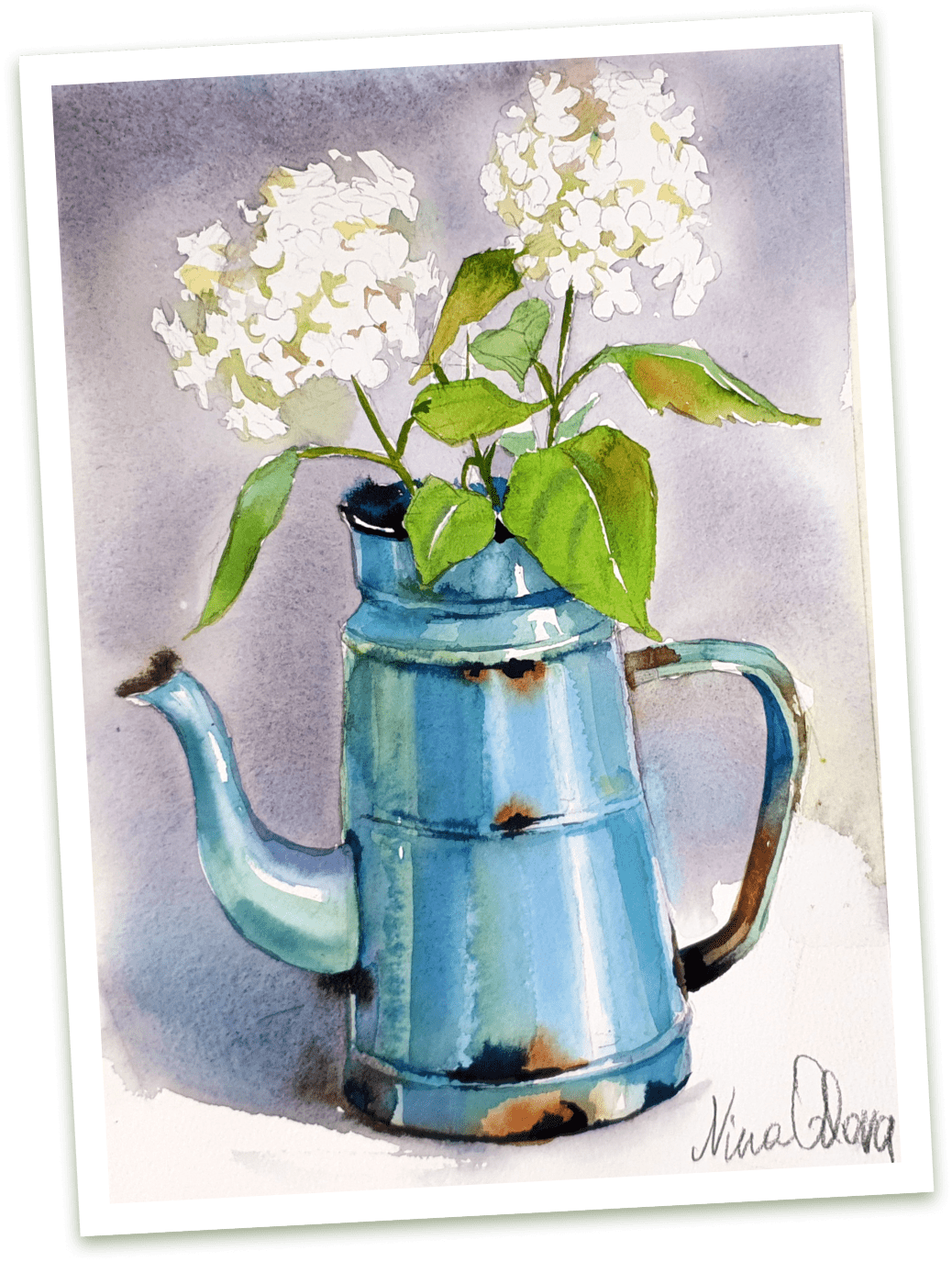 - learn how to convey the texture and color of an enamel teapot using smooth washes and glazing;