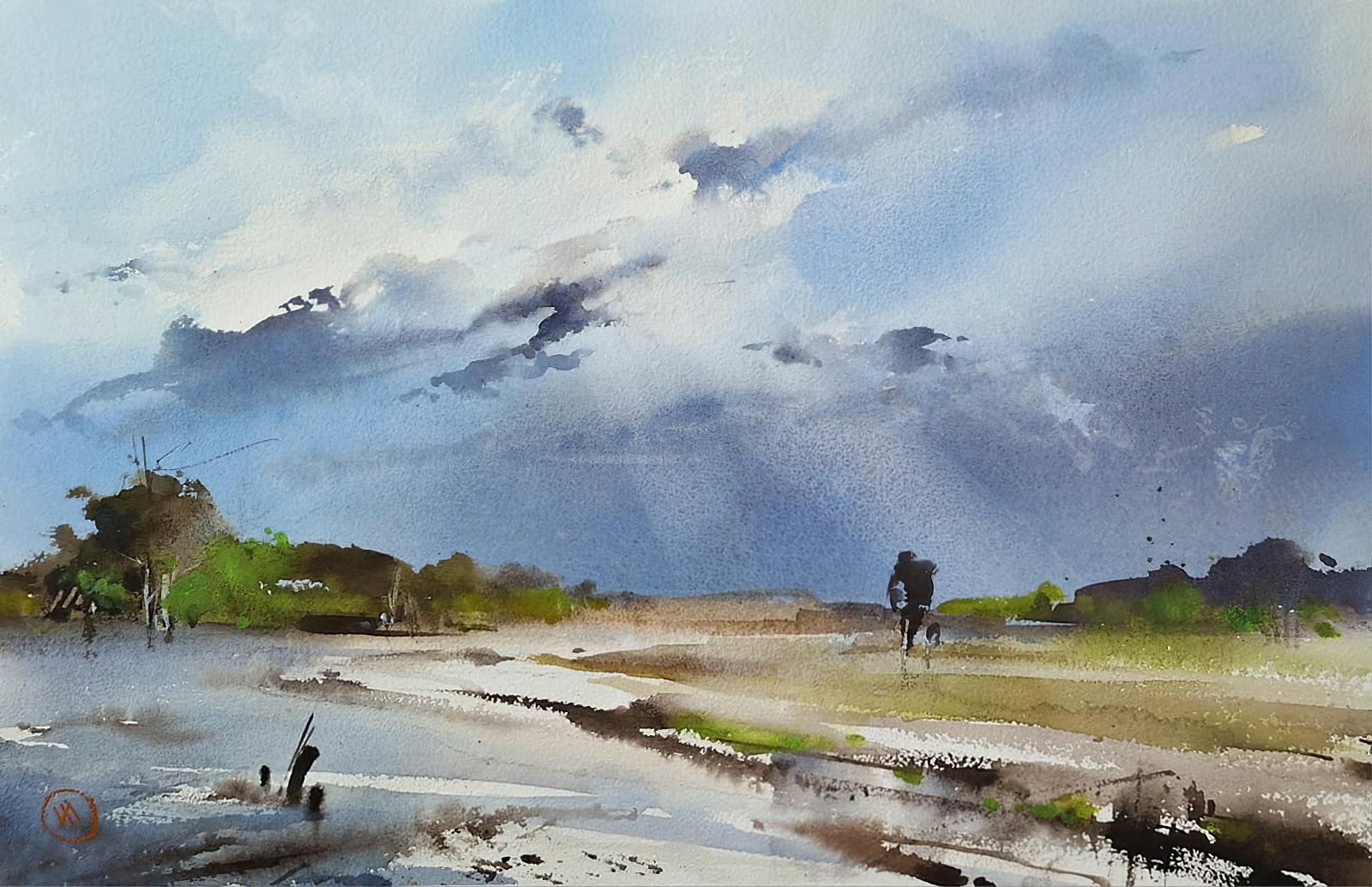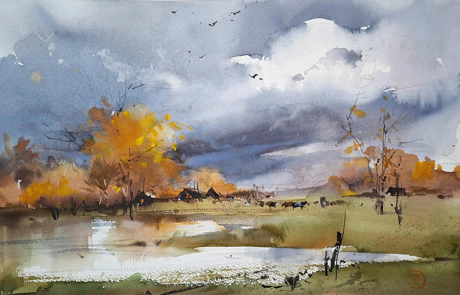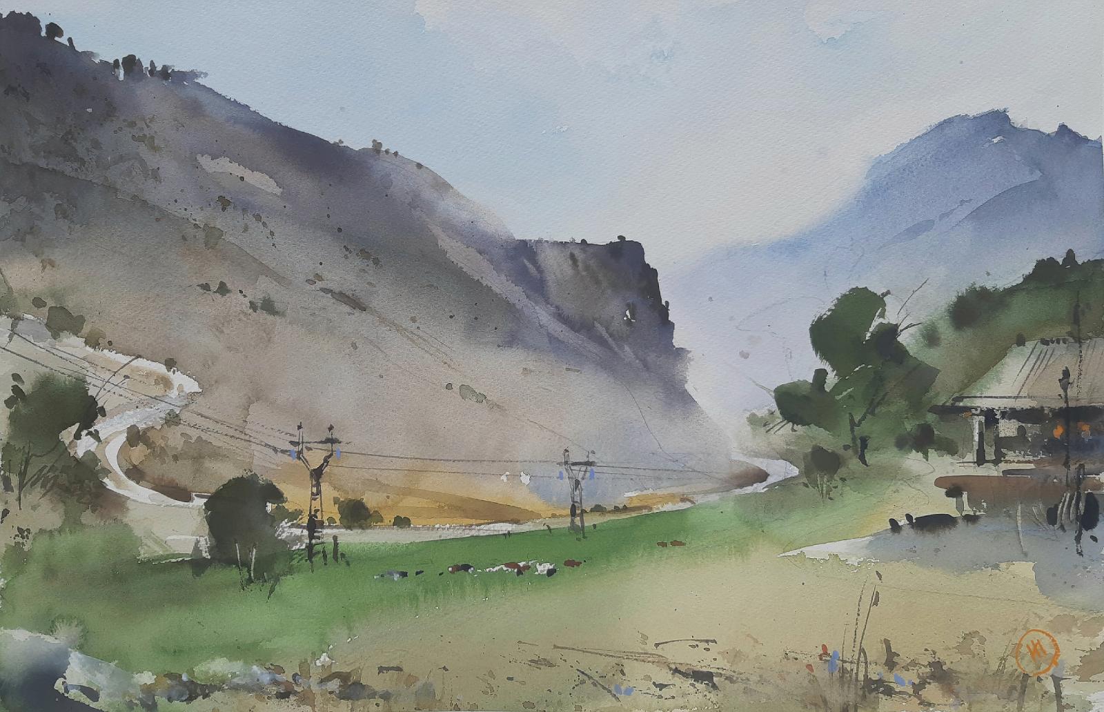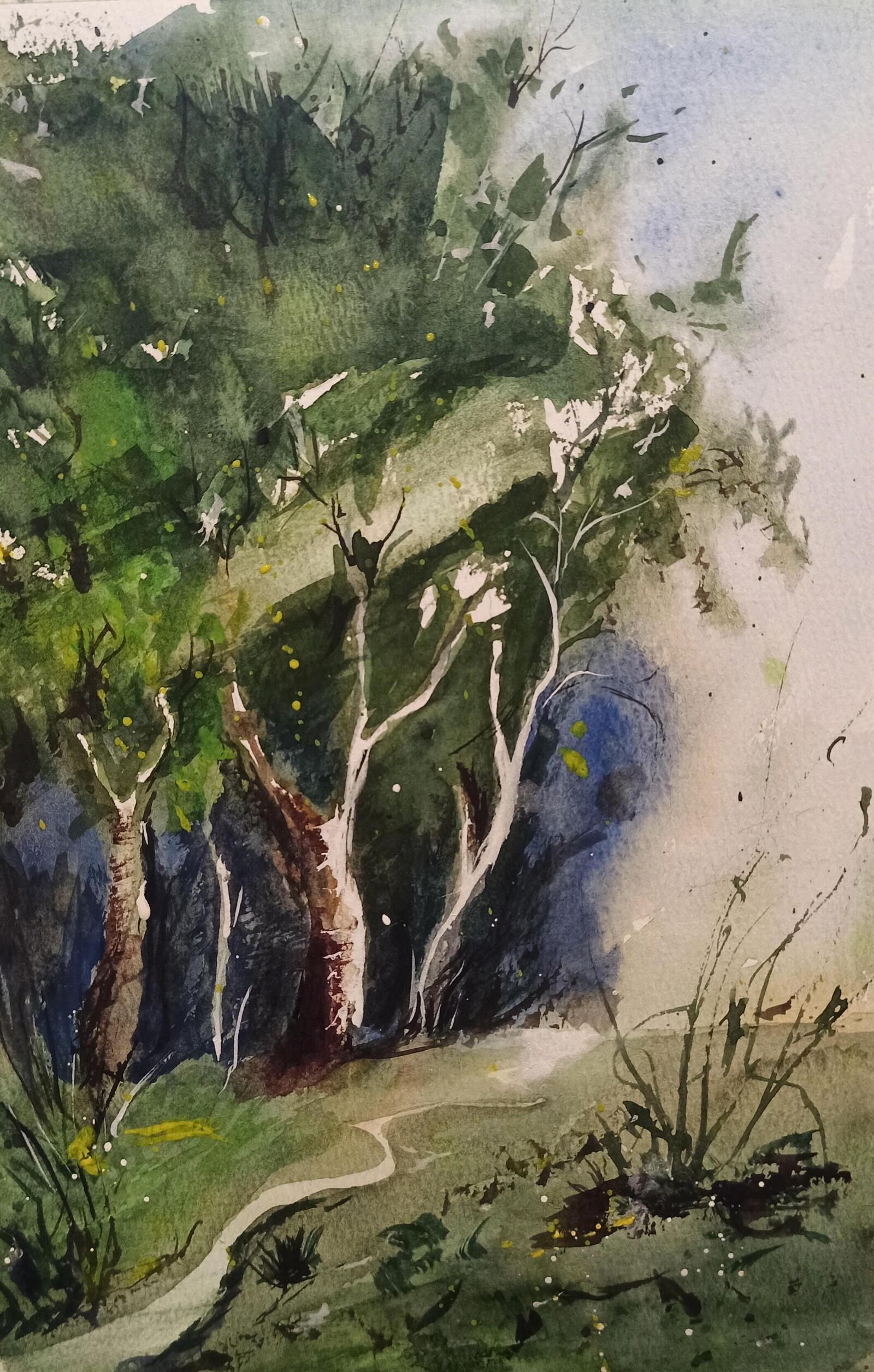 - it’s easy and smooth to work on the distant background first, and then go bold with big, juicy washes for the tree canopies