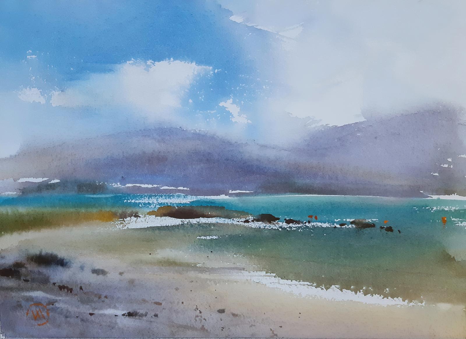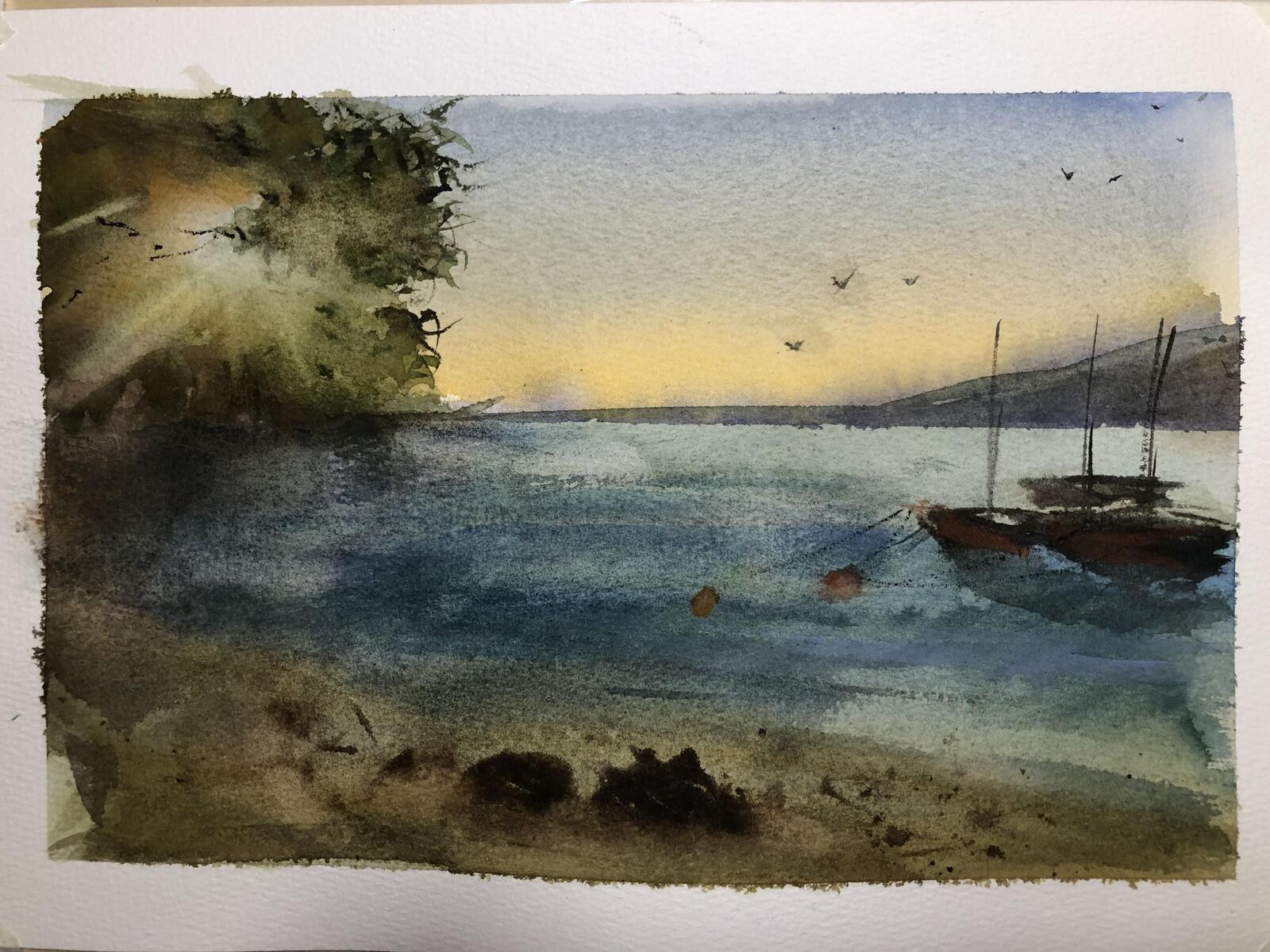 - to paint the moods of the sea in the sunset light, with bright highlights on the water and the backlit distant shore