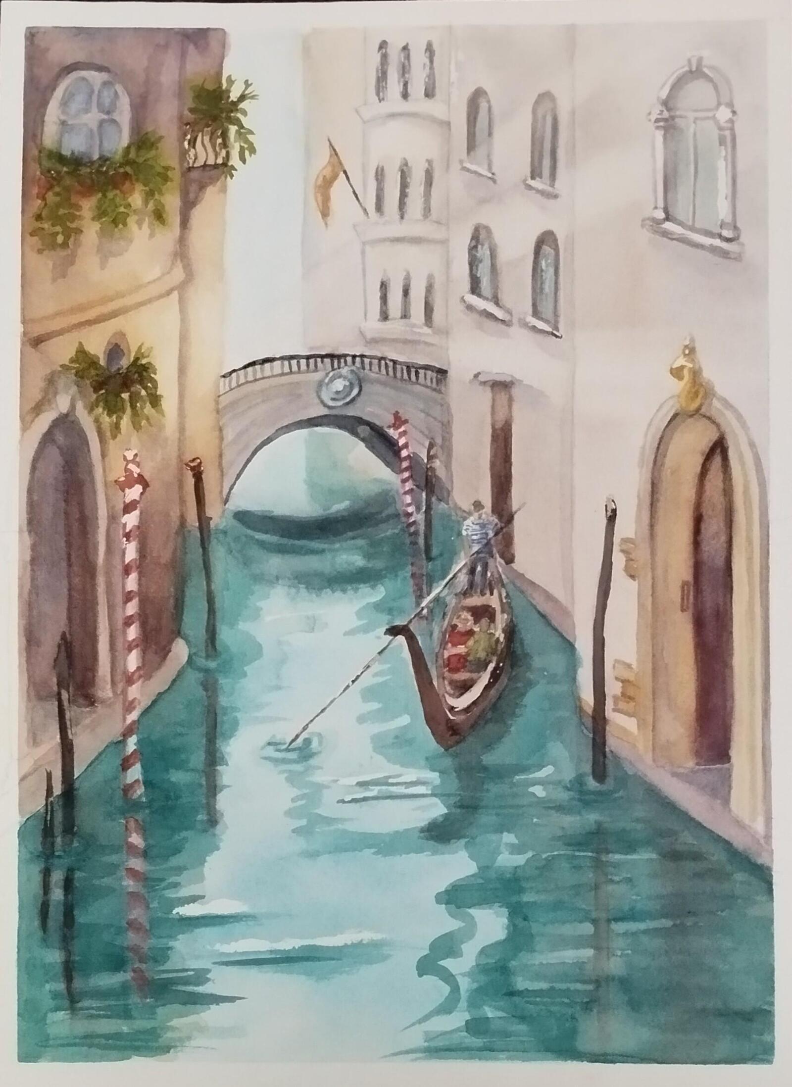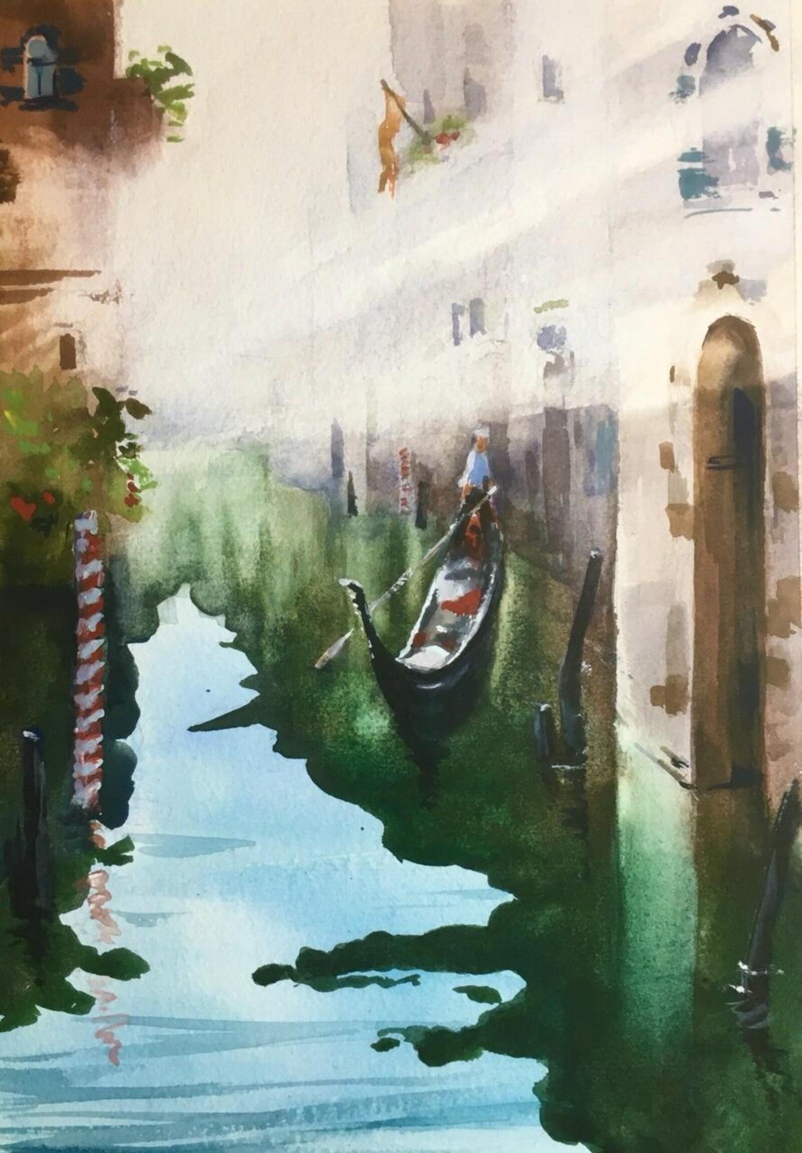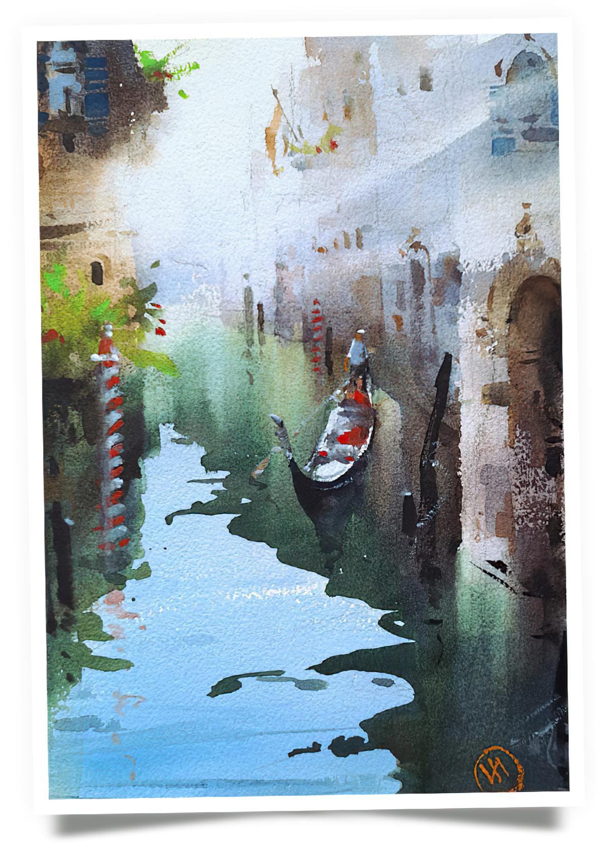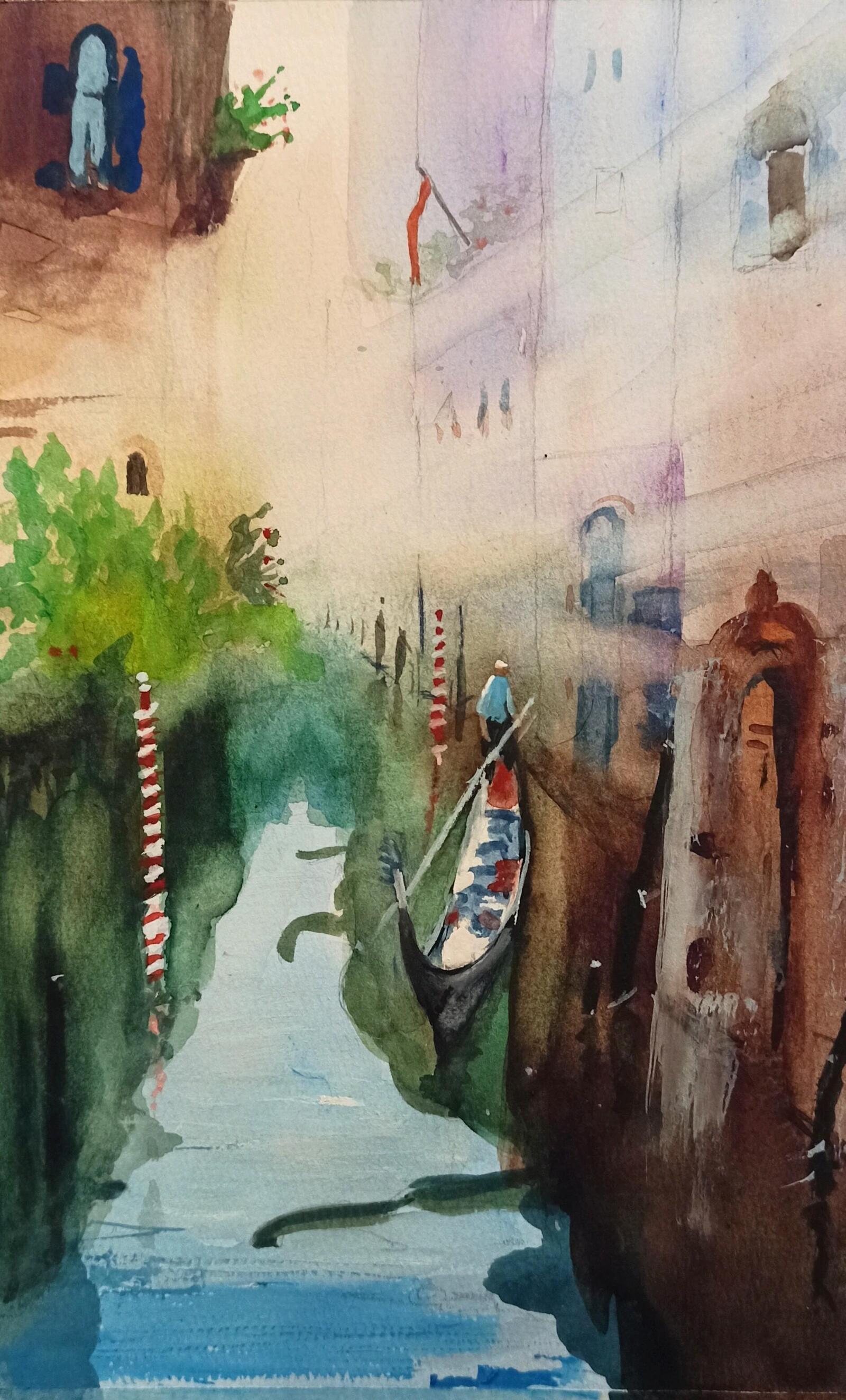 - easily capture the architecture of street buildings, the smooth surface of the water, and reflections with big, loose washes