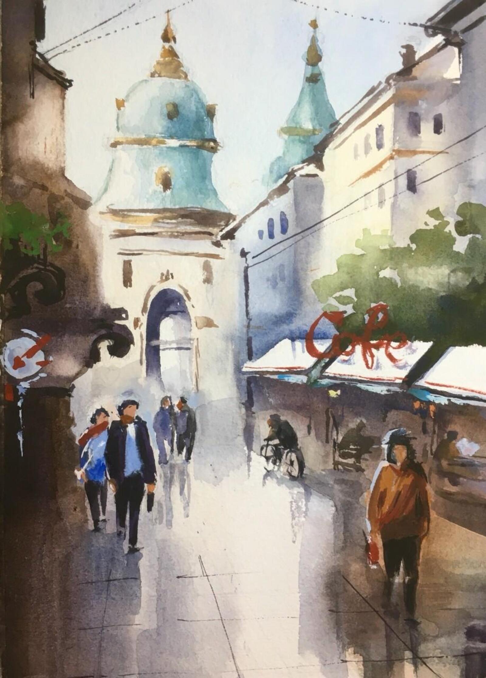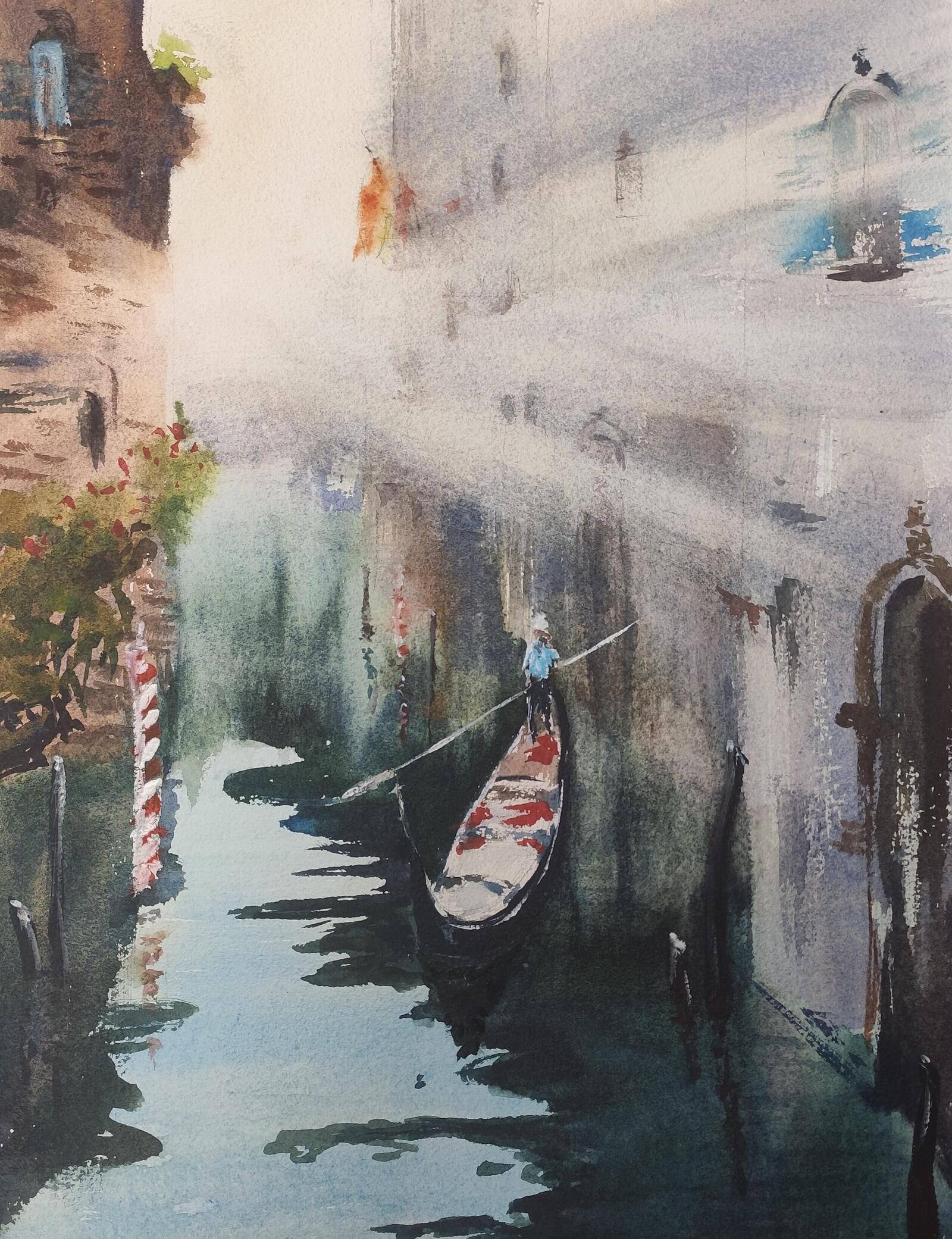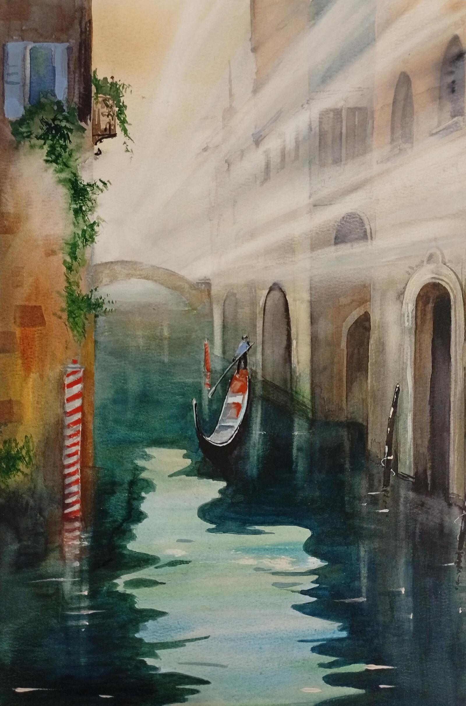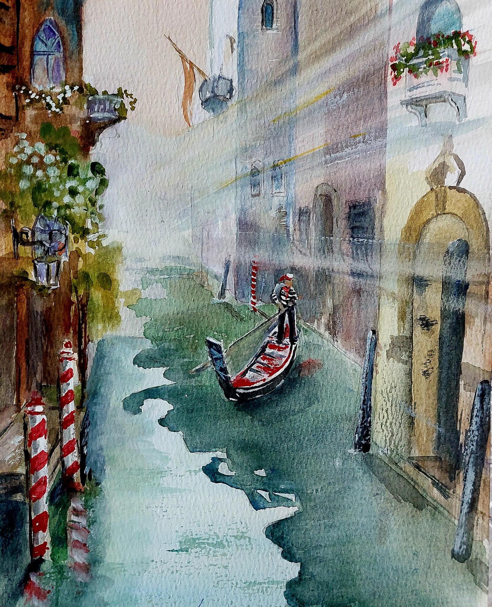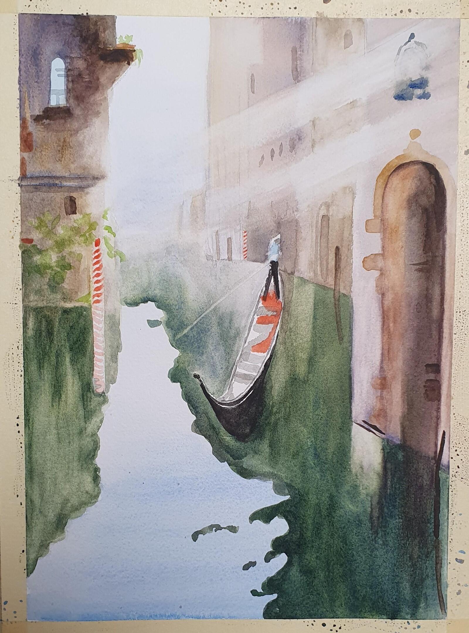 - easily capture the architecture of street buildings, the smooth surface of the water, and reflections with big, loose washes