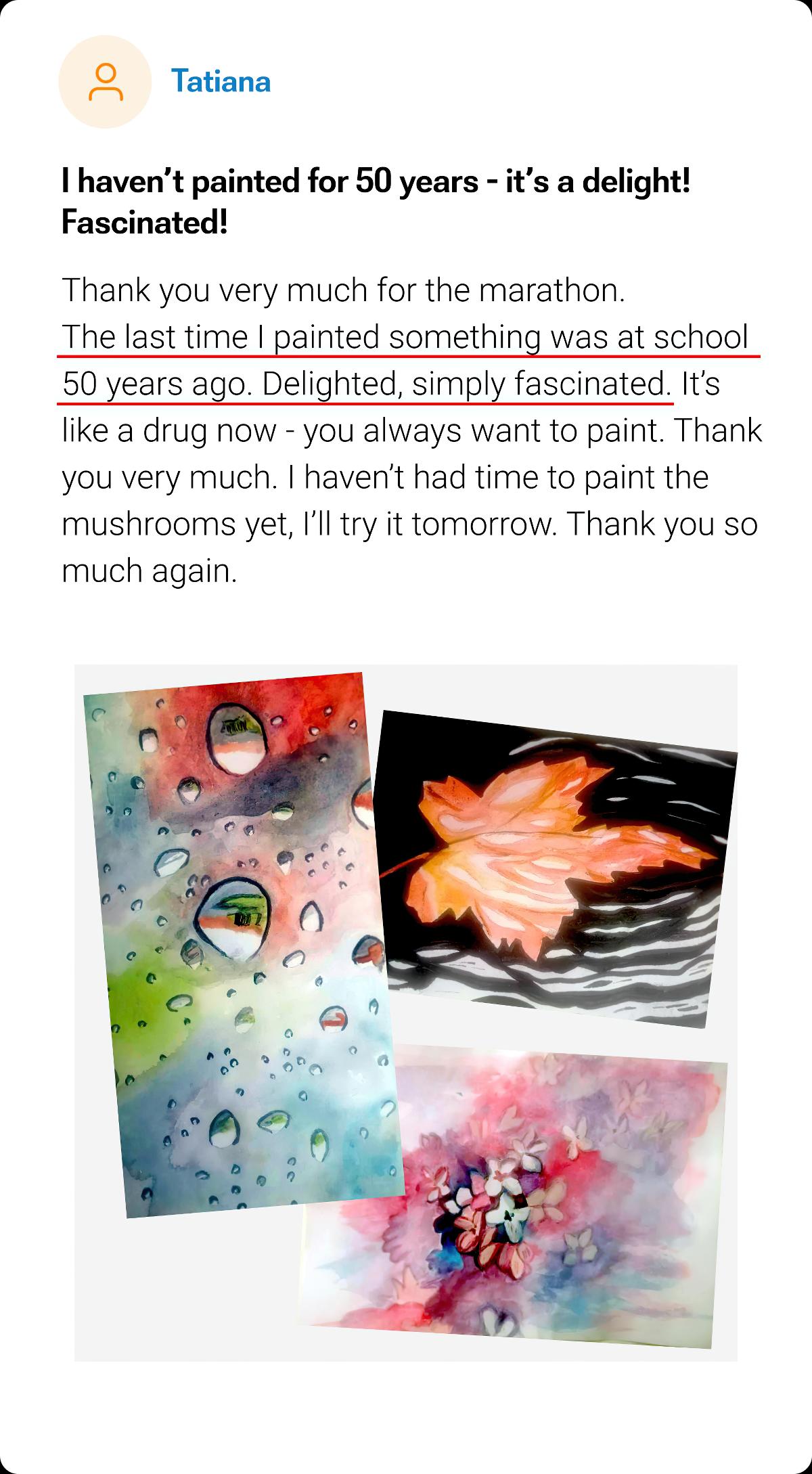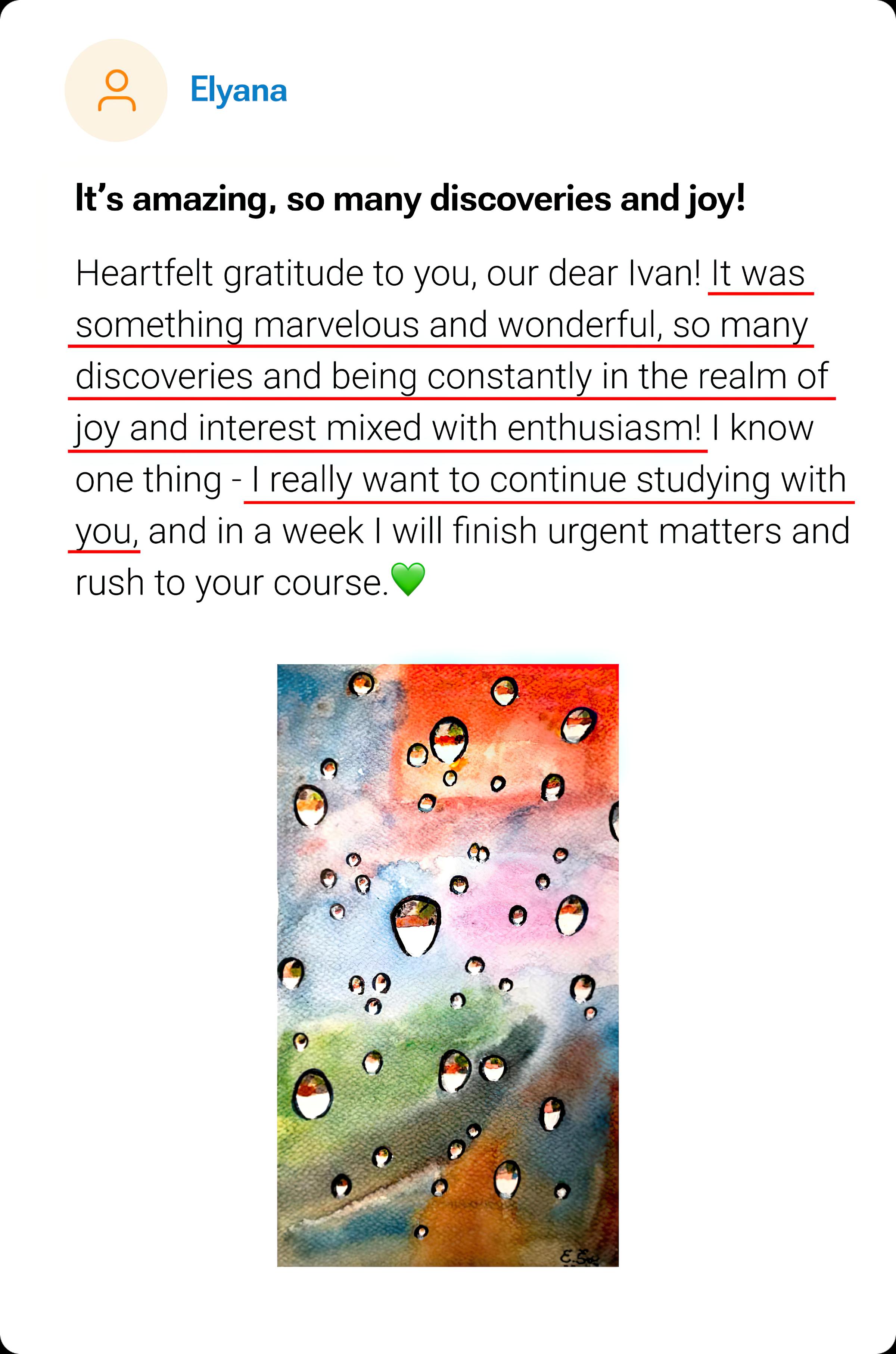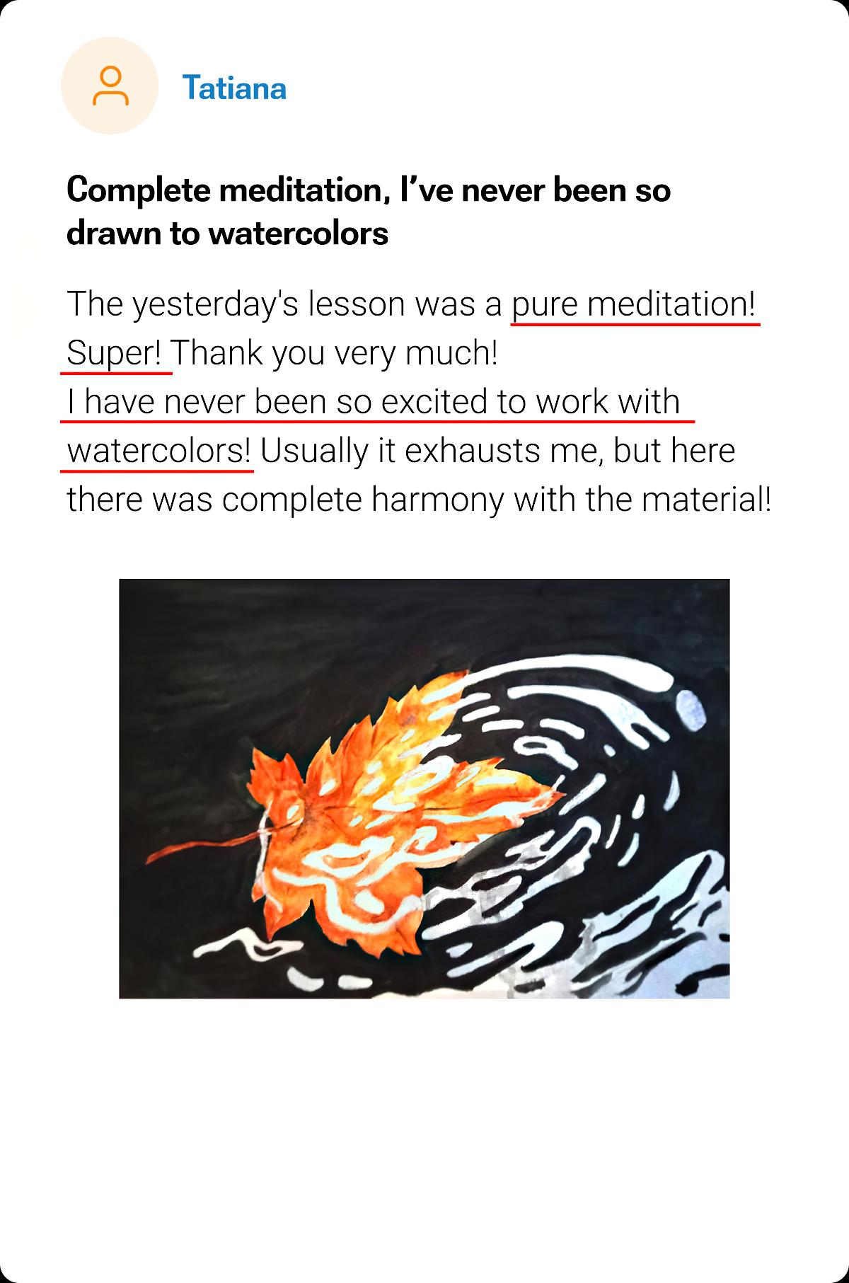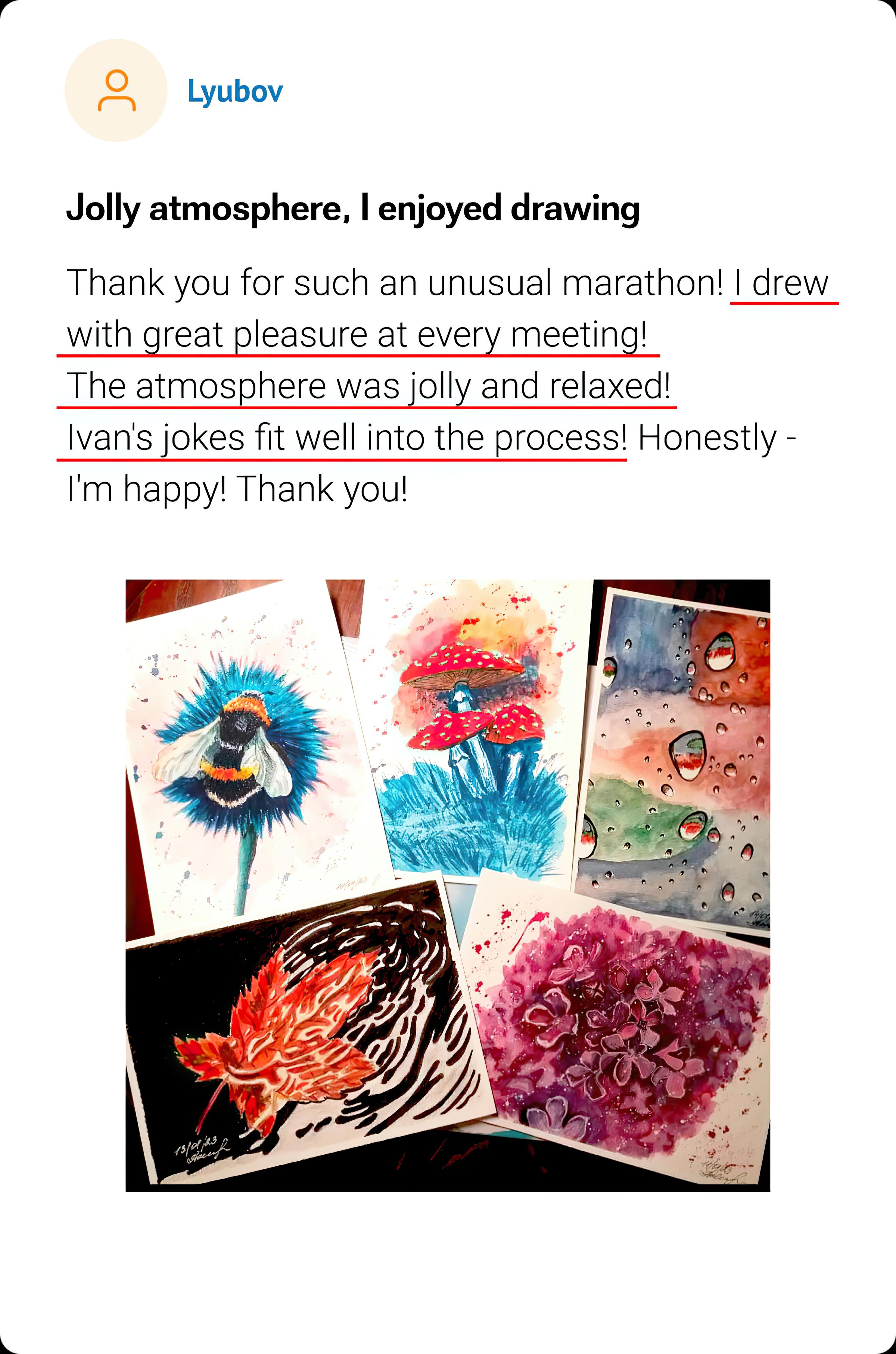 We will learn to enjoy the process of drawing and create happiness inside with the help of special subjects and watercolor magic.