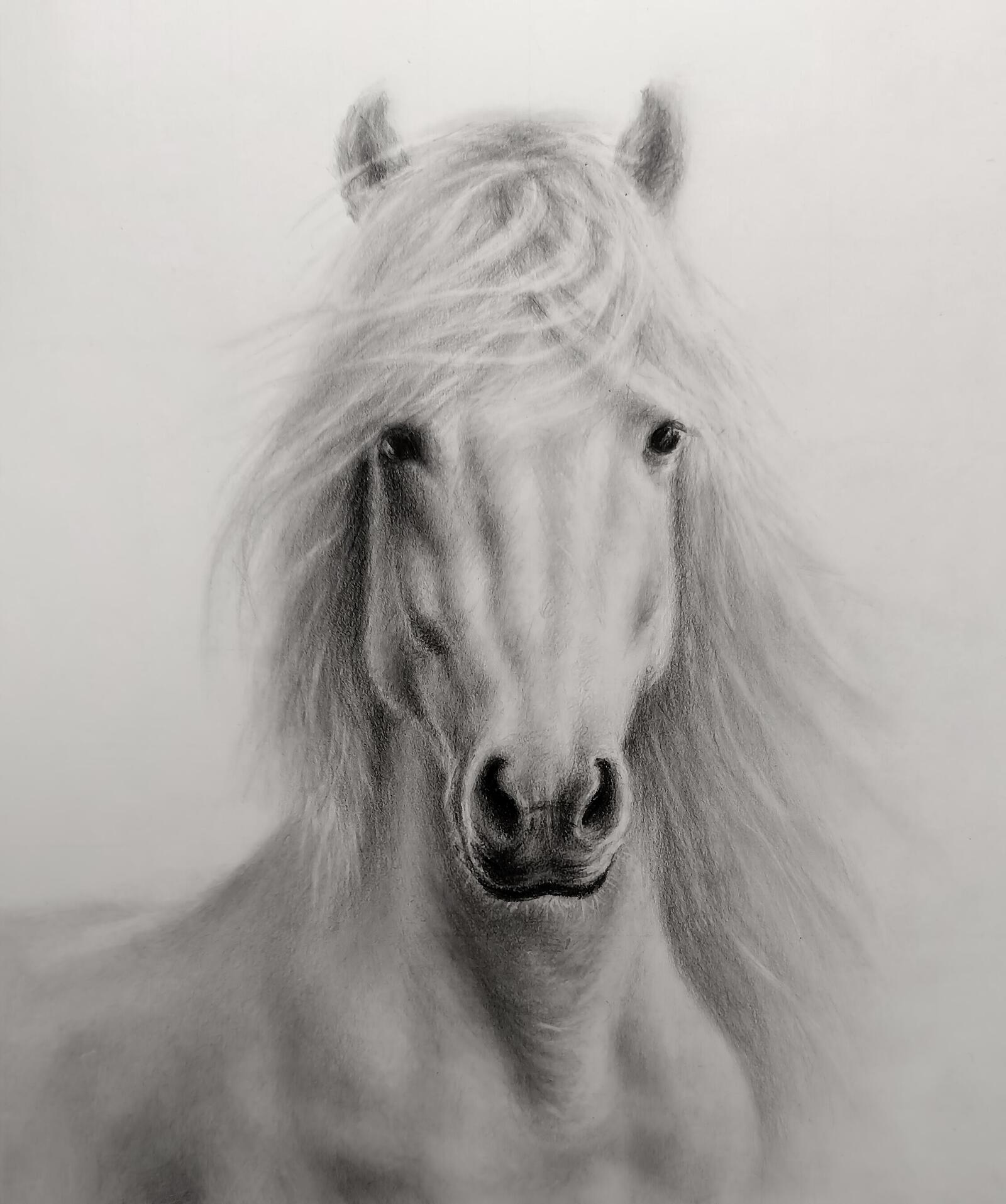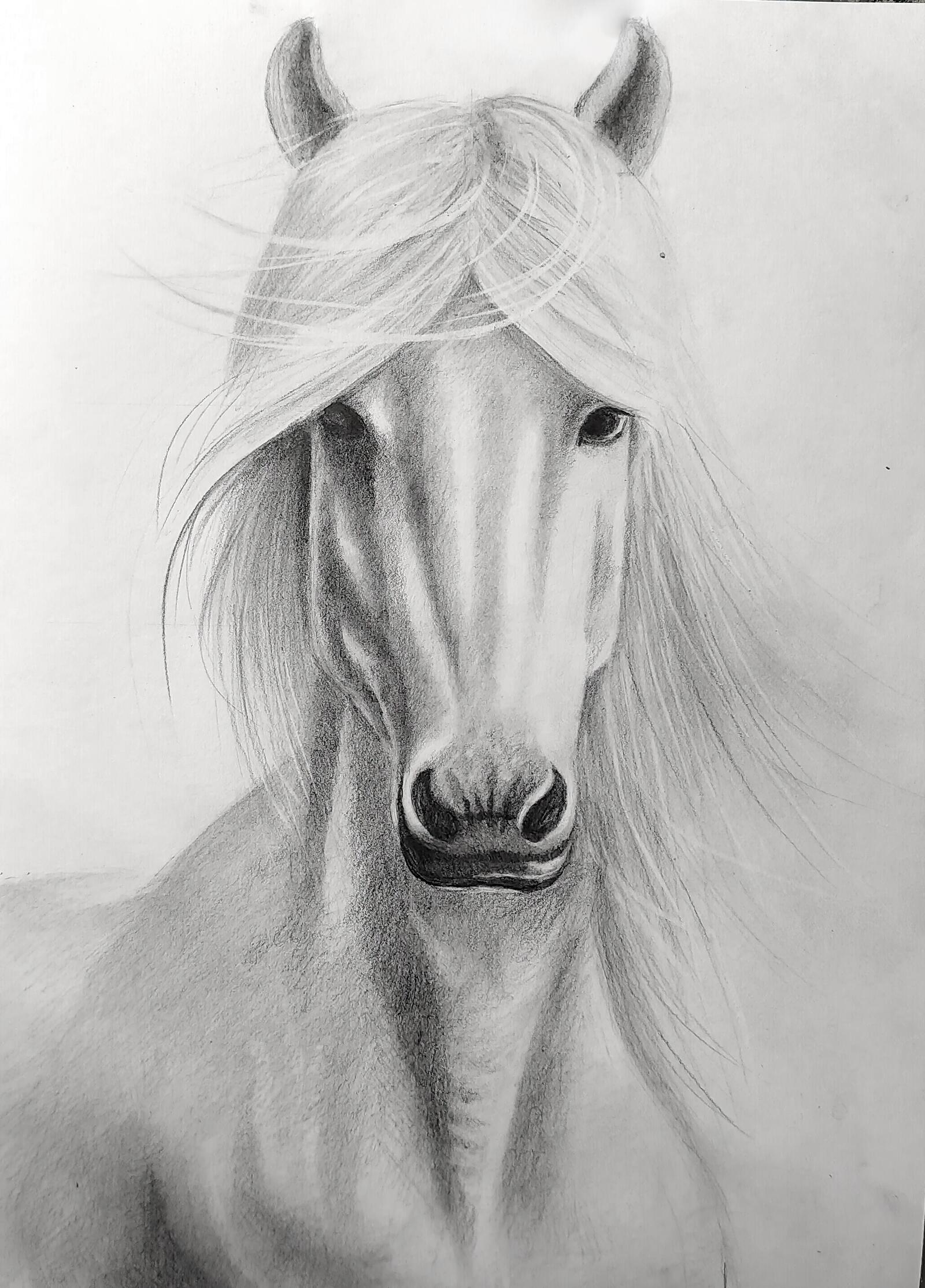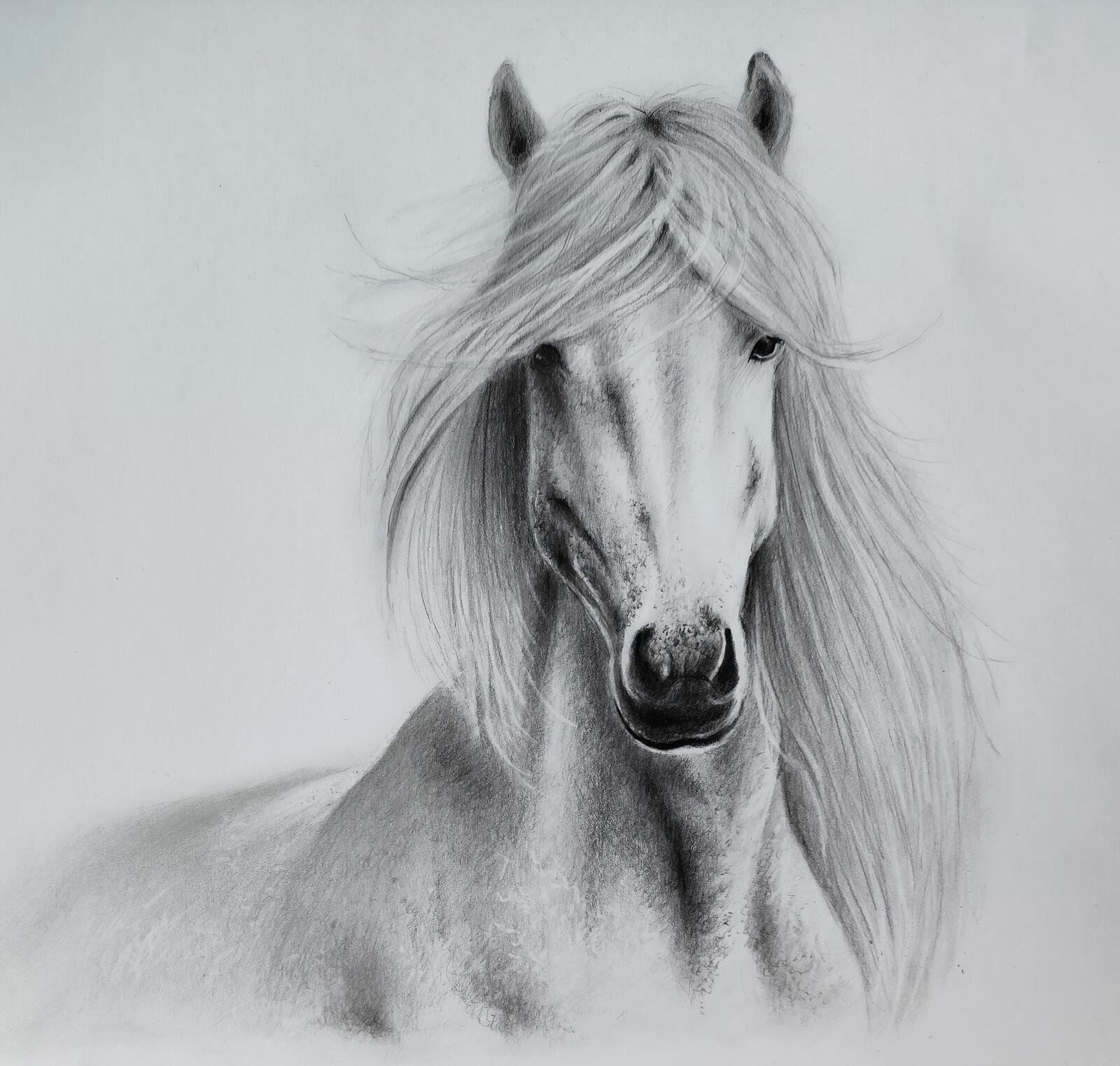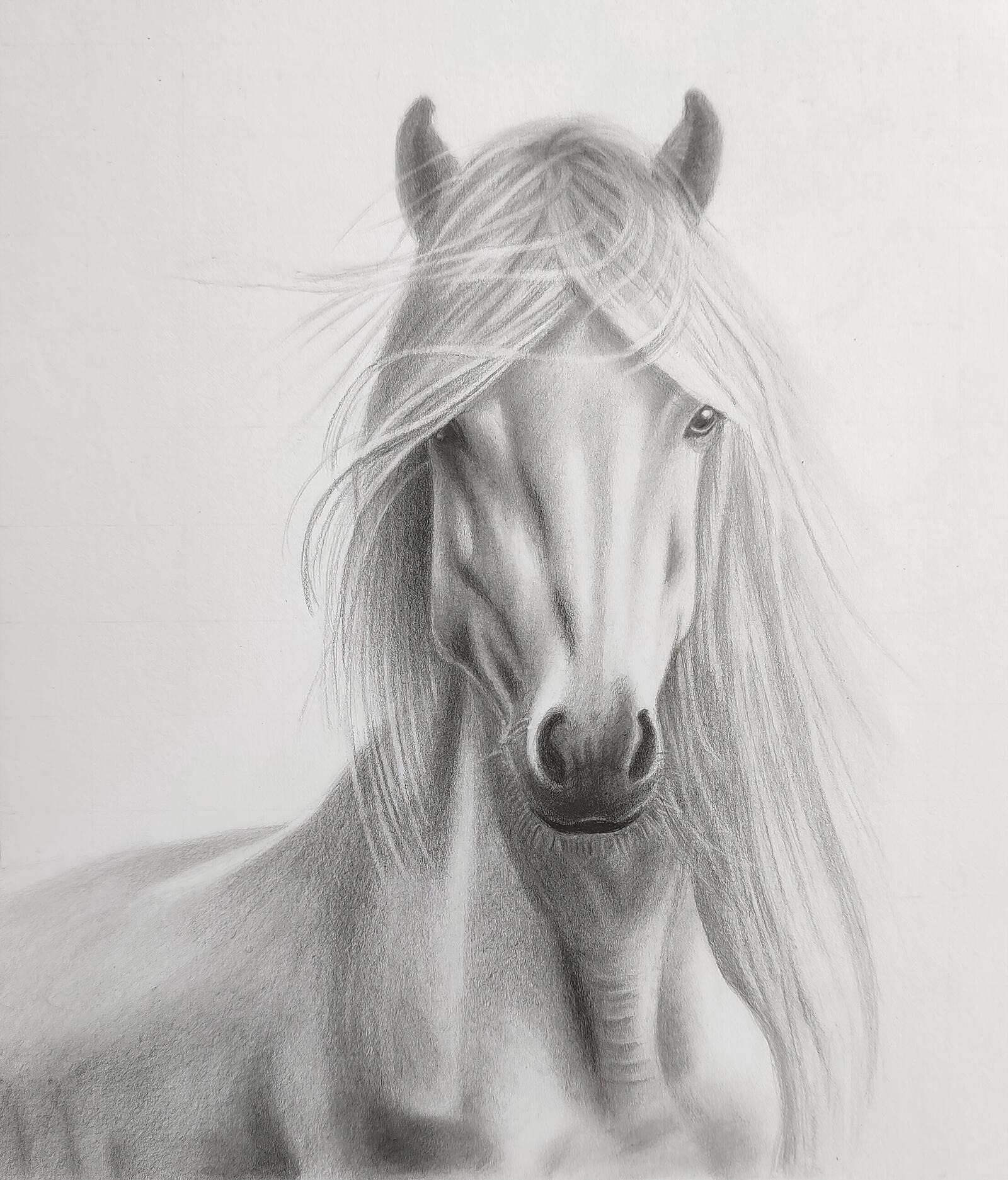 - Create the first tones and draw the horse’s mane.