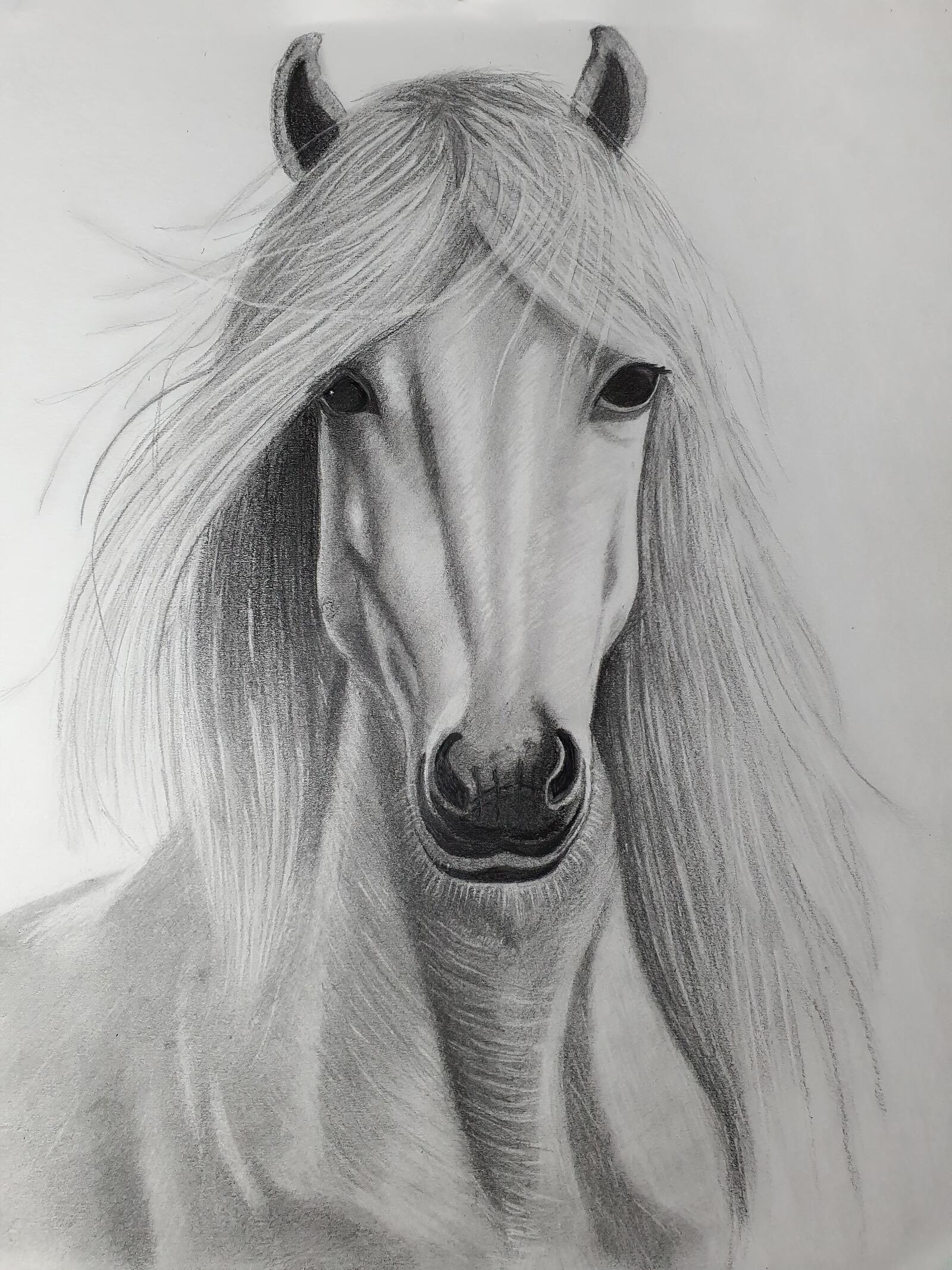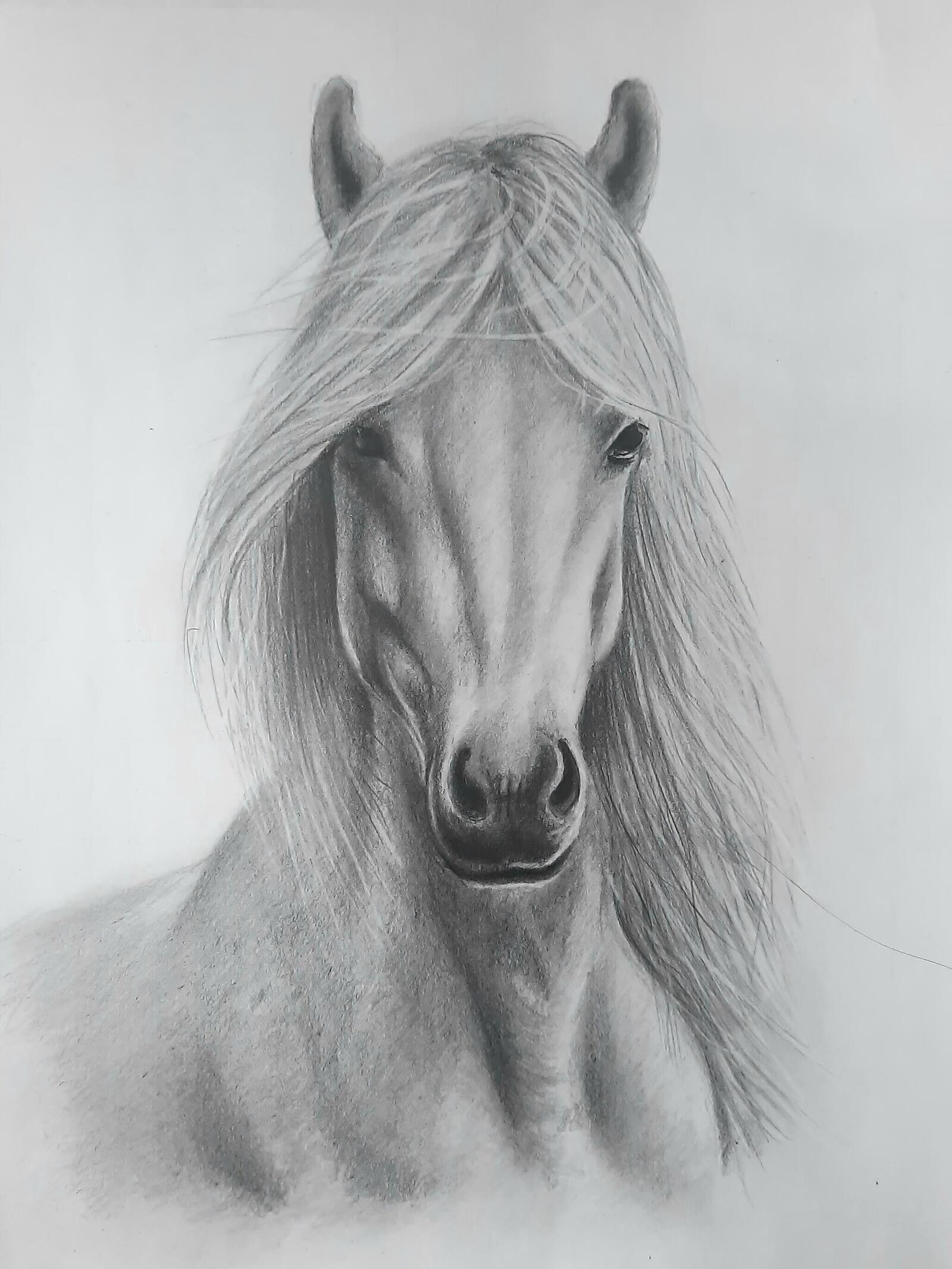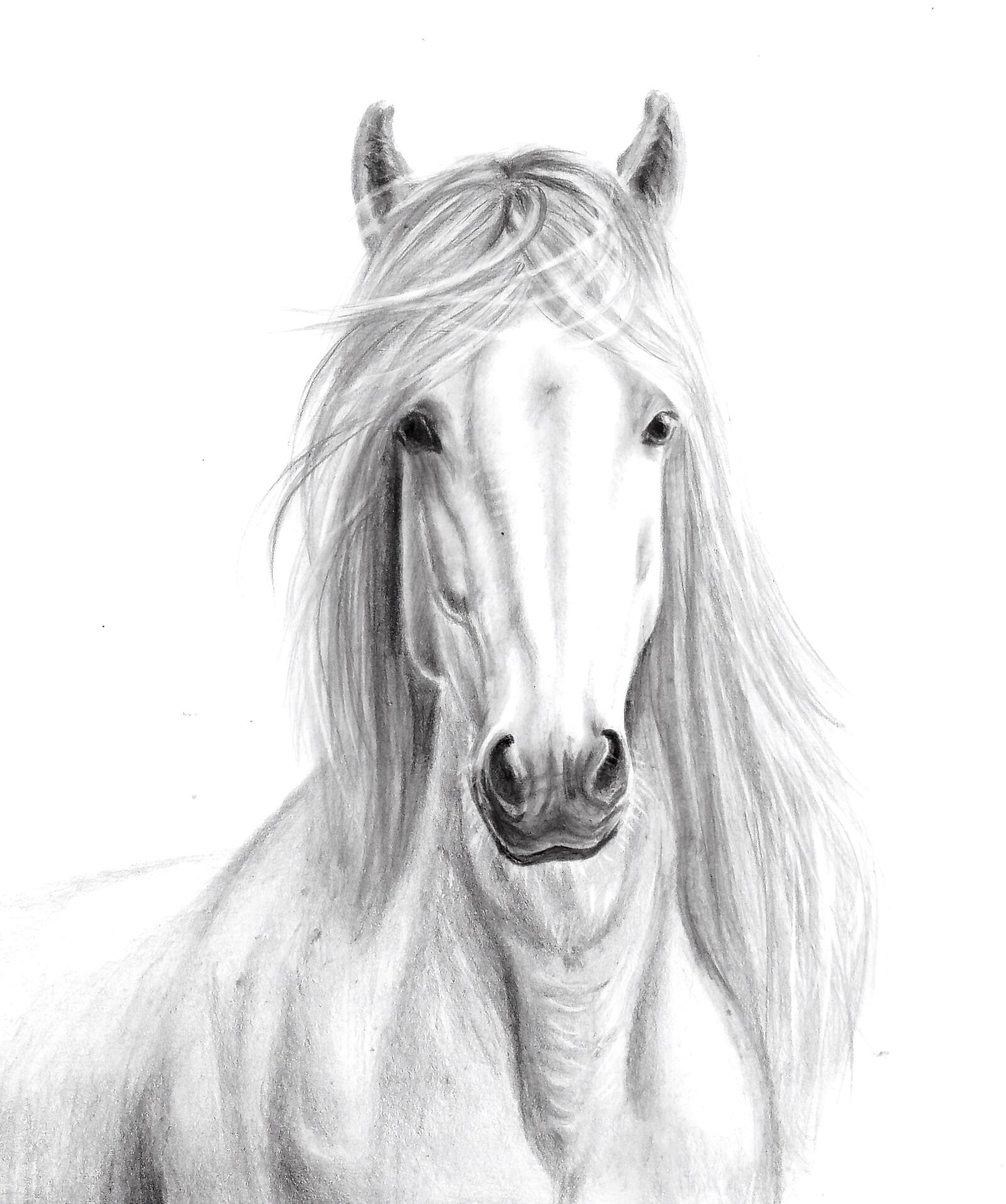 - Create the first tones and draw the horse’s mane.