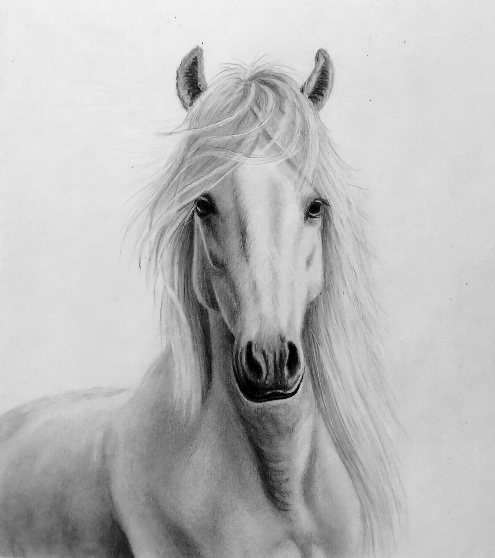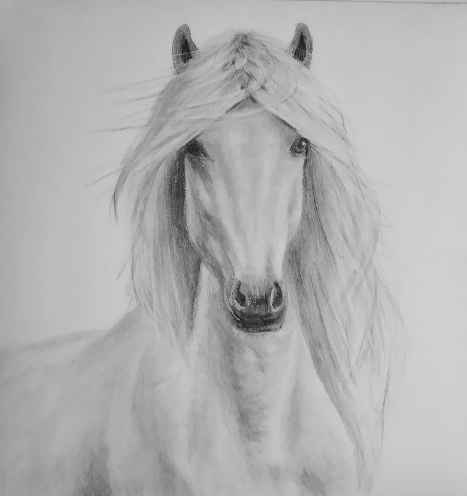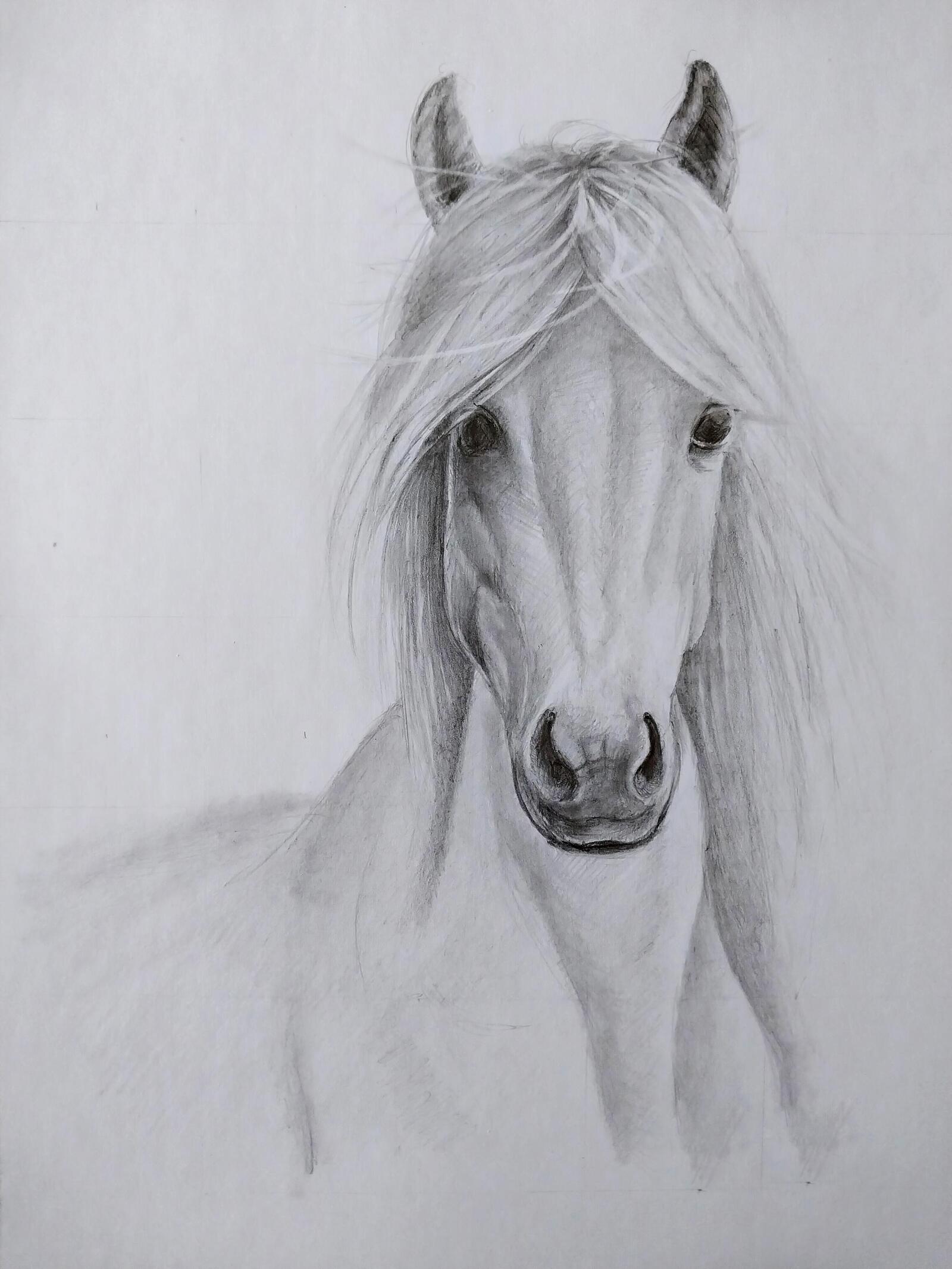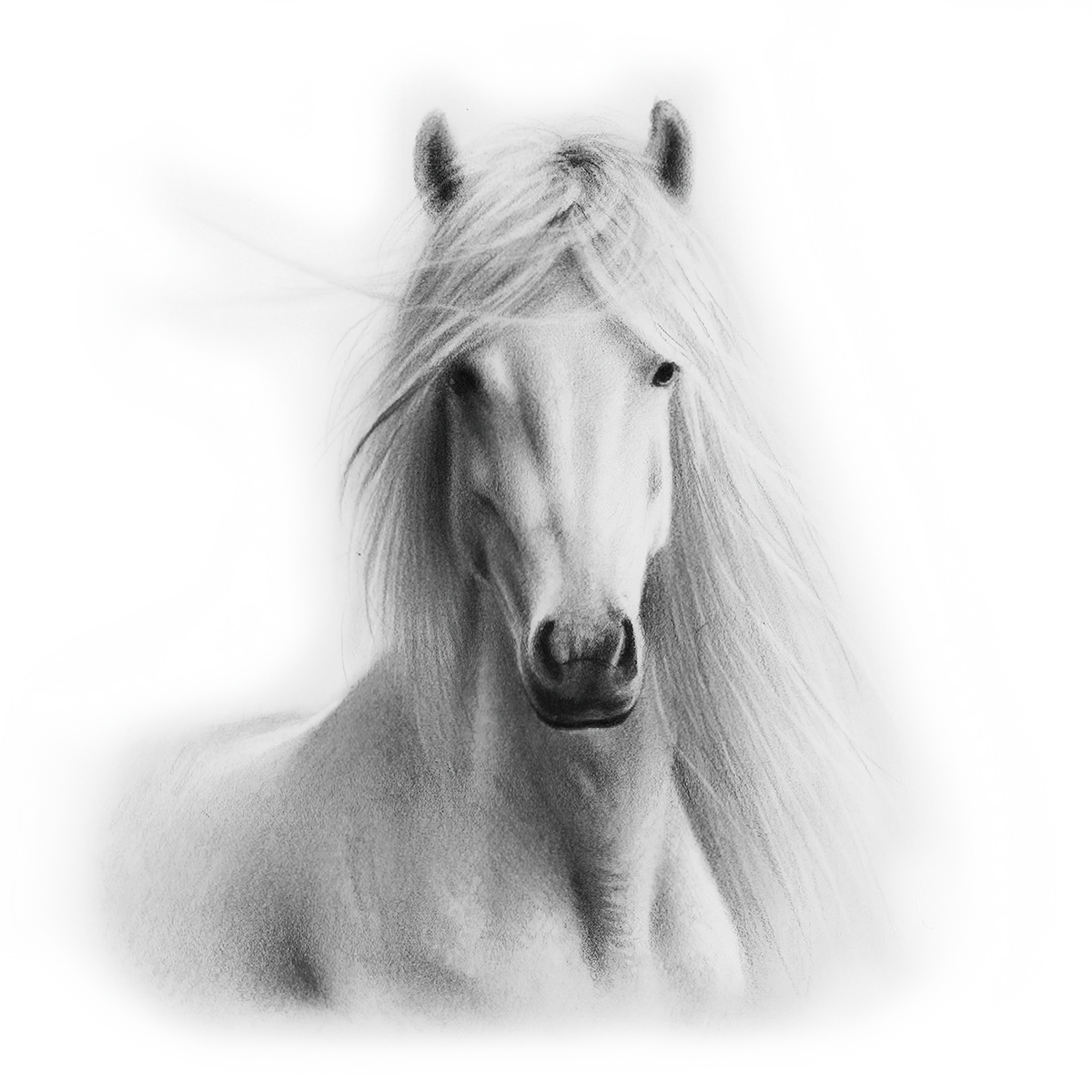 - Create the first tones and draw the horse’s mane.