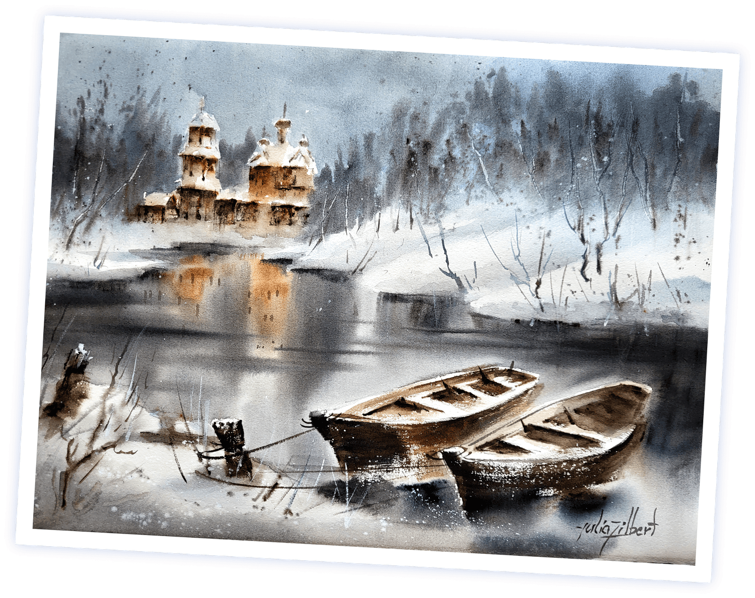 - learn how to use a photo as a reference without copying it, but selectively creating your own composition using elements from the photo;