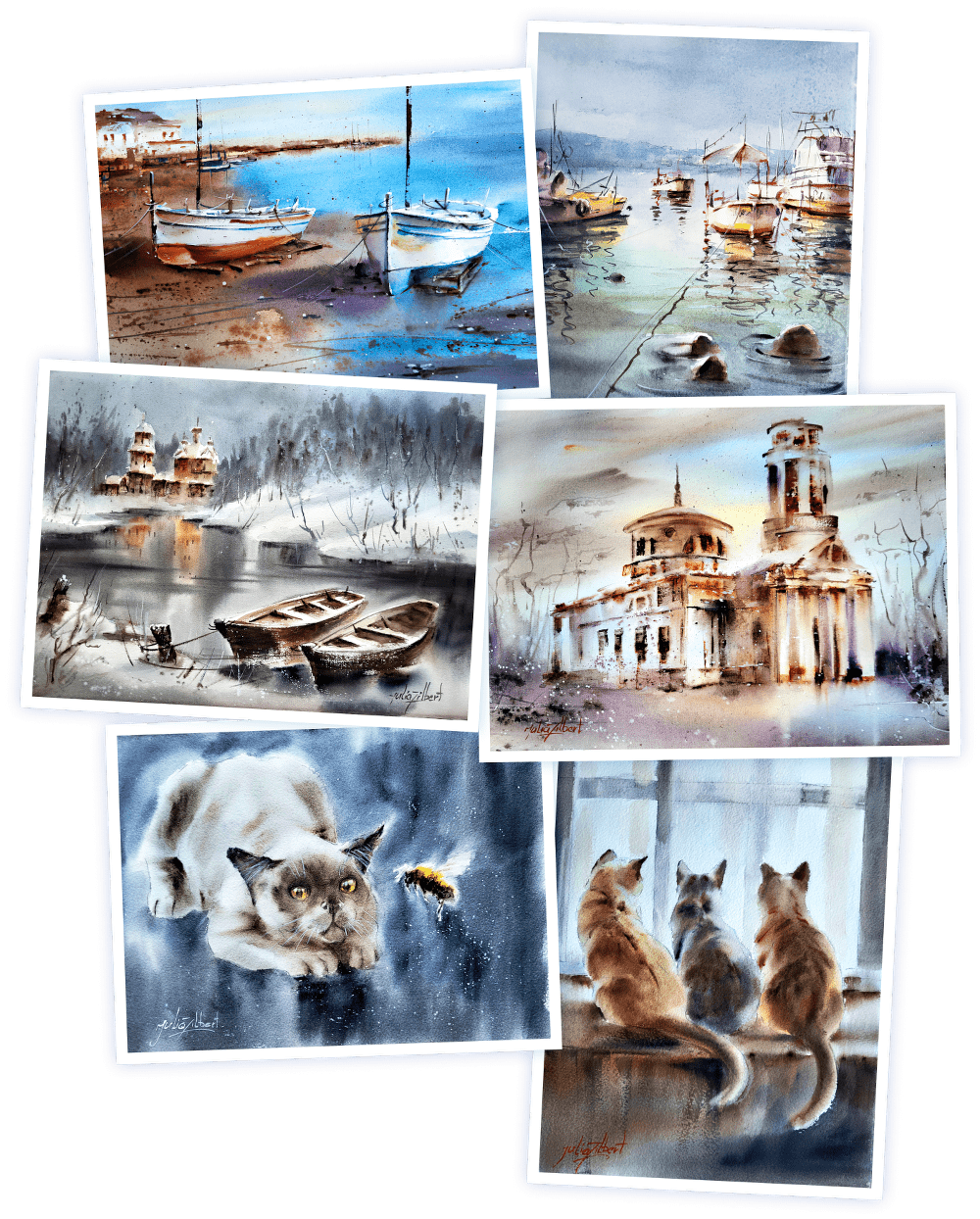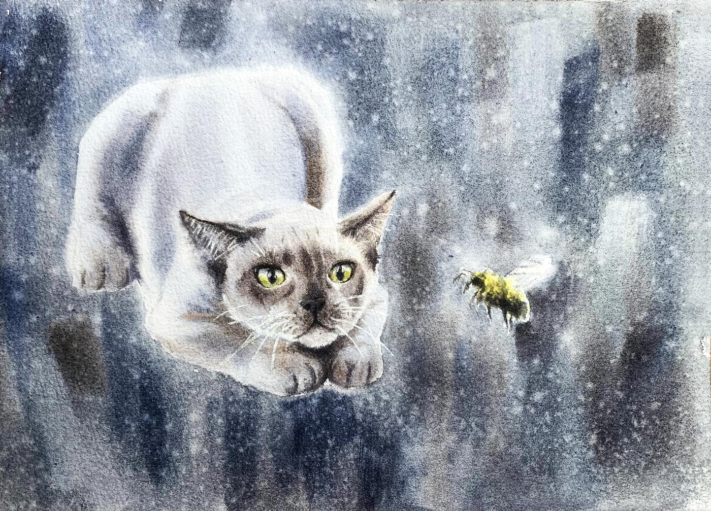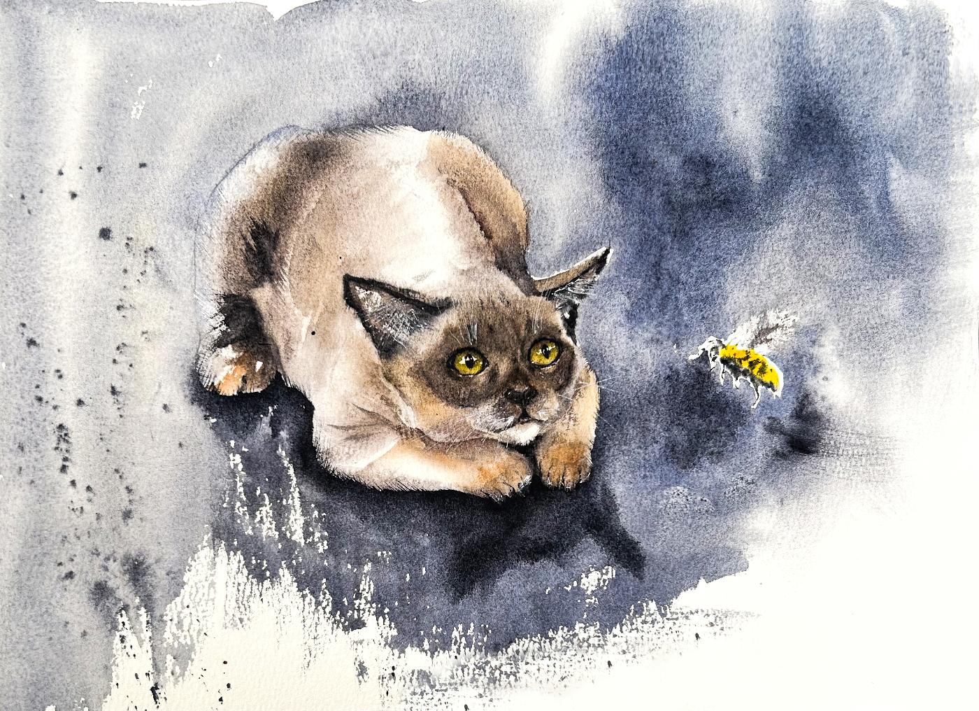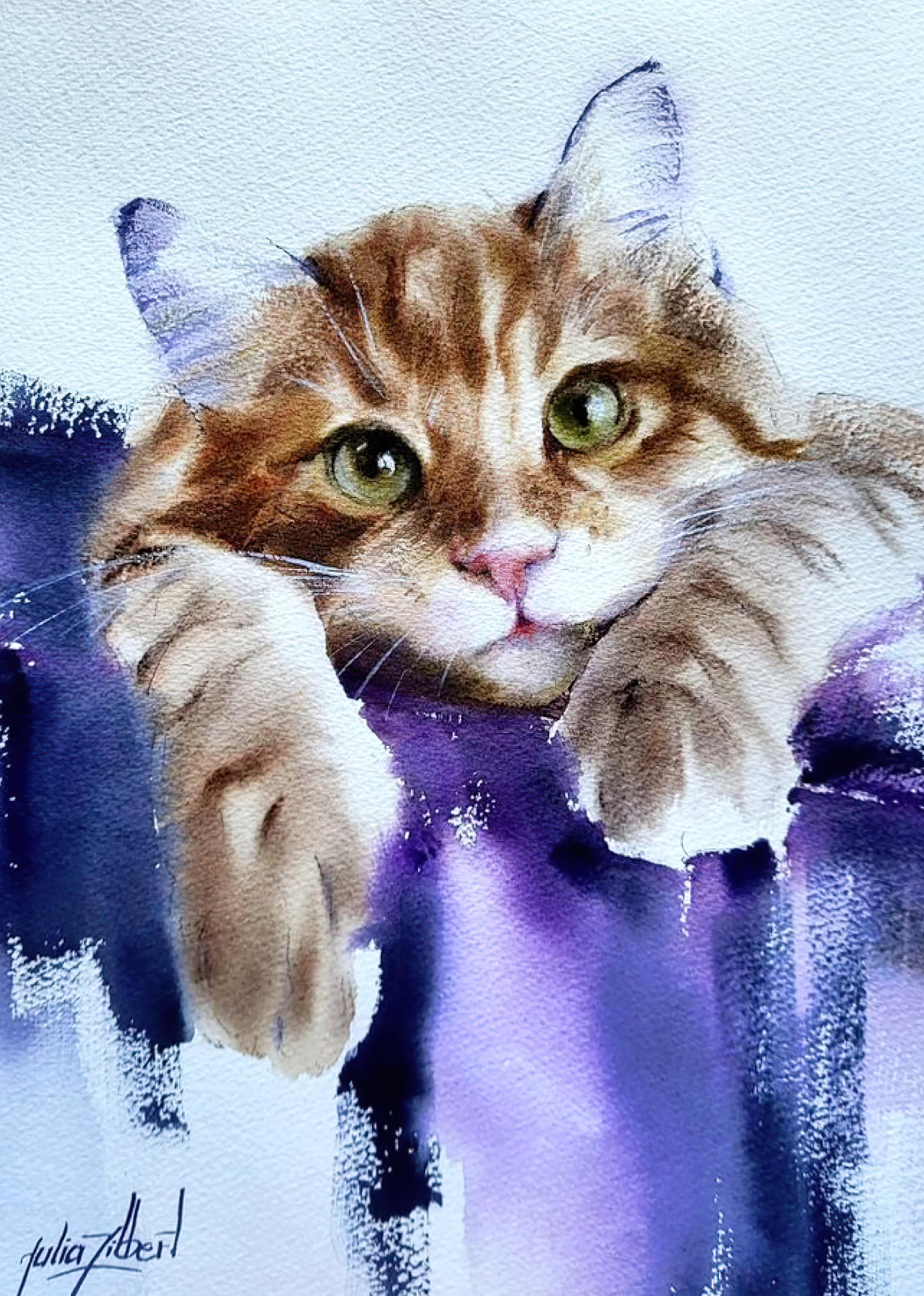 - understand how to paint cats in watercolor by creating the volume of fur.