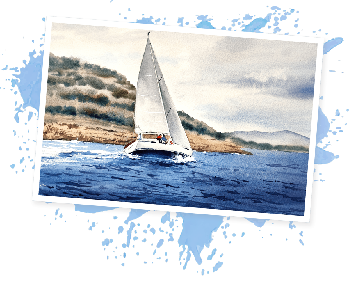 You'll paint a spectacular seascape featuring a sailboat with watercolor;