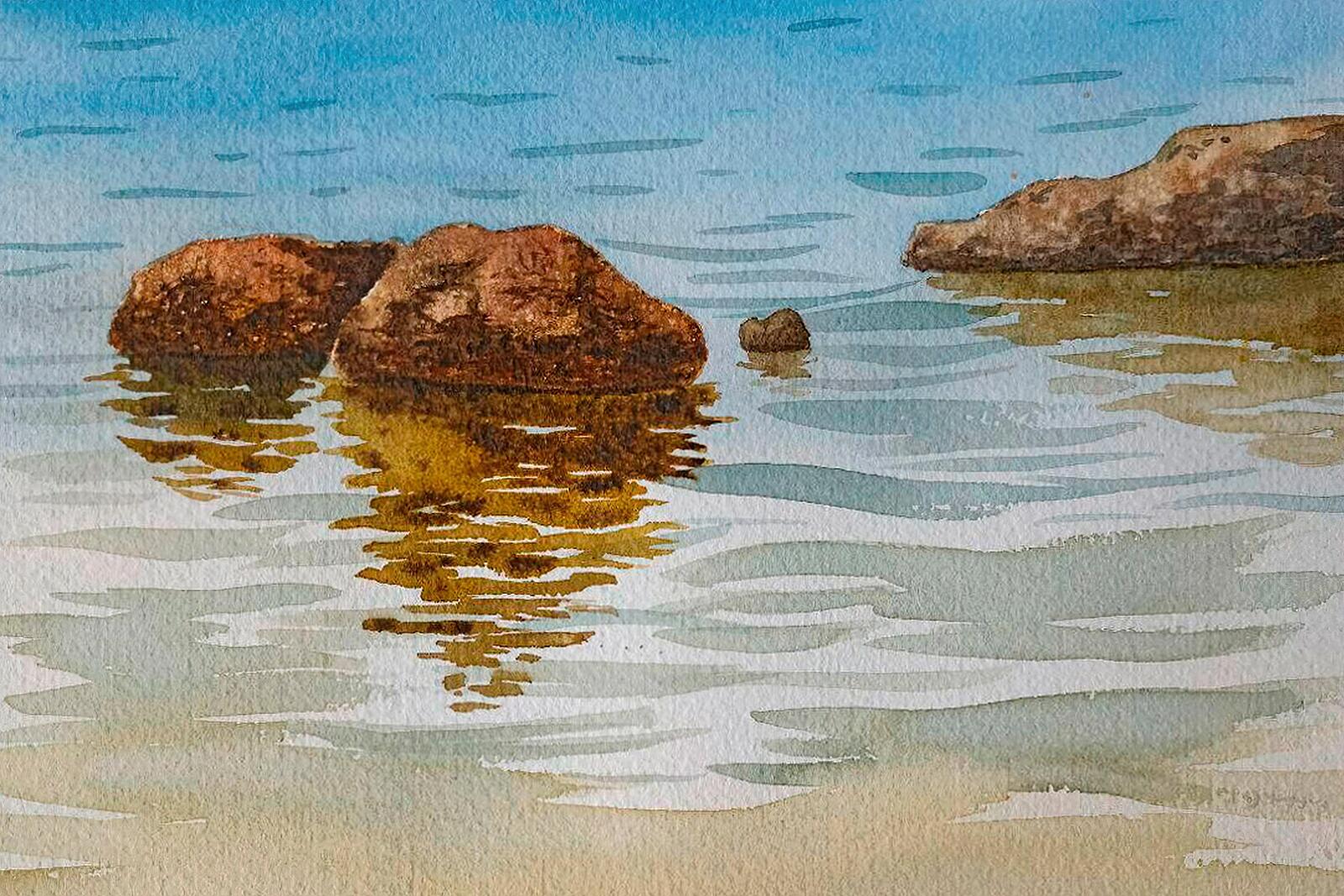 You'll paint the calm smooth surface of the water using the "cat's tongue" brushes.