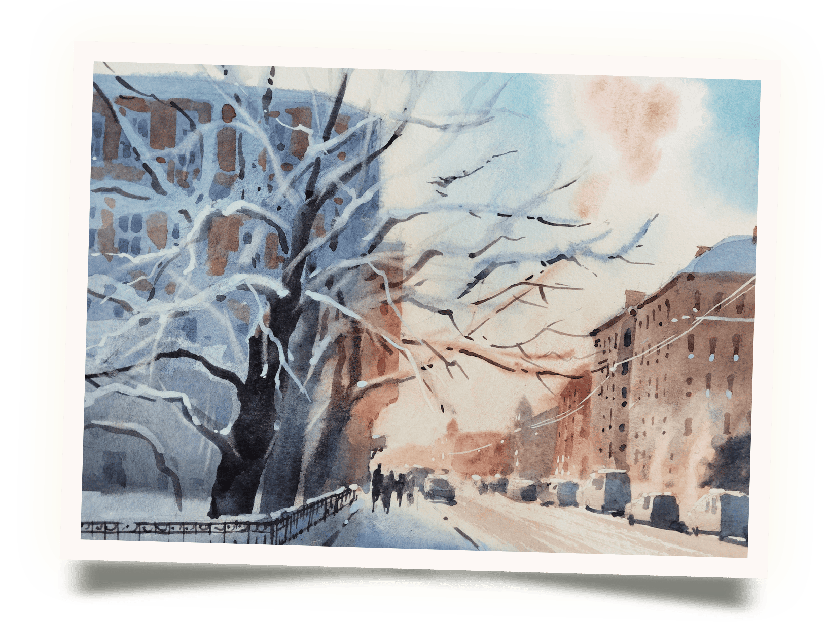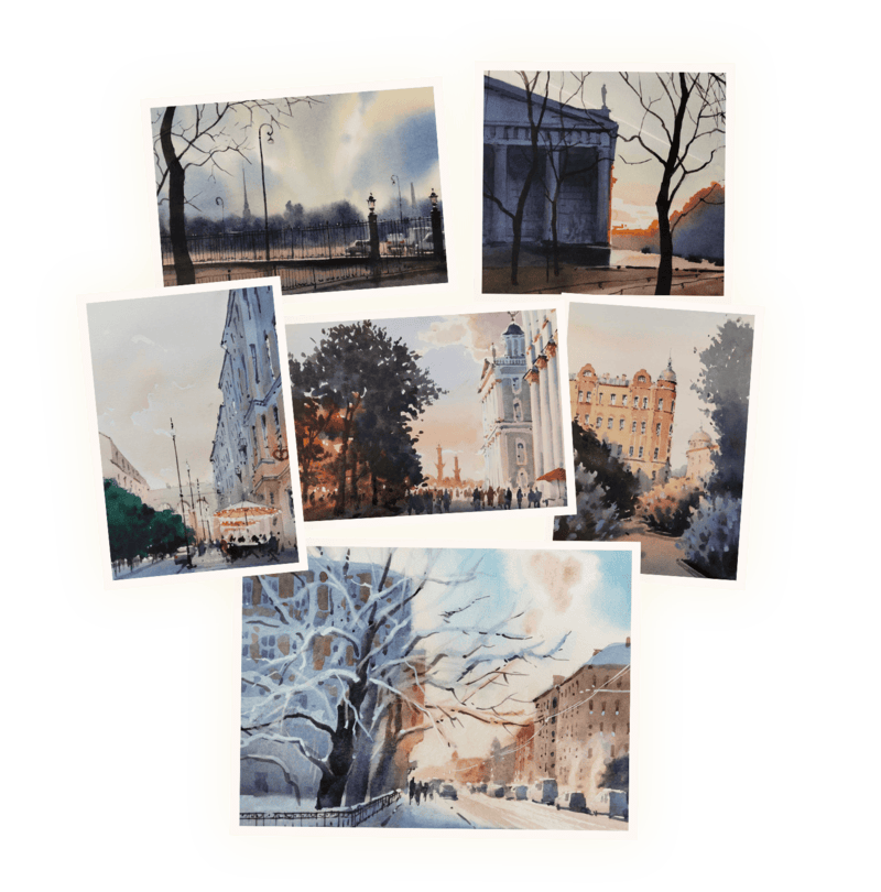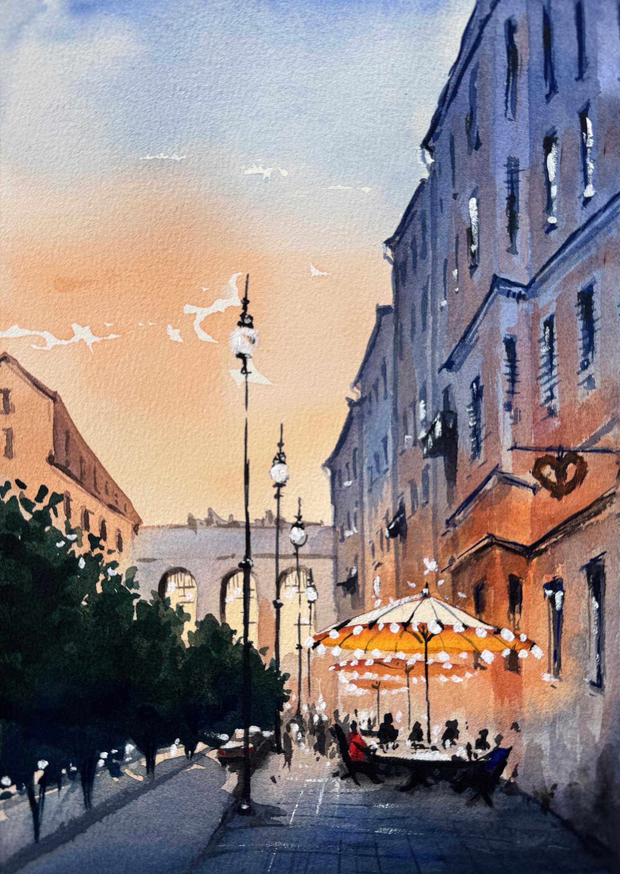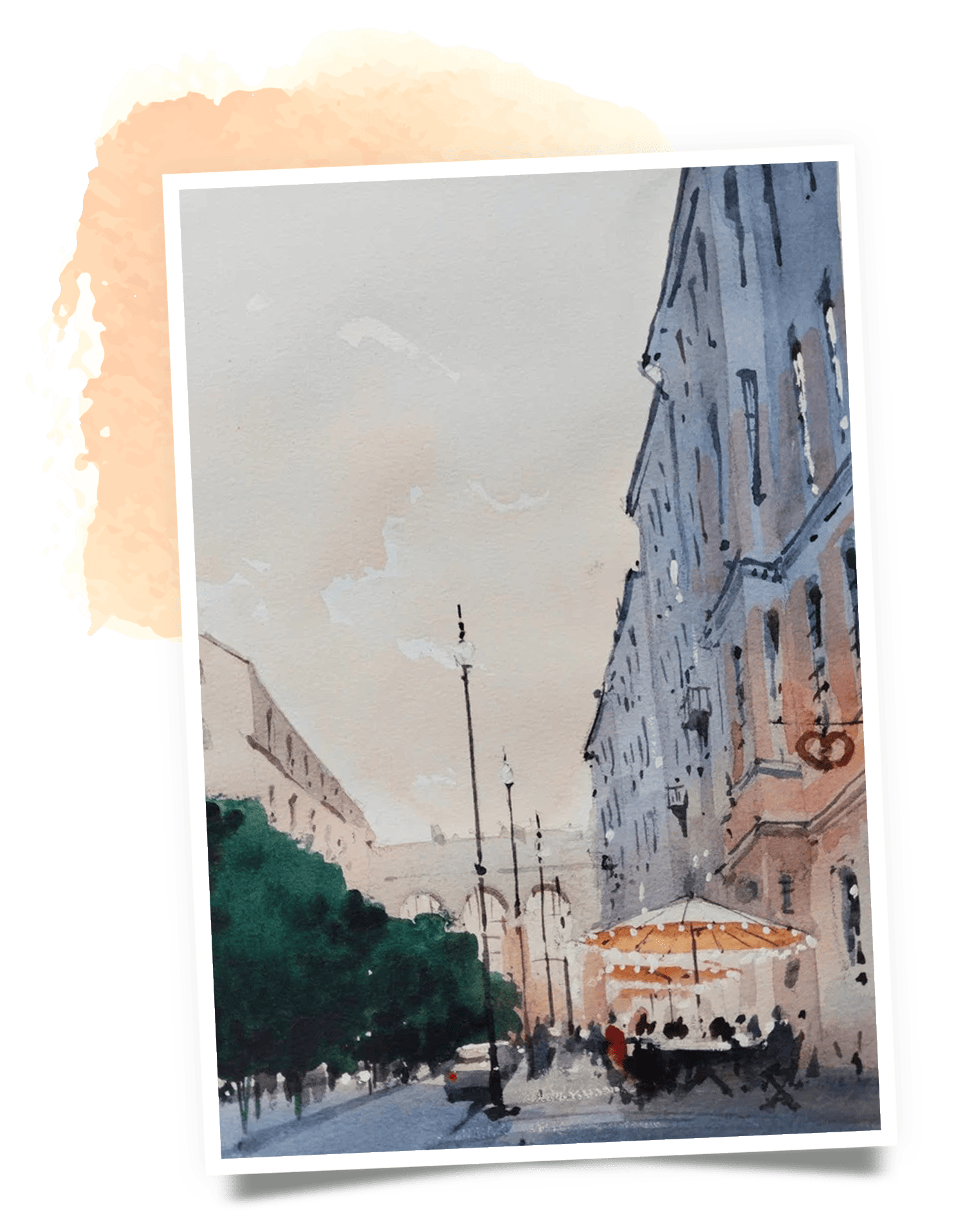 You'll paint 5 pictures, exploring the details and vibe of cityscapes