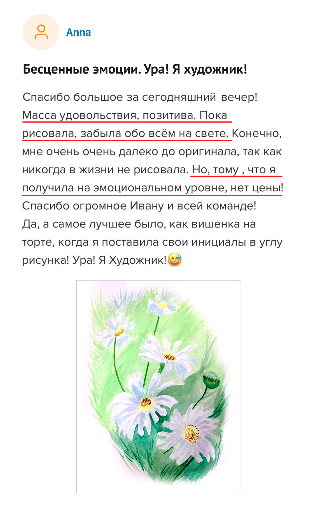 - Creative atmosphere and a great opportunity to have a cool time drawing on air with an expert and surrounded by like-minded people